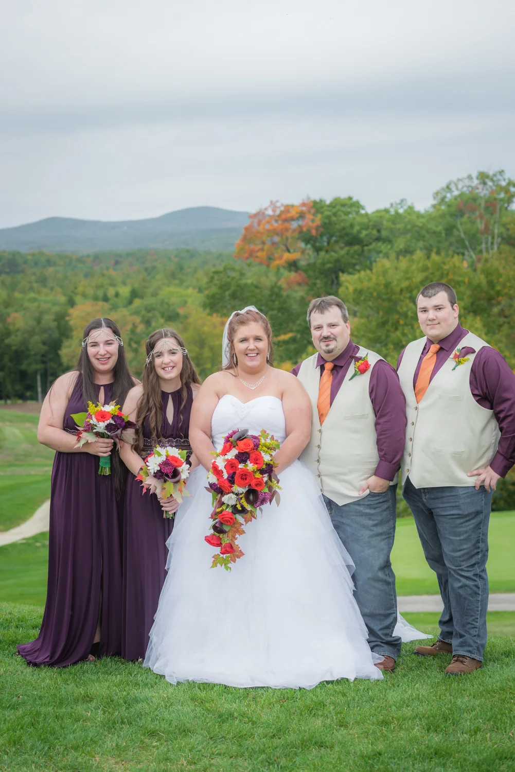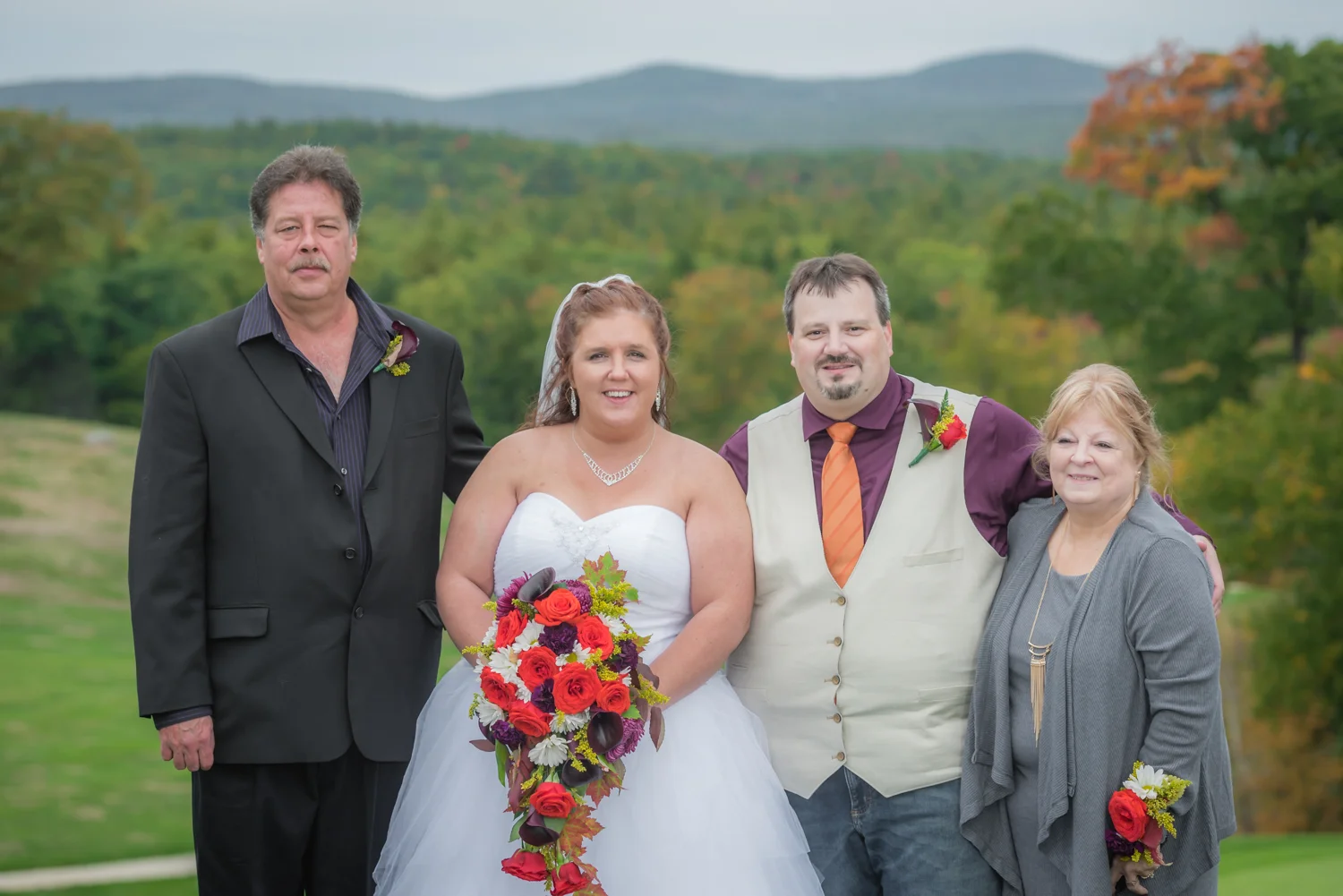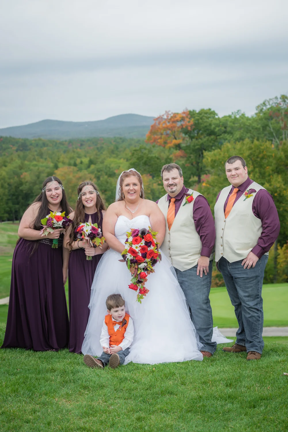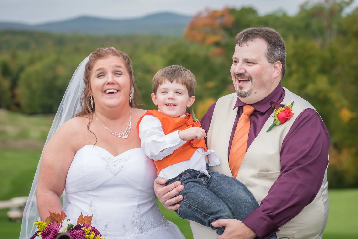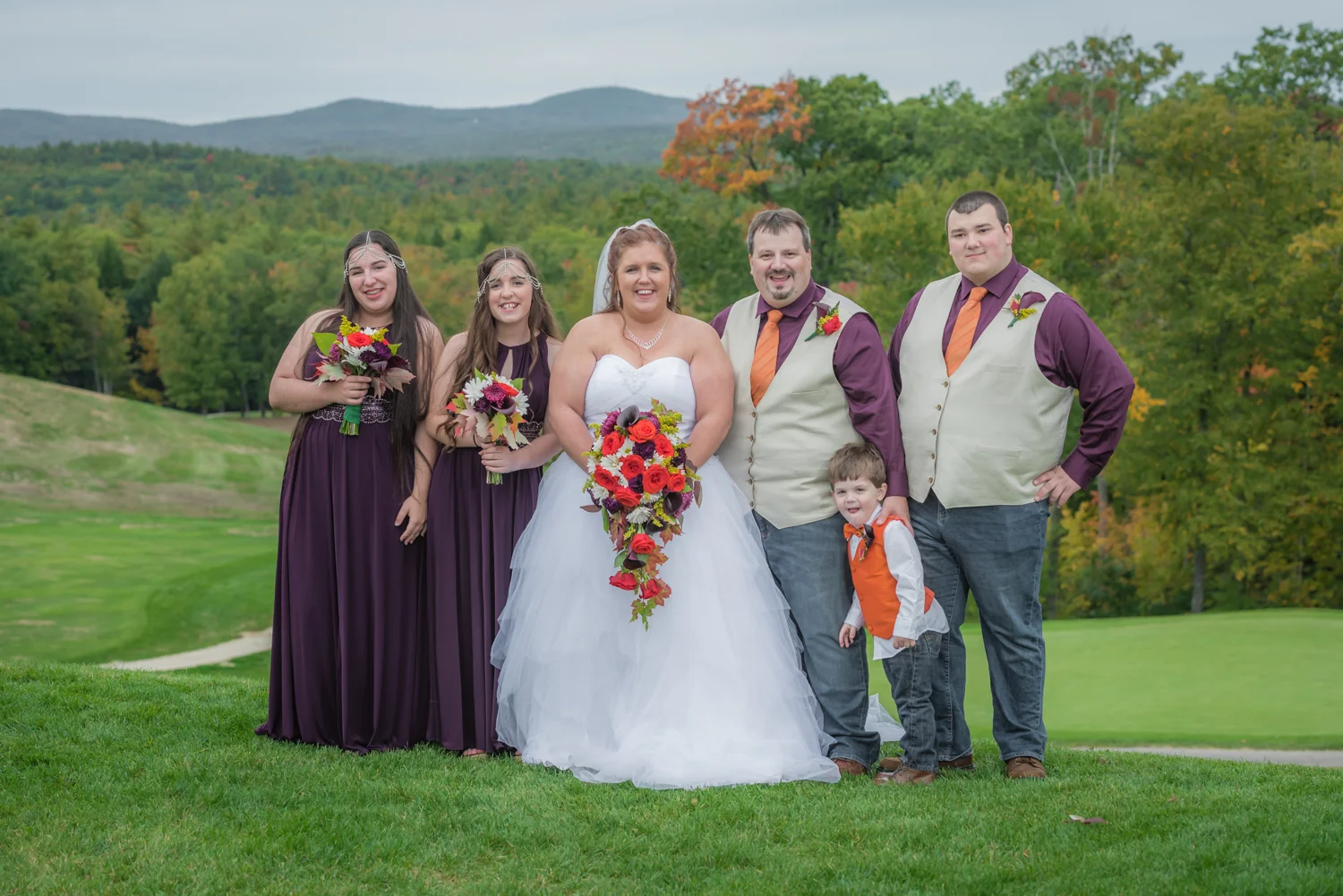Tracy & Scott were married on a cool Saturday in October at The Nippo Lake Golf Club in Barrington, NH. Its great to see two families come together through marriage becoming one. The day started with documenting the girls getting ready at the home of Tracy’s Maid of Honor, Amy. Also preparing for the day with Tracy and Amy, were Tracy’s two daughters, Makenna and Morgan, who kept their Mom laughing all afternoon. After photographing the girls as well as Tracy’s dress, jewelry, and veil, I made a quick trip across town to catch up with Scott and his groomsmen to get some getting ready shots with them. Scott’s son Zach, the best man, was busy putting the final touches on his speech, while Scott and Tracy’s son, Wesley, the ring bearer, hammed it up for the camera for me (the cutest kid!). Following a ceremony overlooking the brilliant foliage and distant mountains at Nippo Lake Golf Course, DJ Jay Kerouac kept the reception and party going strong until the very end. Two people coming together, two families coming together; the day was perfect in so many ways. Congrats Tracy and Scott!