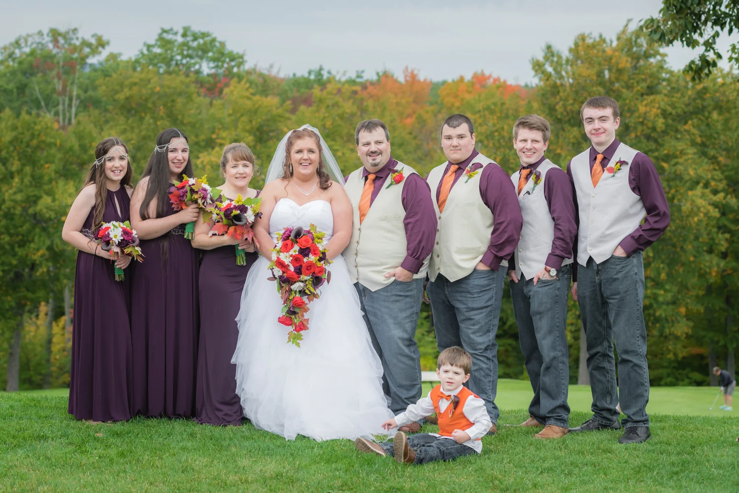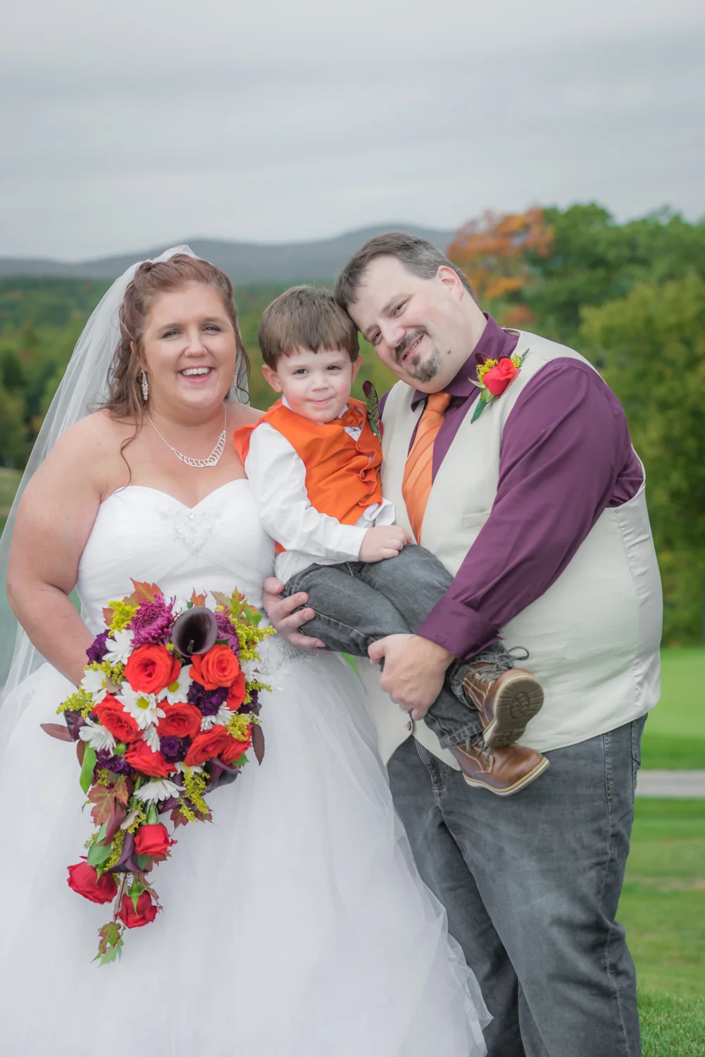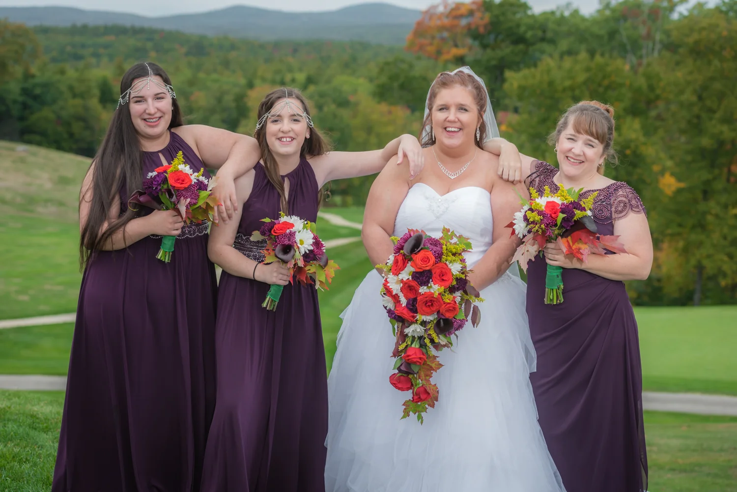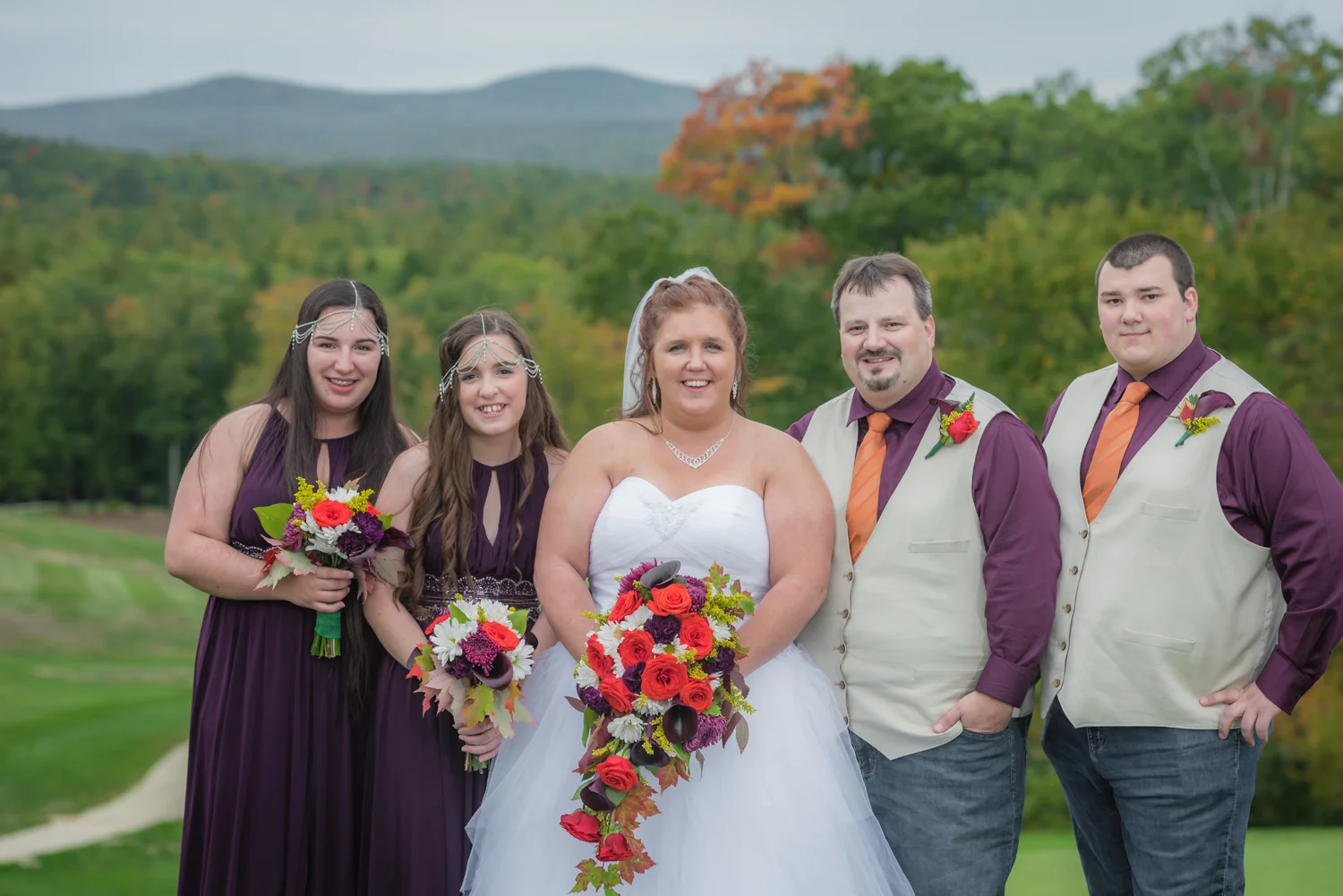 Tracy & Scott were married on a cool Saturday in October at The Nippo Lake Golf Club in Barrington, NH. Its great to see two families come together through marriage becoming one. The day started with documenting the girls getting ready at the home of Tracy’s Maid of Honor, Amy. Also preparing for the day with Tracy and Amy, were Tracy’s two daughters, Makenna and Morgan, who kept their Mom laughing all afternoon. After photographing the girls as well as Tracy’s dress, jewelry, and veil, I made a quick trip across town to catch up with Scott and his groomsmen to get some getting ready shots with them. Scott’s son Zach, the best man, was busy putting the final touches on his speech, while Scott and Tracy’s son, Wesley, the ring bearer, hammed it up for the camera for me (the cutest kid!). Following a ceremony overlooking the brilliant foliage and distant mountains at Nippo Lake Golf Course, DJ Jay Kerouac kept the reception and party going strong until the very end. Two people coming together, two families coming together; the day was perfect in so many ways. Congrats Tracy and Scott!