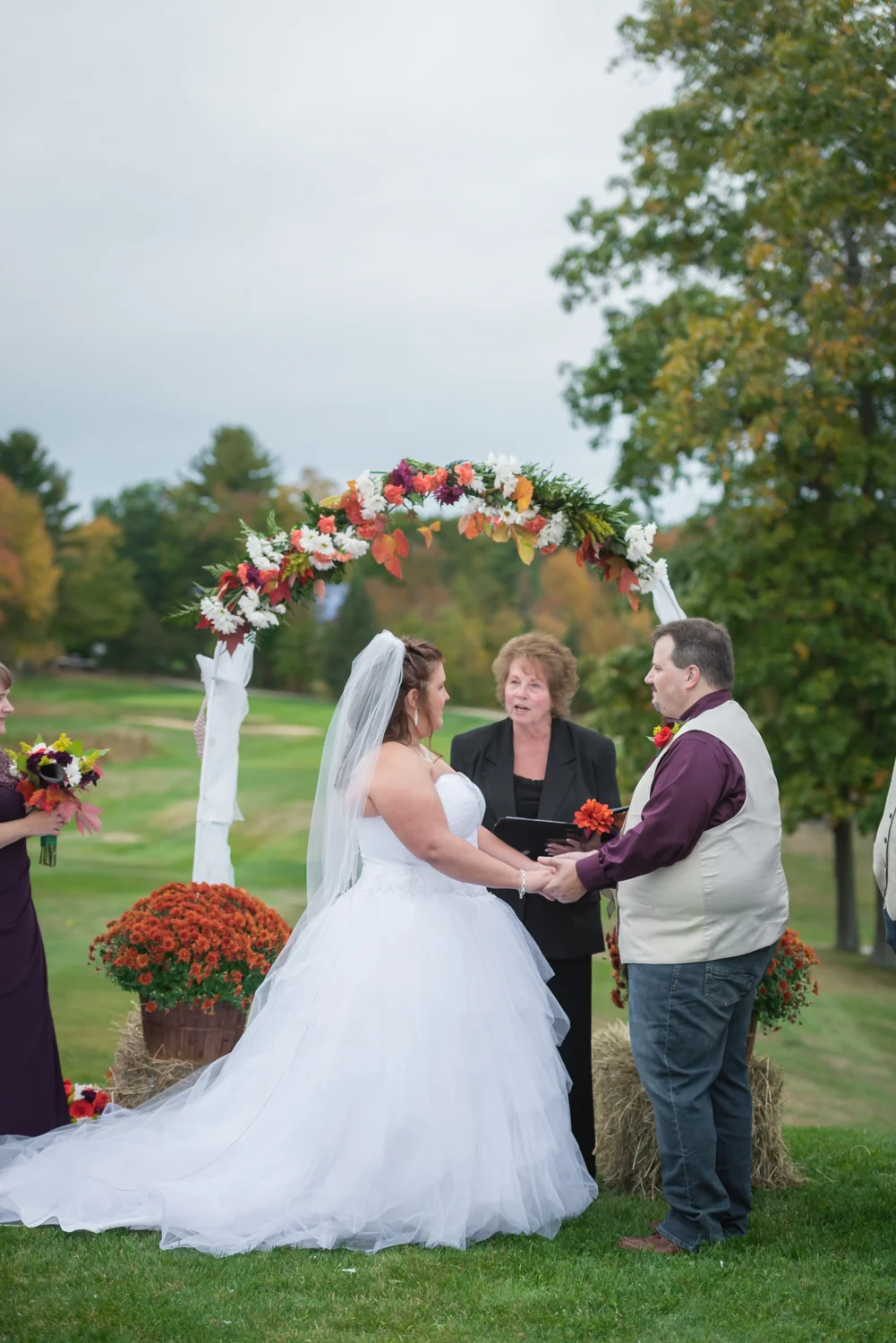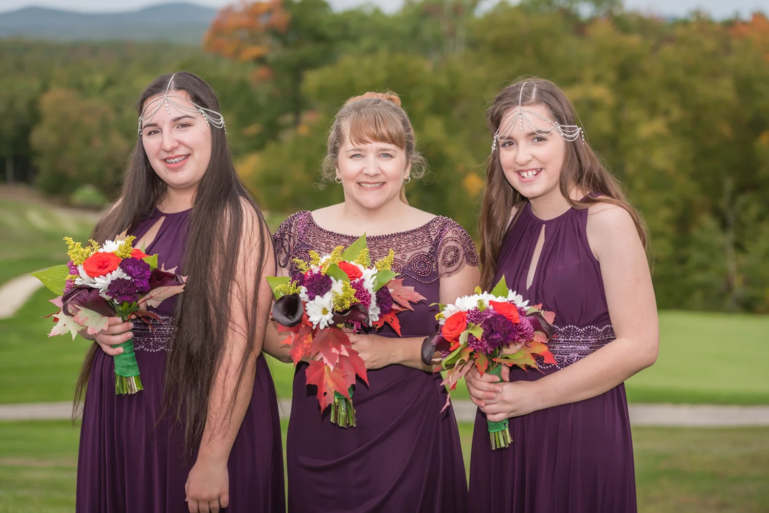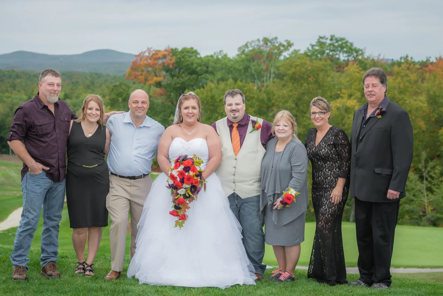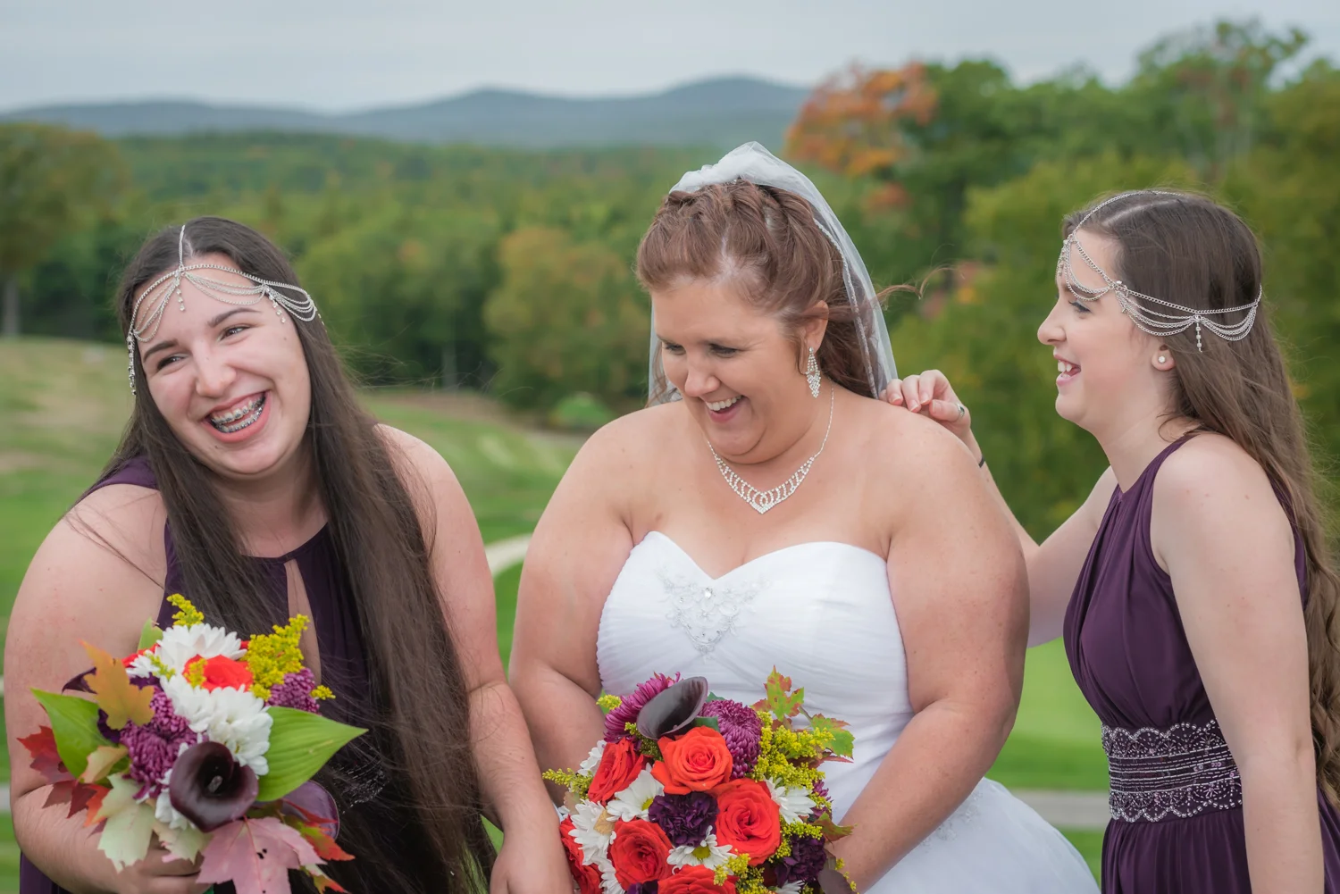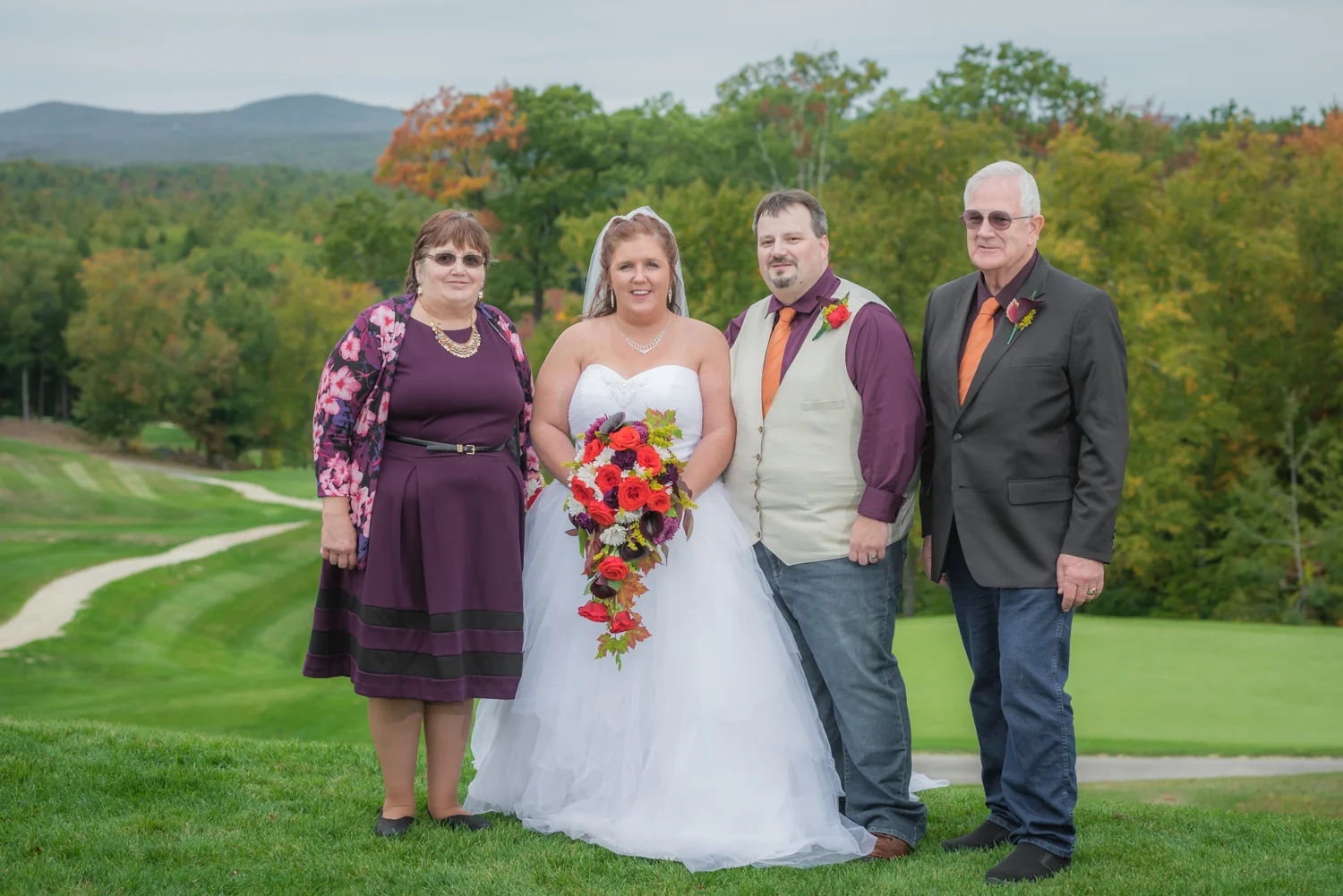 Tracy & Scott were married on a cool Saturday in October at The Nippo Lake Golf Club in Barrington, NH. Its great to see two families come together through marriage becoming one. The day started with documenting the girls getting ready at the home of Tracy’s Maid of Honor, Amy. Also preparing for the day with Tracy and Amy, were Tracy’s two daughters, Makenna and Morgan, who kept their Mom laughing all afternoon. After photographing the girls as well as Tracy’s dress, jewelry, and veil, I made a quick trip across town to catch up with Scott and his groomsmen to get some getting ready shots with them. Scott’s son Zach, the best man, was busy putting the final touches on his speech, while Scott and Tracy’s son, Wesley, the ring bearer, hammed it up for the camera for me (the cutest kid!). Following a ceremony overlooking the brilliant foliage and distant mountains at Nippo Lake Golf Course, DJ Jay Kerouac kept the reception and party going strong until the very end. Two people coming together, two families coming together; the day was perfect in so many ways. Congrats Tracy and Scott!
