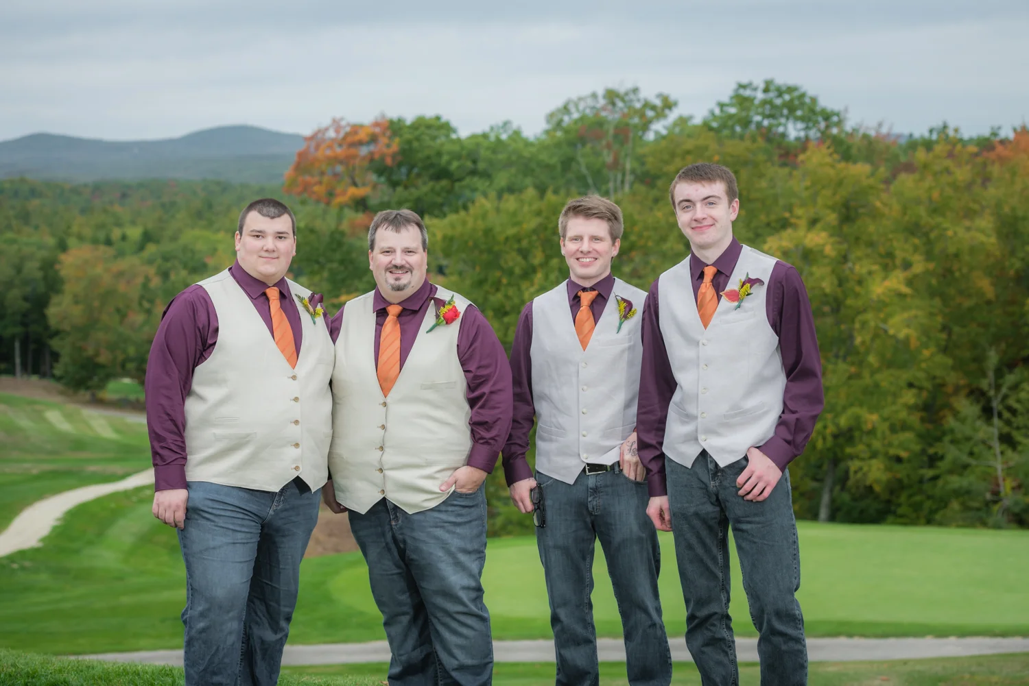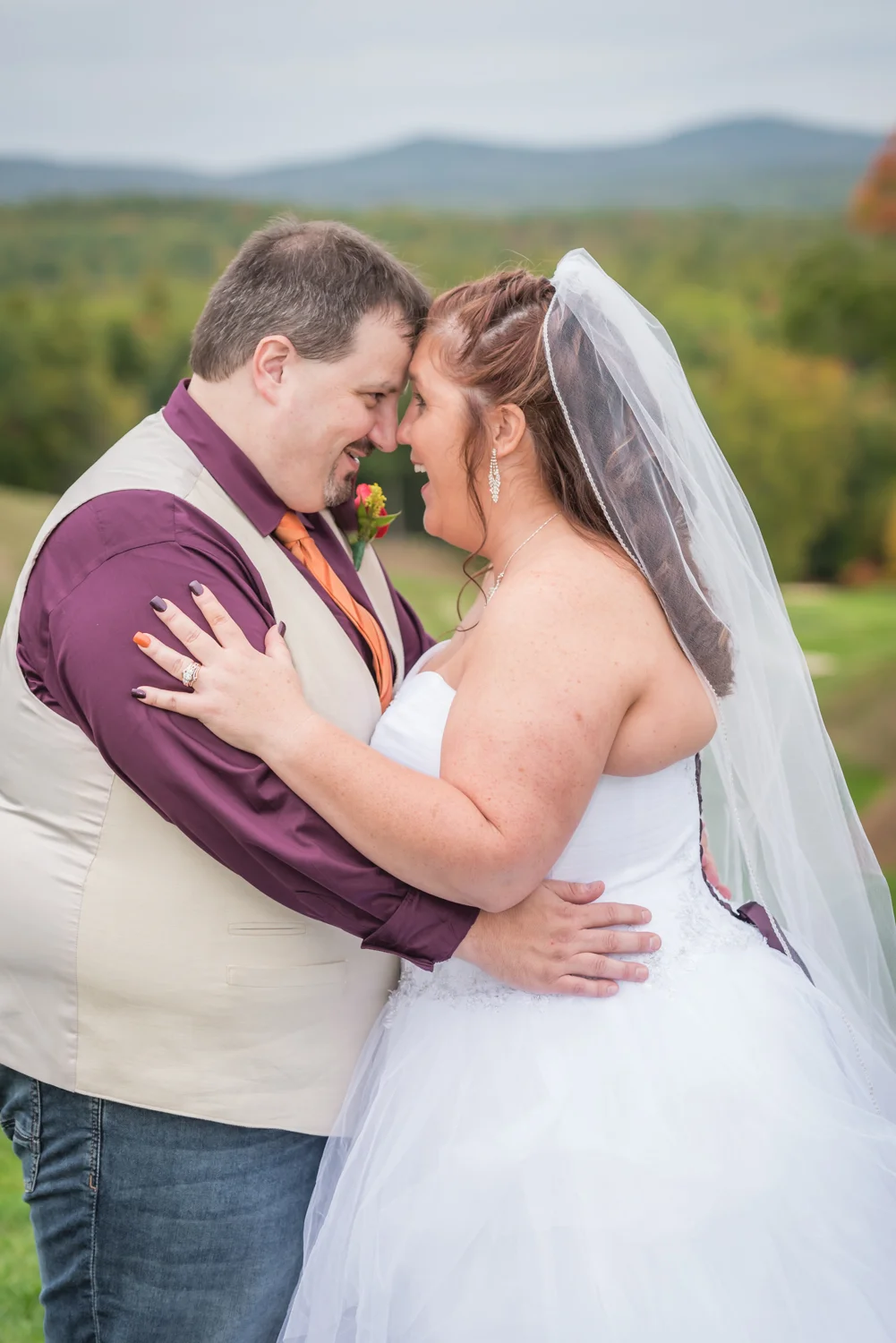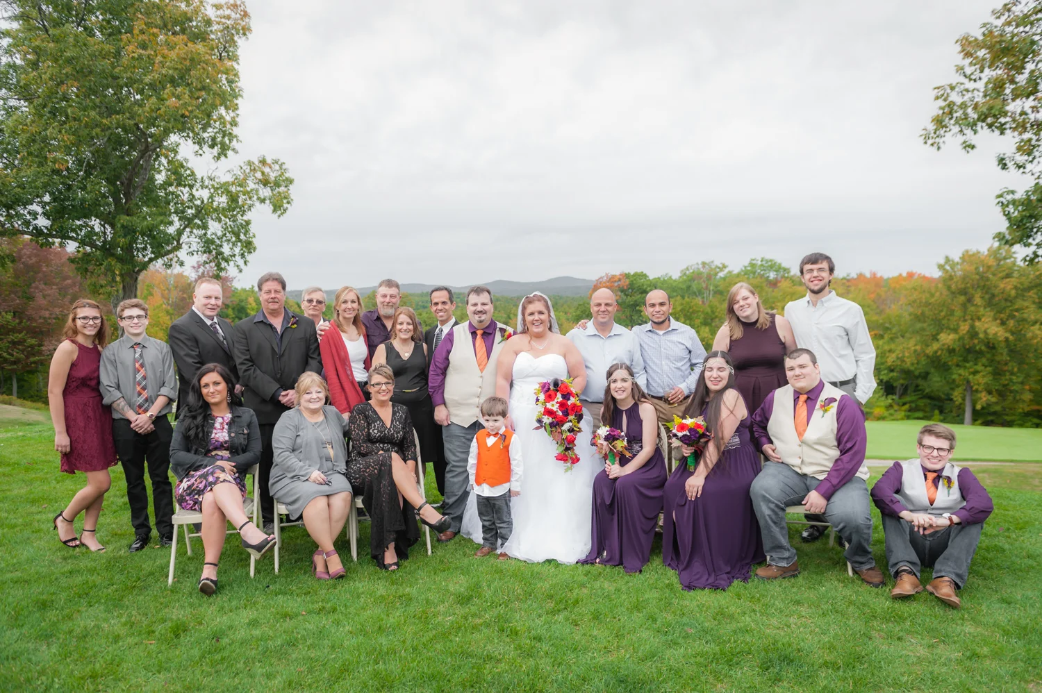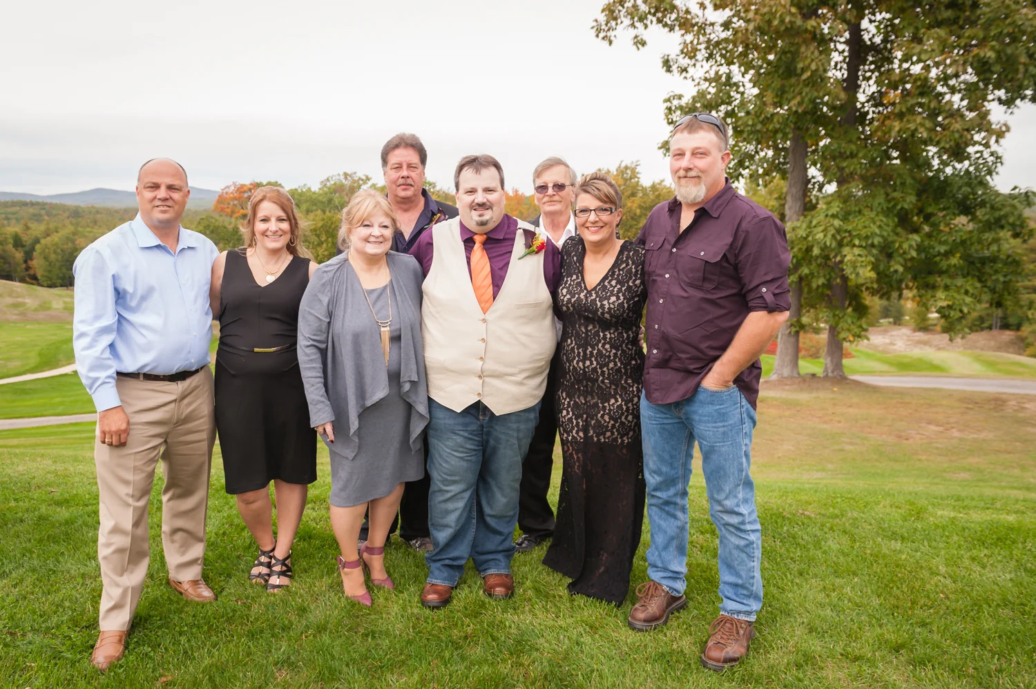 Tracy & Scott were married on a cool Saturday in October at The Nippo Lake Golf Club in Barrington, NH. Its great to see two families come together through marriage becoming one. The day started with documenting the girls getting ready at the home of Tracy’s Maid of Honor, Amy. Also preparing for the day with Tracy and Amy, were Tracy’s two daughters, Makenna and Morgan, who kept their Mom laughing all afternoon. After photographing the girls as well as Tracy’s dress, jewelry, and veil, I made a quick trip across town to catch up with Scott and his groomsmen to get some getting ready shots with them. Scott’s son Zach, the best man, was busy putting the final touches on his speech, while Scott and Tracy’s son, Wesley, the ring bearer, hammed it up for the camera for me (the cutest kid!). Following a ceremony overlooking the brilliant foliage and distant mountains at Nippo Lake Golf Course, DJ Jay Kerouac kept the reception and party going strong until the very end. Two people coming together, two families coming together; the day was perfect in so many ways. Congrats Tracy and Scott!