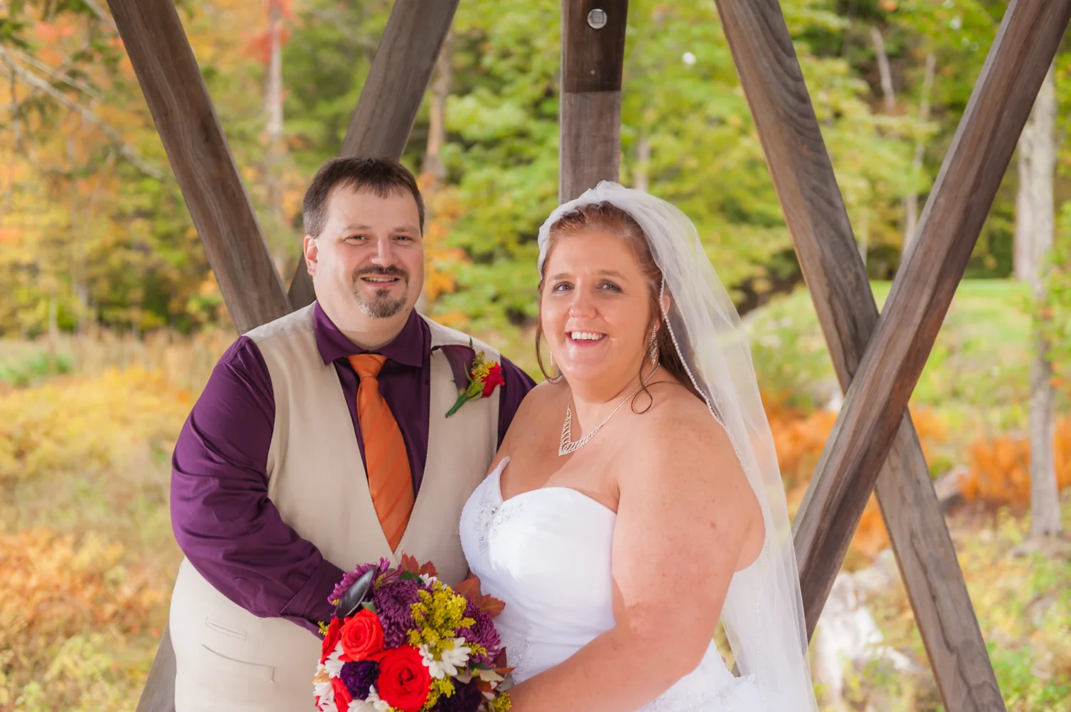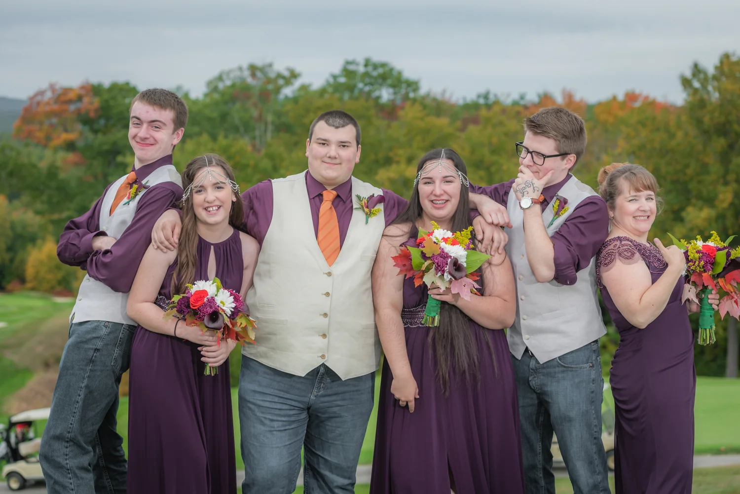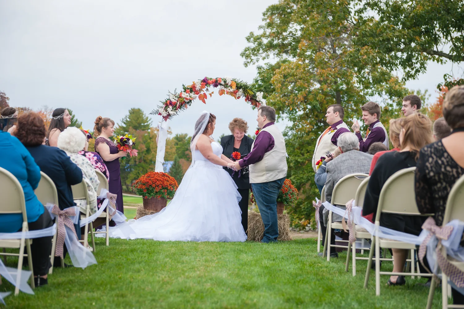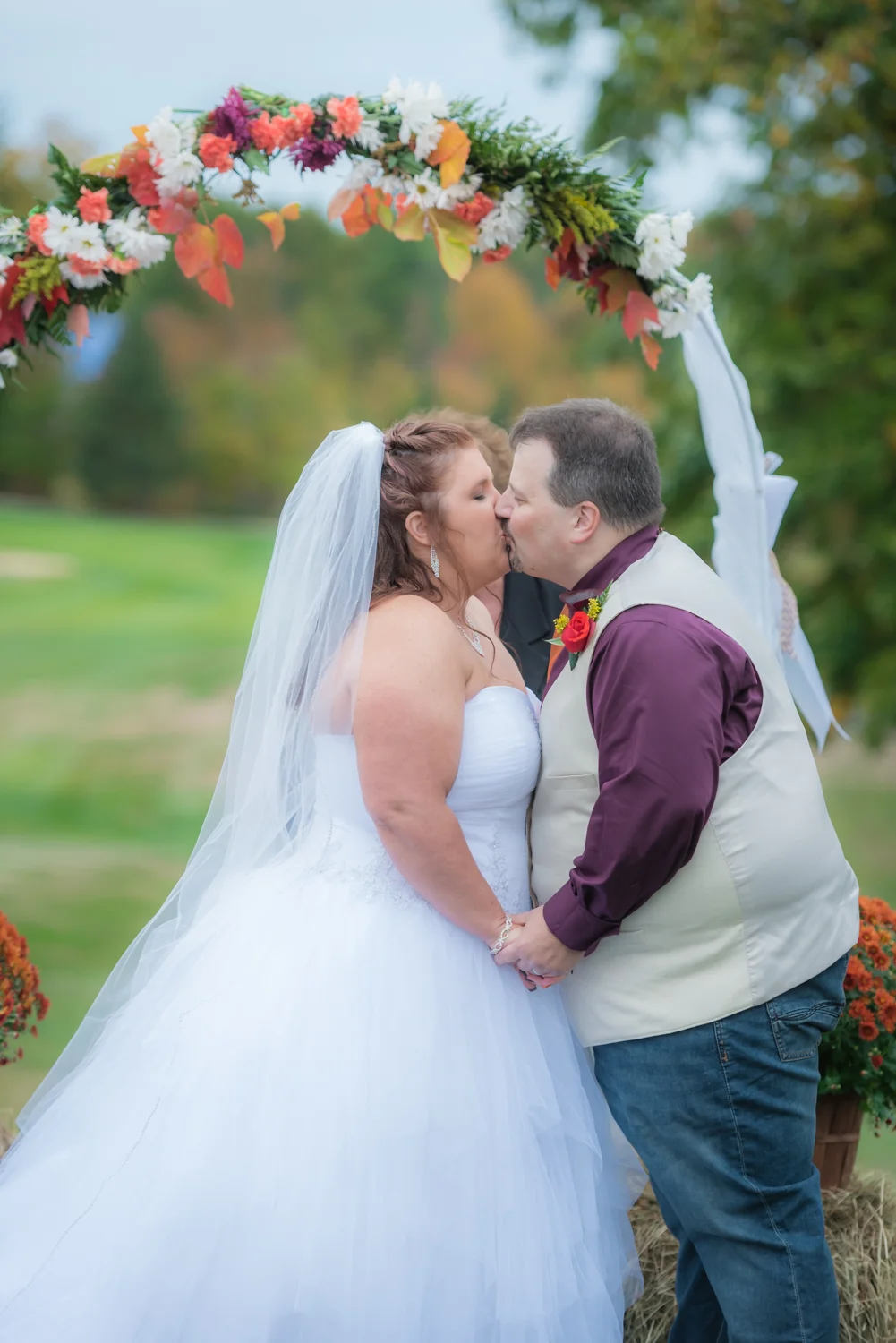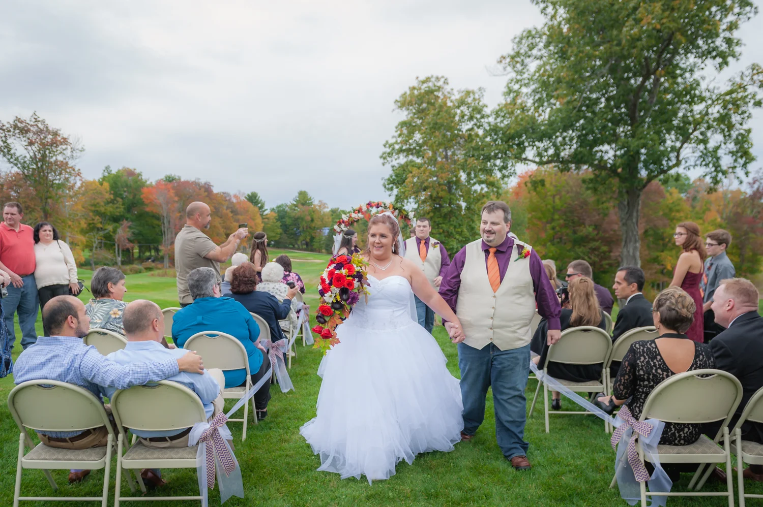 Tracy & Scott were married on a cool Saturday in October at The Nippo Lake Golf Club in Barrington, NH. Its great to see two families come together through marriage becoming one. The day started with documenting the girls getting ready at the home of Tracy’s Maid of Honor, Amy. Also preparing for the day with Tracy and Amy, were Tracy’s two daughters, Makenna and Morgan, who kept their Mom laughing all afternoon. After photographing the girls as well as Tracy’s dress, jewelry, and veil, I made a quick trip across town to catch up with Scott and his groomsmen to get some getting ready shots with them. Scott’s son Zach, the best man, was busy putting the final touches on his speech, while Scott and Tracy’s son, Wesley, the ring bearer, hammed it up for the camera for me (the cutest kid!). Following a ceremony overlooking the brilliant foliage and distant mountains at Nippo Lake Golf Course, DJ Jay Kerouac kept the reception and party going strong until the very end. Two people coming together, two families coming together; the day was perfect in so many ways. Congrats Tracy and Scott!