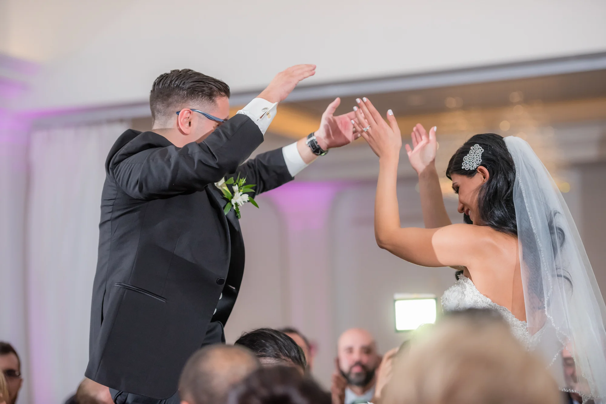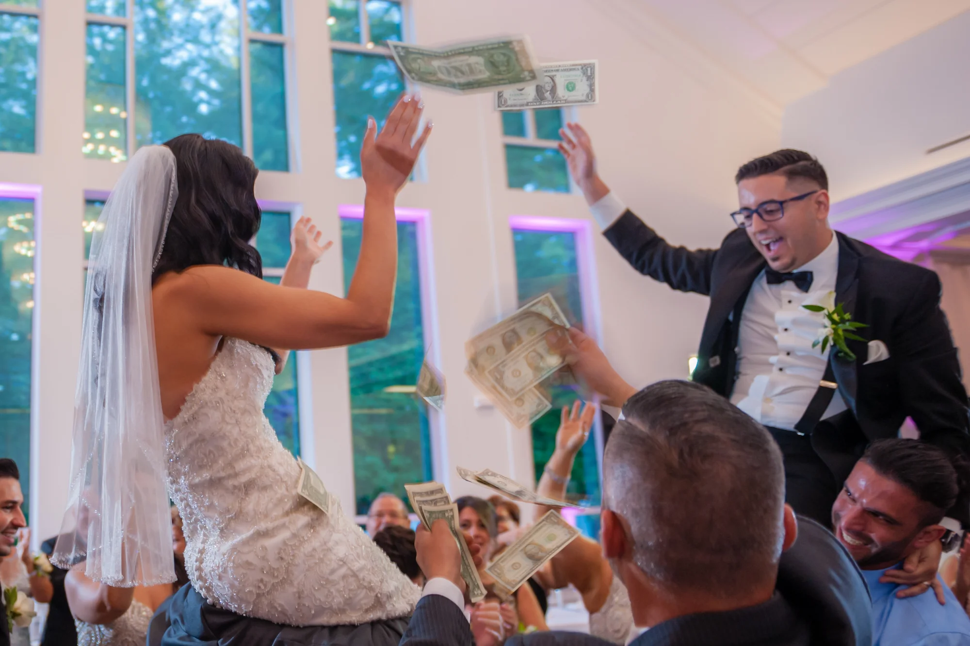 Joyce and Luigi’s grand entrance to the reception was made complete with a traditional Lebanese drummer who made their introduction one of the most exciting I had ever been witness to. Within moments of their entrance, Joyce and Luigi were riding high above a sea of wedding guests as a cascade of gifted money rained down all around the couple.