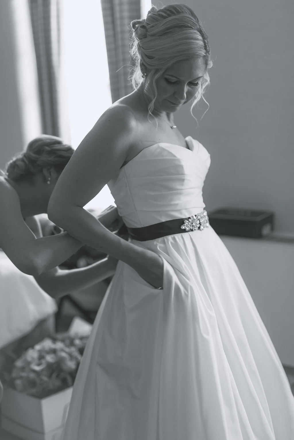My day began with Paige with her Mom and her bridesmaids getting ready in the bridal suite at the Inn. Shooting the wedding dress, shoes, jewelry, bouquets, the pop of a champagne bottle followed by a celebratory toast, portraits of Paige and each of her bridemaids, the “getting ready” photos are always among my favorite to shoot.
