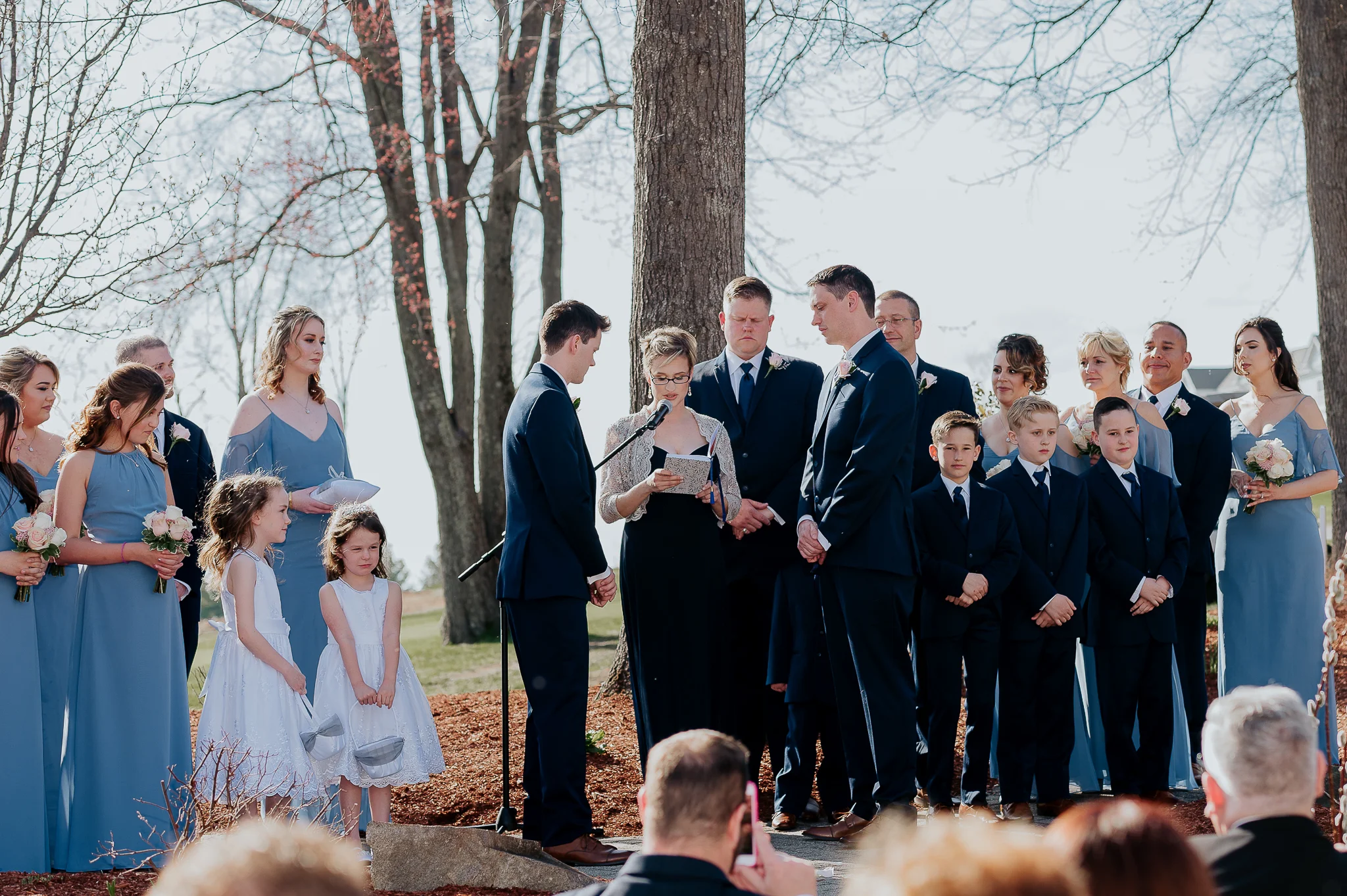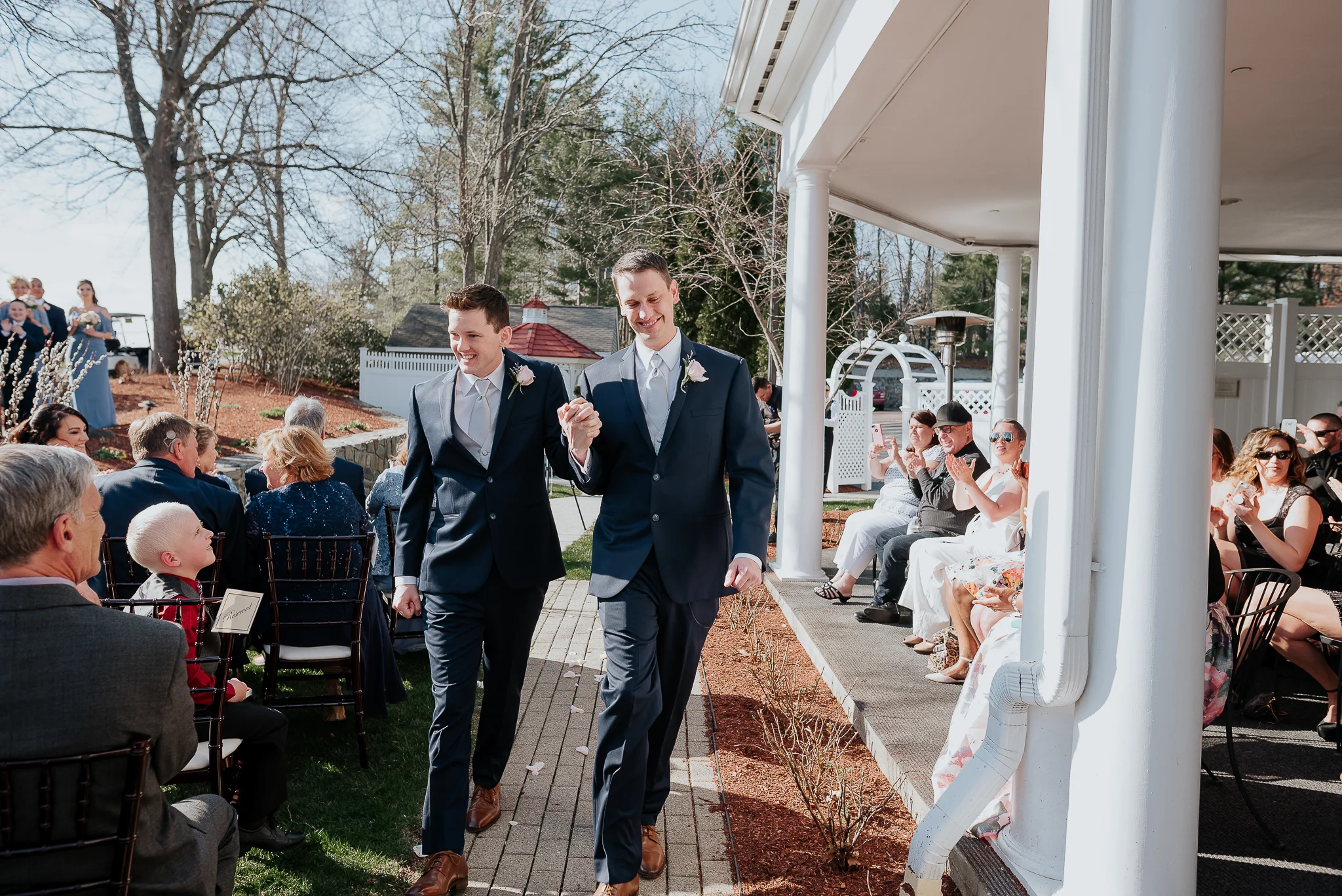 Tim and Matt were married on a beautiful and sunny Saturday on April 28th at the Sky Meadow Country Club in Nashua, NH. A cloudless blue sky. A constant spring breeze. A stunning view at the highest point in Nashua, perfect for epic dusk shots. Smiles laughs, and hugs at every turn. These guys are blessed with awesome friends and loving families. So happy for Tim and Matt and their new adventures together! I wish you all the best. Thanks so much for allowing me to capture your love for one another.