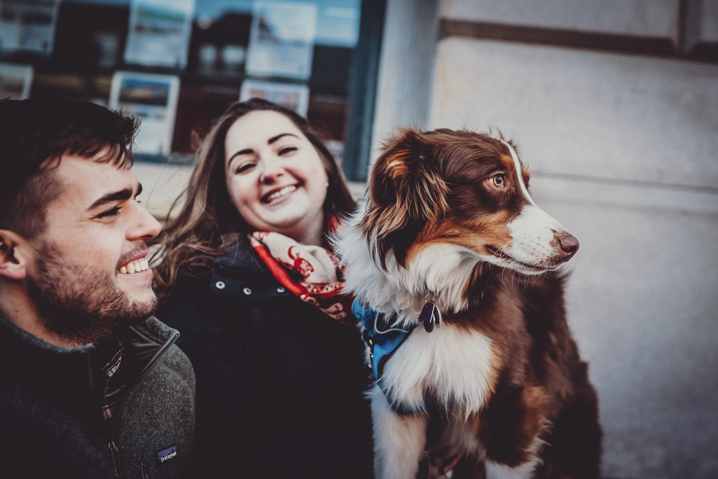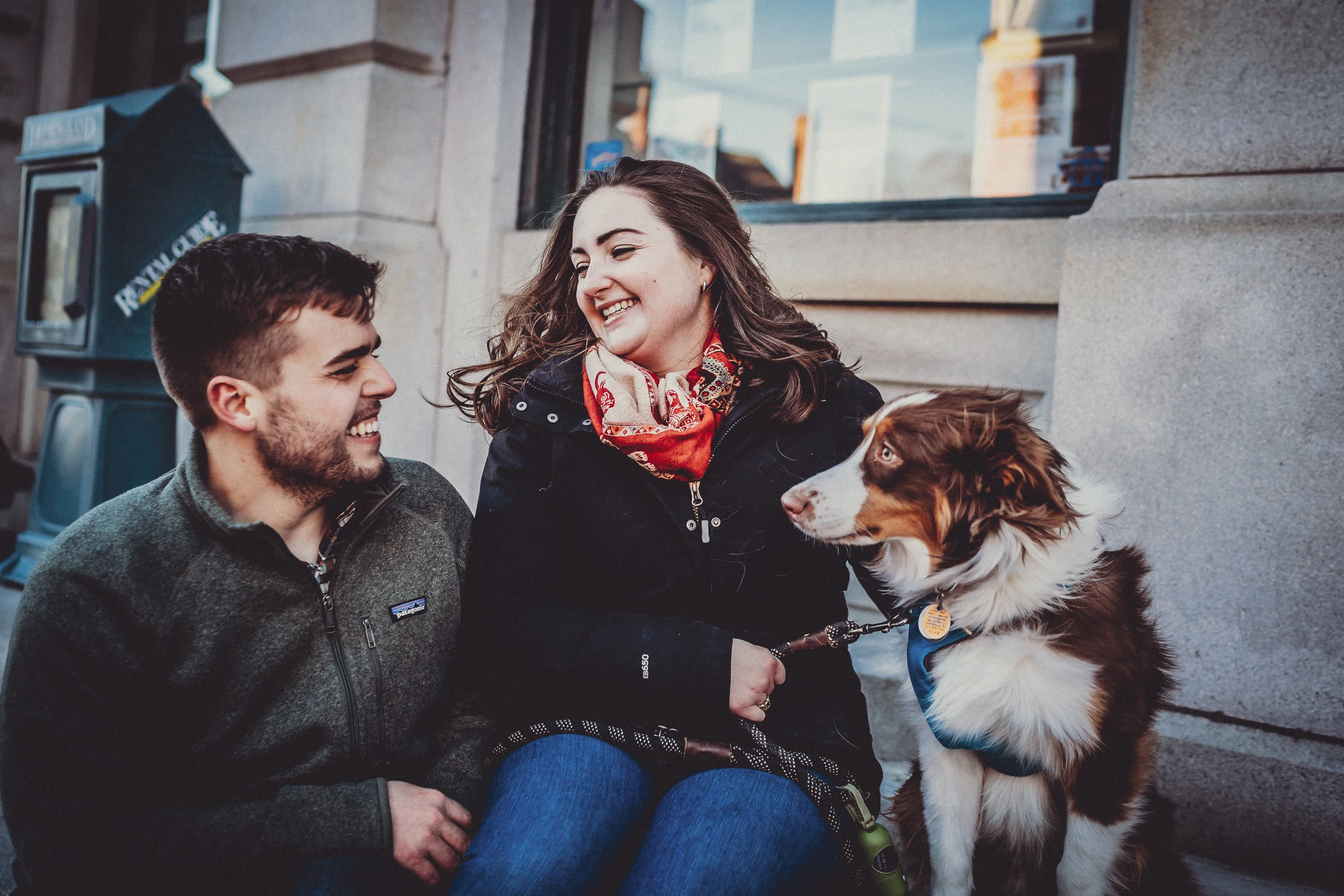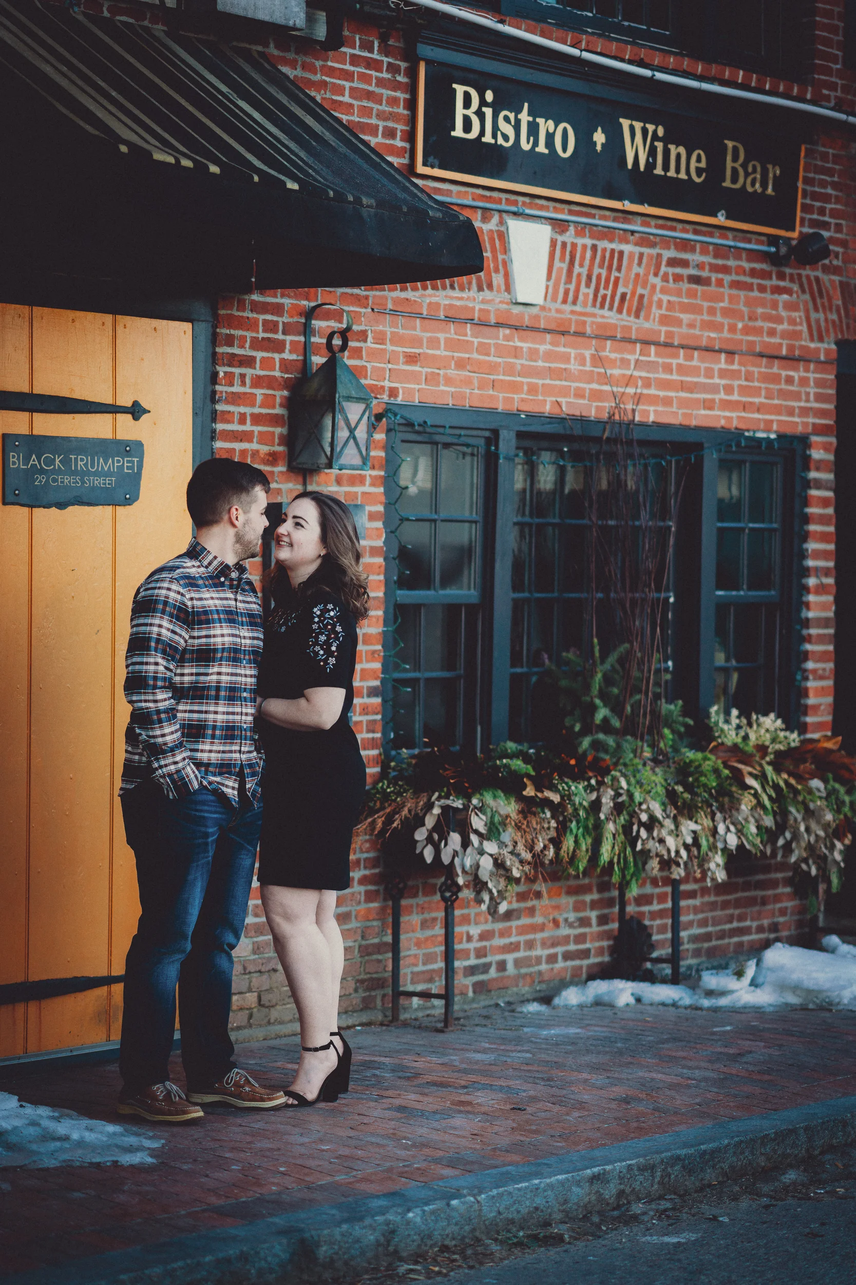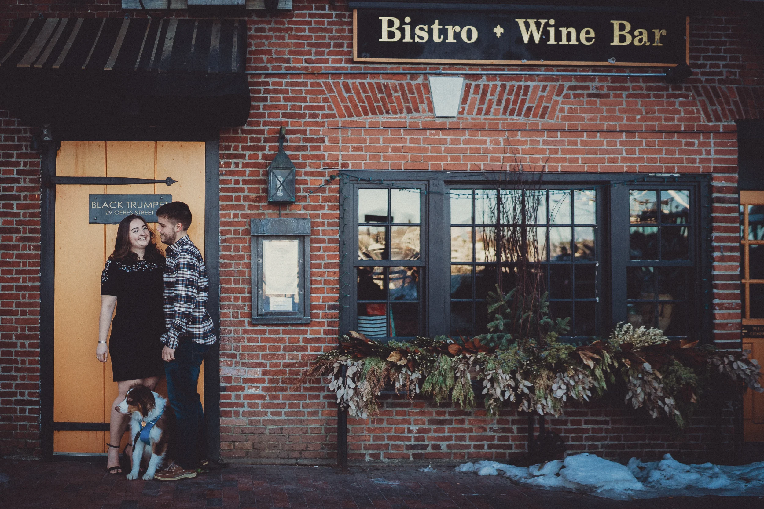 I had the pleasure of hanging out with Hannah & Austin (and their dog Moose!), on Sunday where we met for their very chilly engagement session! Although we had plenty of sunshine, temps never exceeded 30 degrees and the wind was pretty relentless, making for a memorable shoot for sure. Ha! Hannah and Austin were more than game for doing their shoot, despite the bitter temps. We met in the lobby of the Hilton Garden Inn where we made a few photographs and chatted about plans for their May 25th wedding which will be taking place in beautiful Wolfeboro, NH. From there we wandered among the iconic tugboats, and the Black Trumpet along Ceres Street, before heading down to Prescott Park’s waterfront. Here are a few from our time together. I hope you enjoy viewing them as much as I did photographing them! cheers!