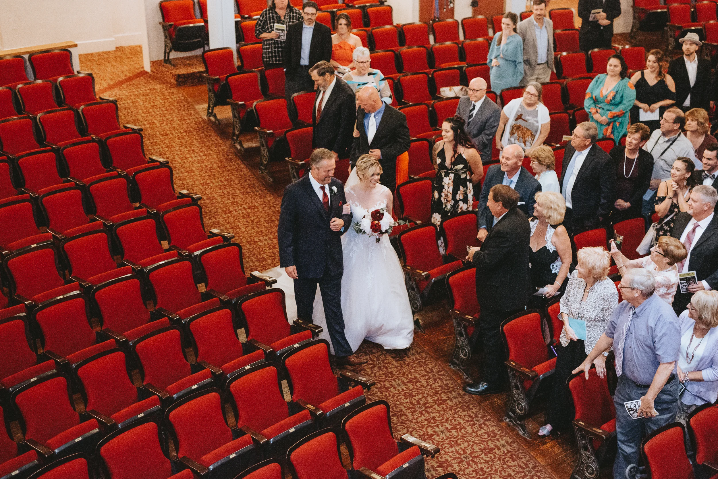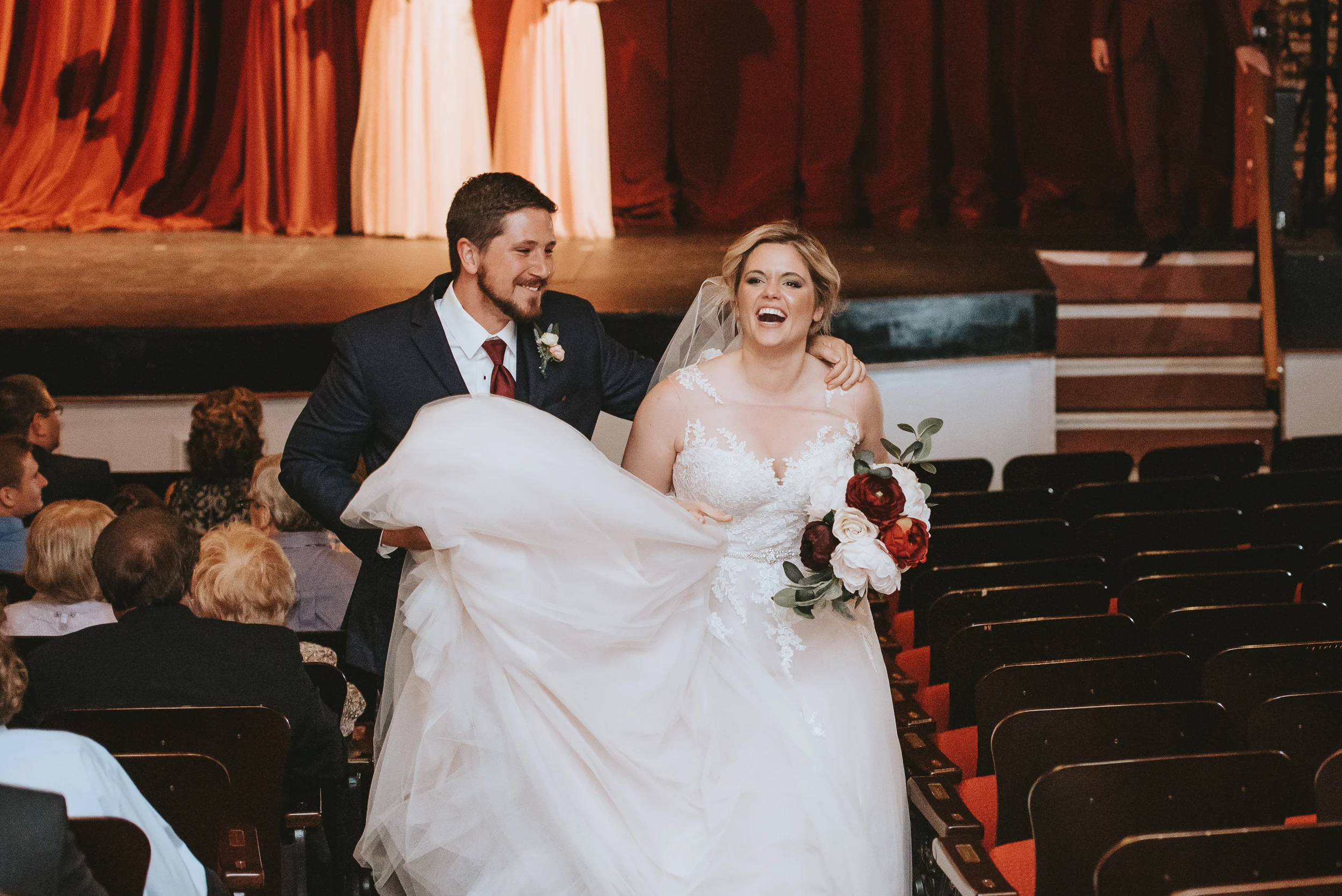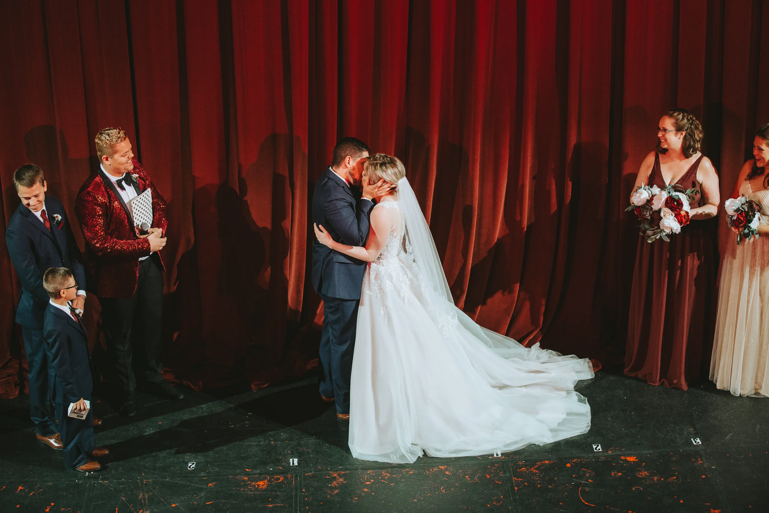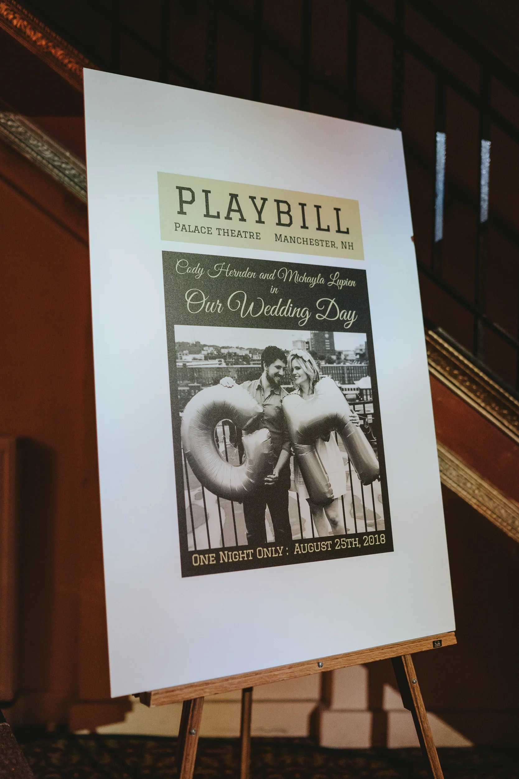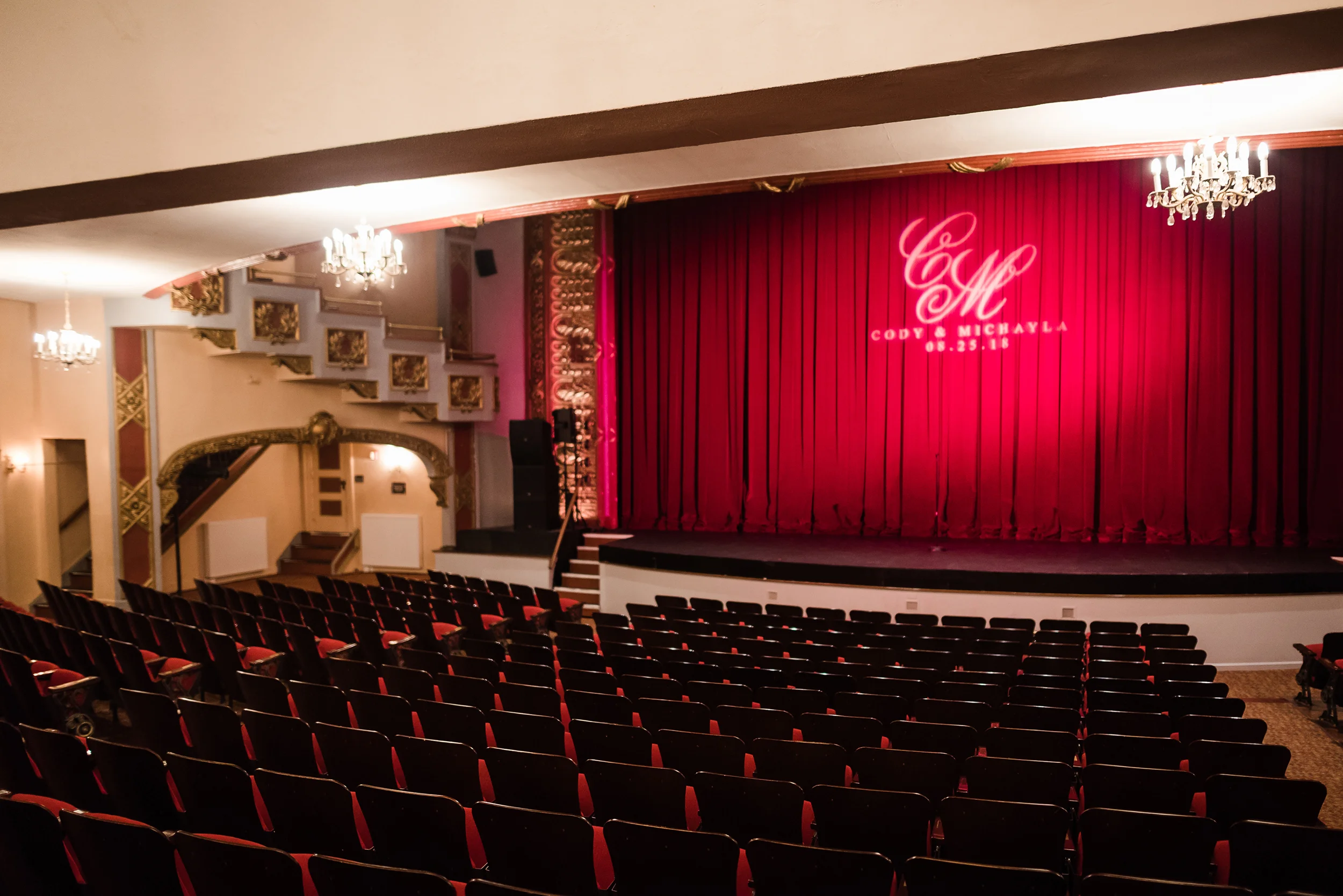 Michayla and Cody were married at the historic Palace Theatre in Manchester, NH on August 25, 2018. The Theater holds a very special place in the hearts of Michayla and Cody. Both are actors and professionally involved in the Palace Youth Theater program, and each has a long history of work with past theater productions, so it made more than perfect sense for their actual wedding to take place here! In fact, Michayla’s passion for the Palace Theatre is so strong, that she recently took a position working for the Theatre’s marketing team!