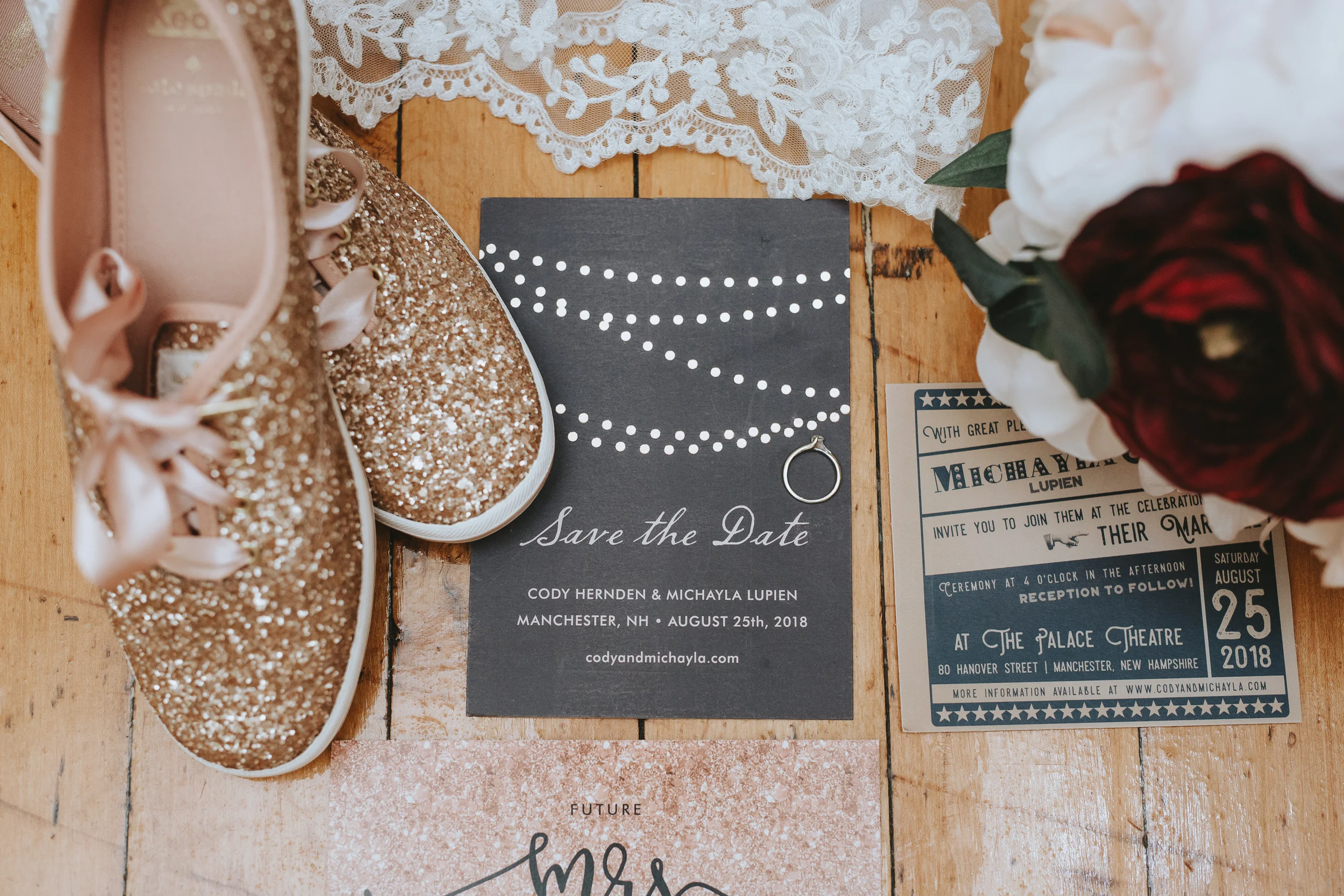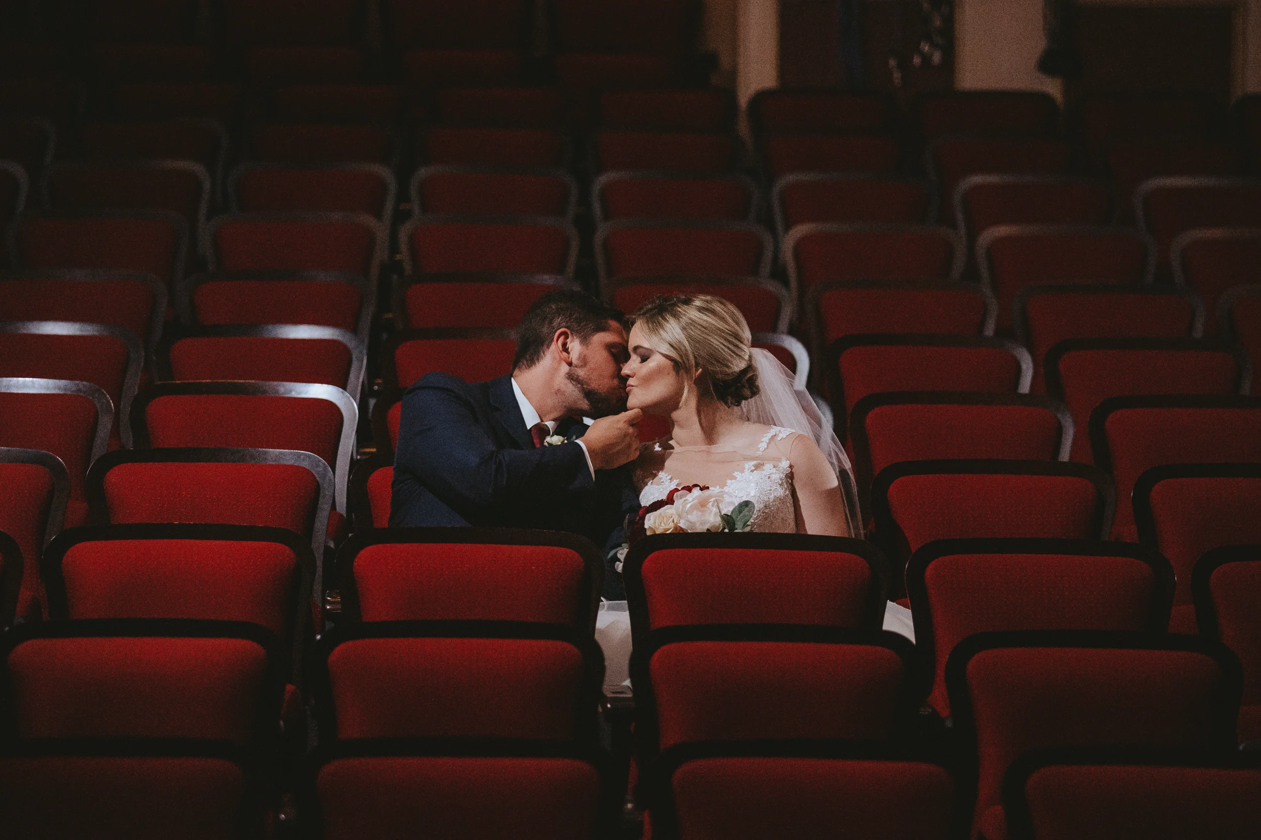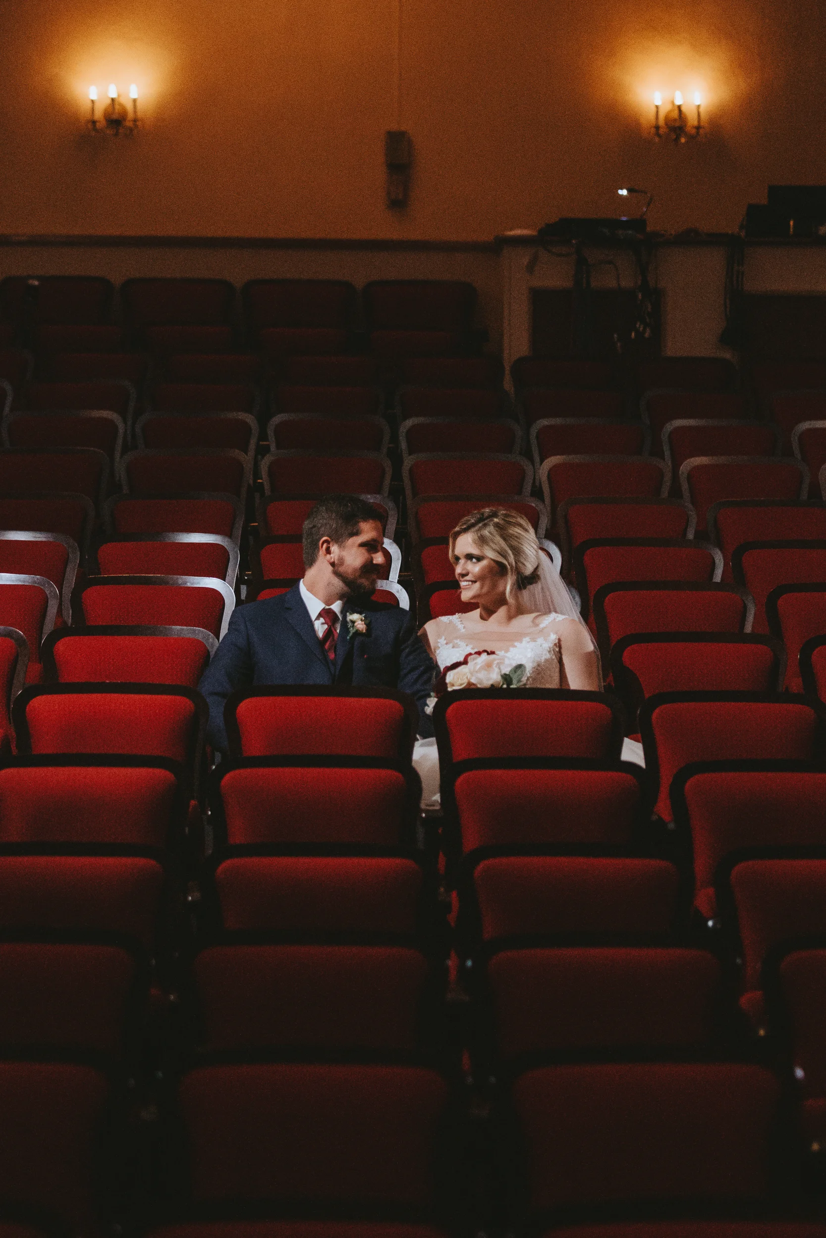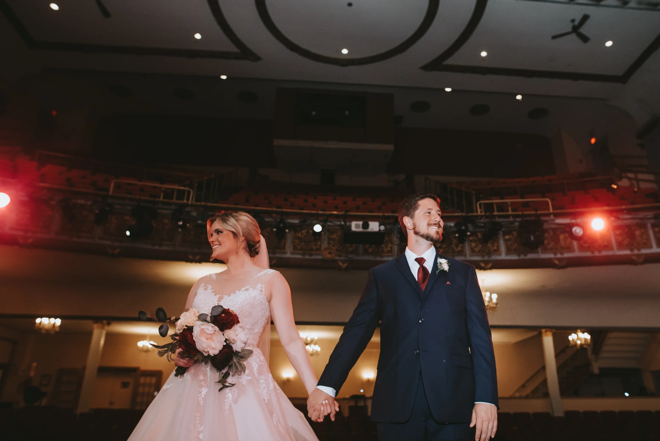 Michayla and her bridal party got ready at her parent’s residence in Manchester, while Cody and his groomsmen did the same at Doubletree by Hilton Hotel. Michayla & Cody’s first look was strategically planned to take place up in one of the theatre’s iconic balconies, followed by family and wedding party formals which were shot on the majestic stage which contributed to a heightened sense of cinematography which I can say, I have not experienced to this degree, since (having a theatre lighting designer as a close friend of the couple always helps!).