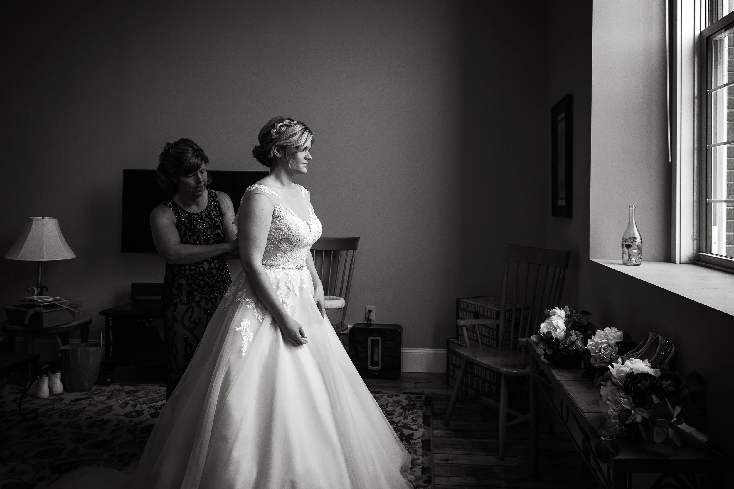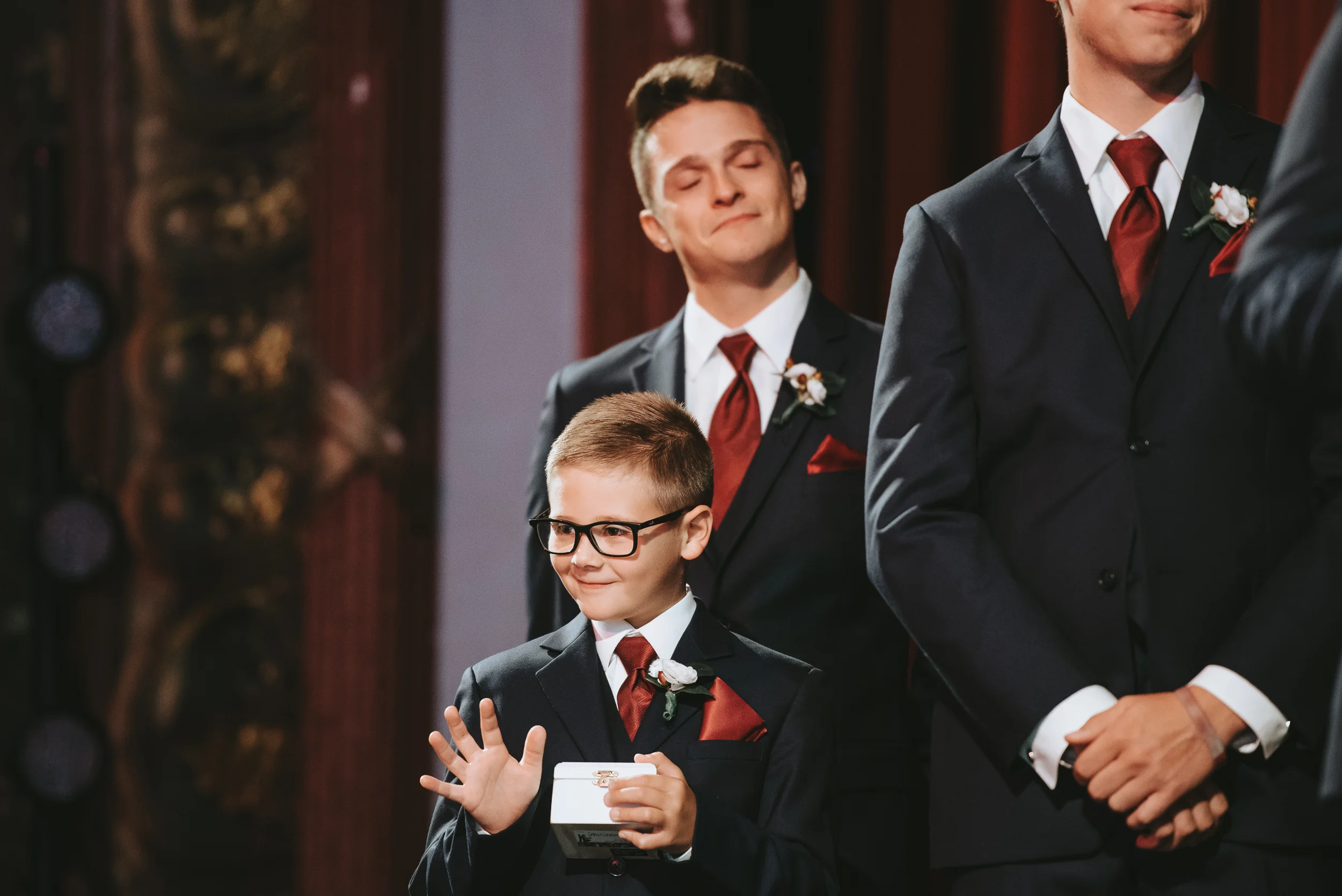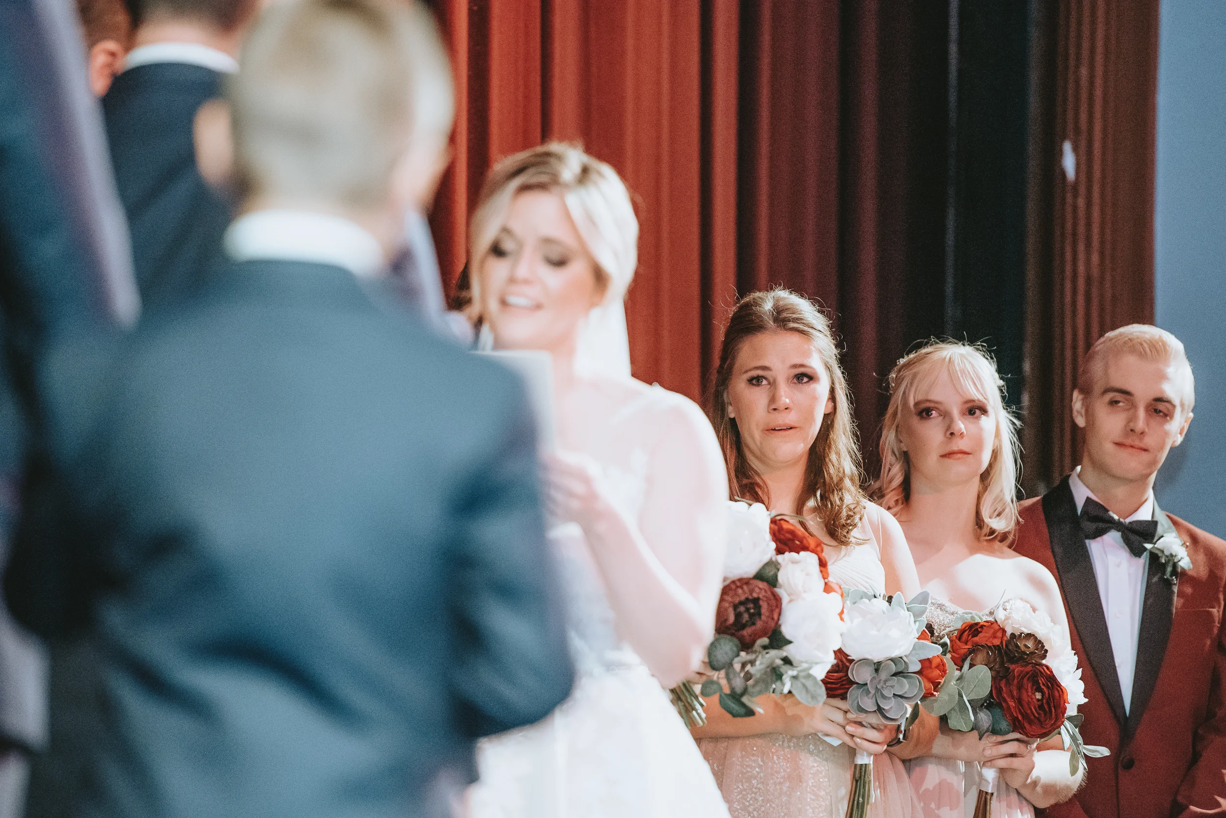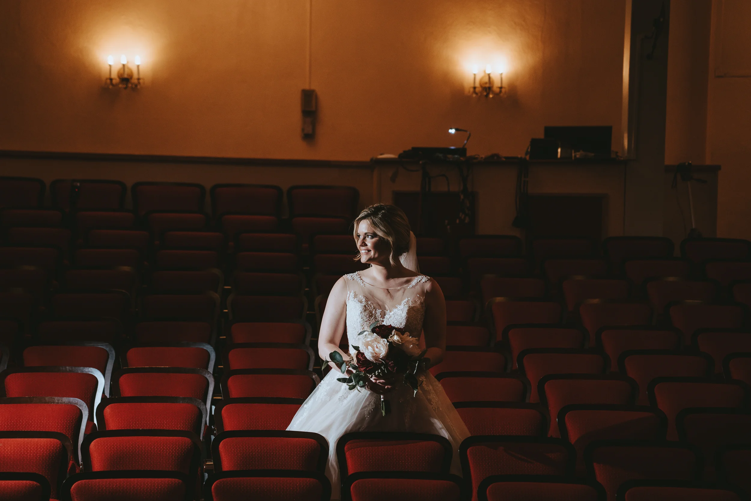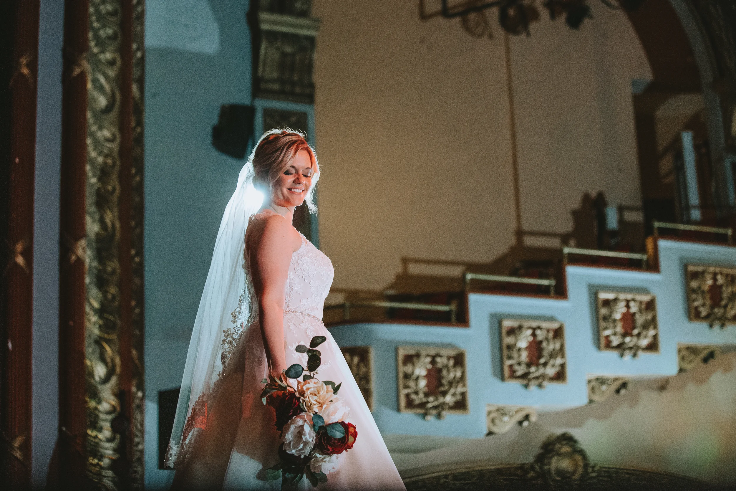 Michayla and her bridal party got ready at her parent’s residence in Manchester, while Cody and his groomsmen did the same at Doubletree by Hilton Hotel. Michayla & Cody’s first look was strategically planned to take place up in one of the theatre’s iconic balconies, followed by family and wedding party formals which were shot on the majestic stage which contributed to a heightened sense of cinematography which I can say, I have not experienced to this degree, since (having a theatre lighting designer as a close friend of the couple always helps!).