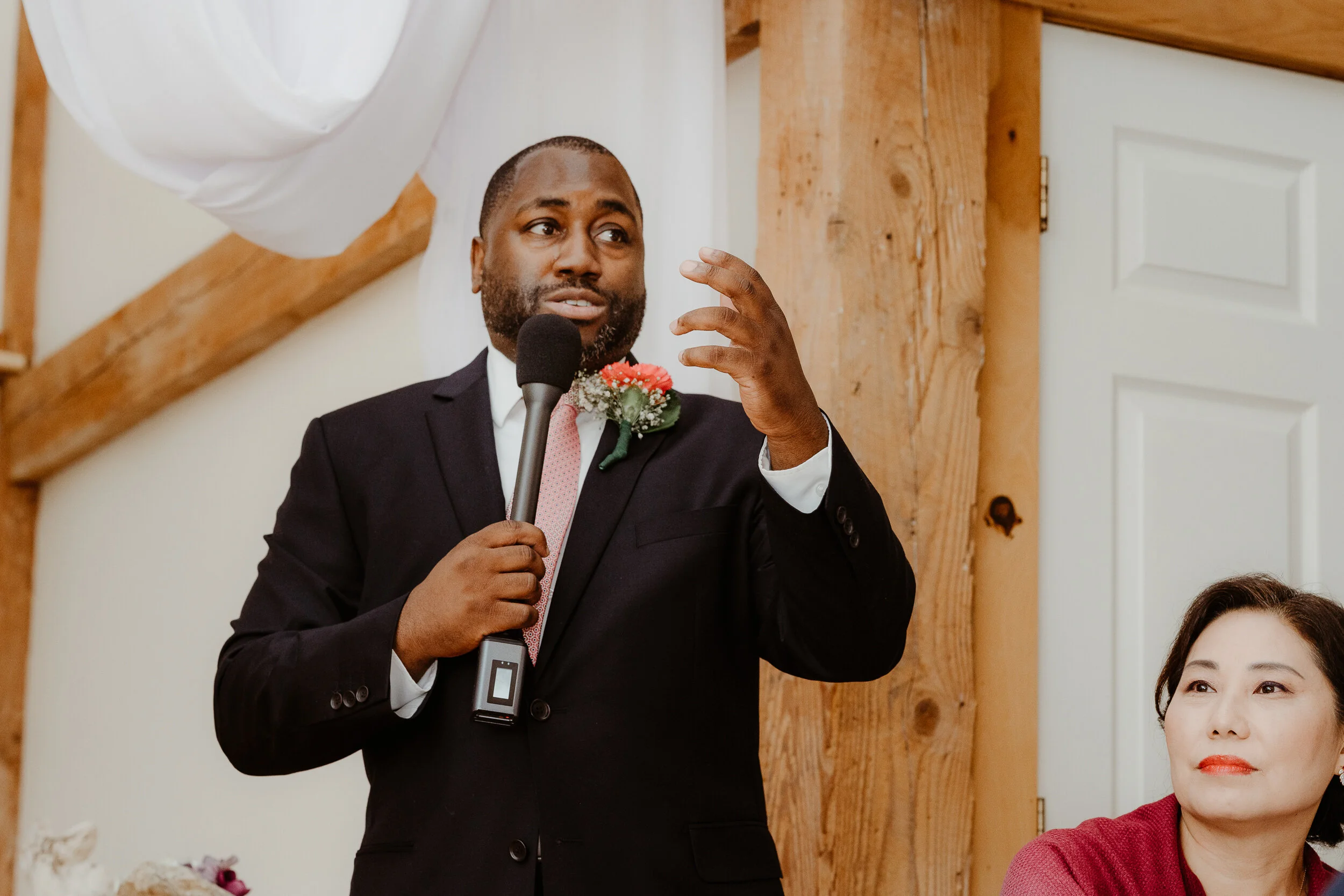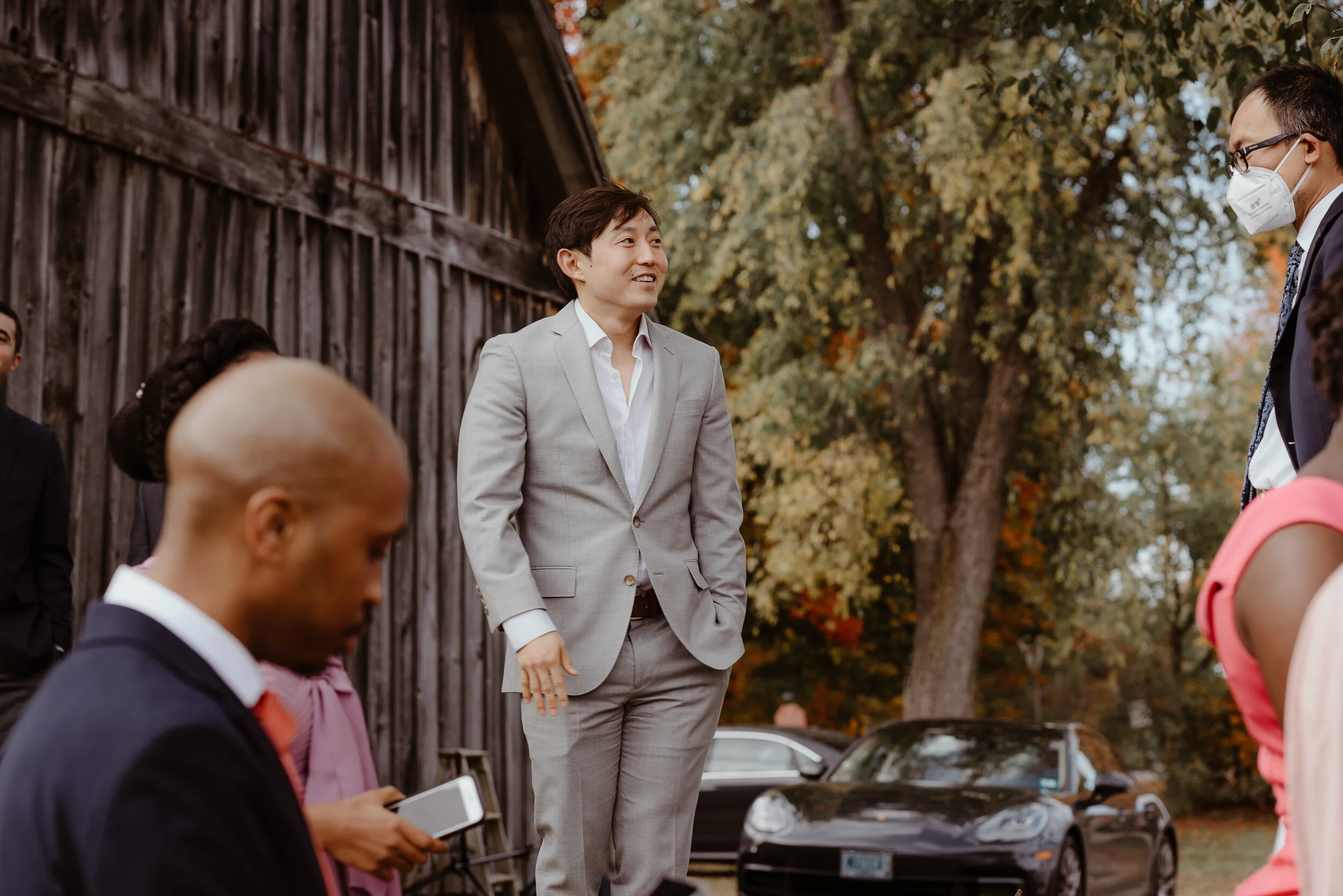 Soon after, a guy shows up at the food table. “Are you guys waiting for the rice?” He asked. I mumbled that we were. He wore a hat, and a light coat – burgundy in color.
