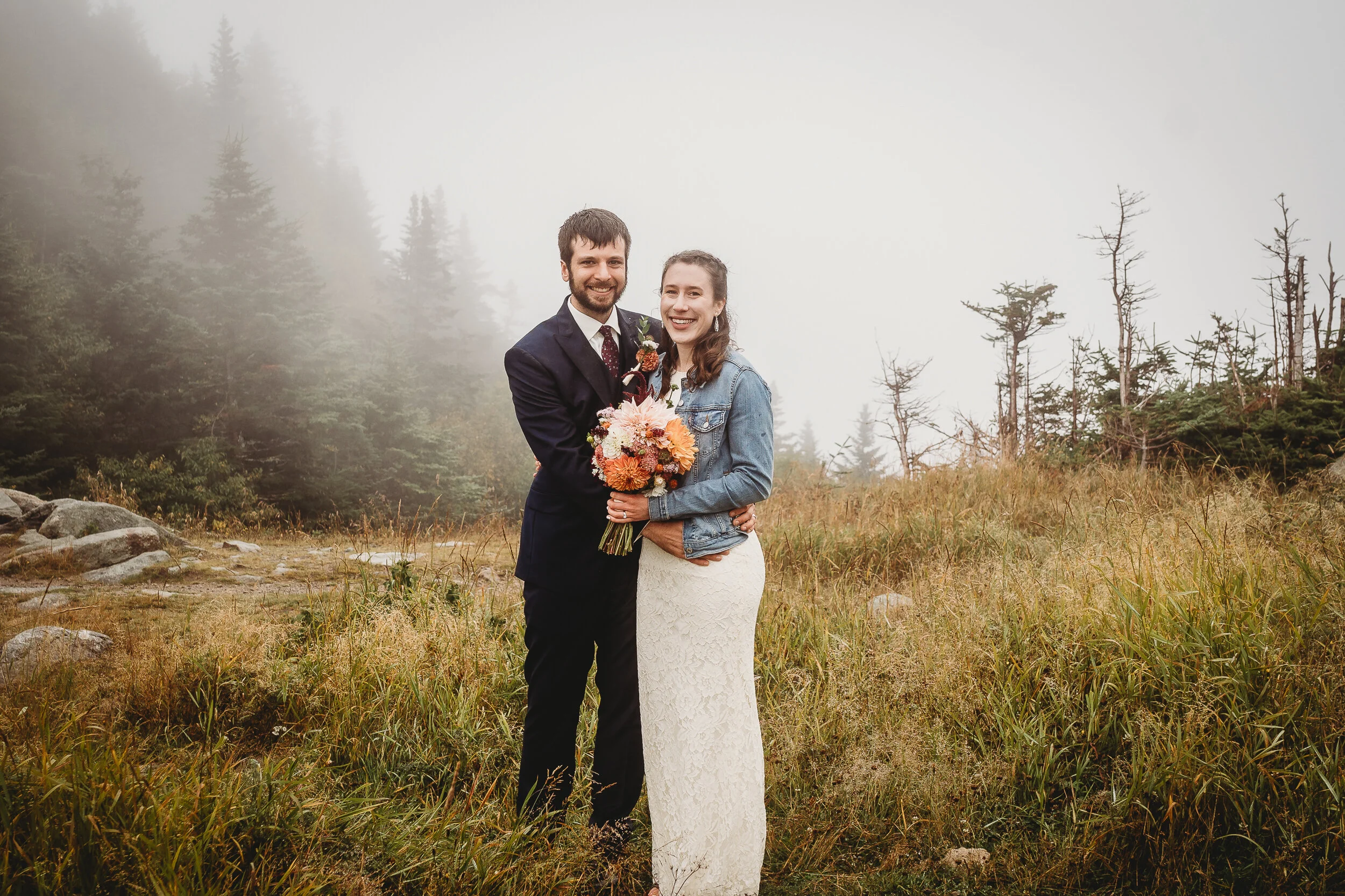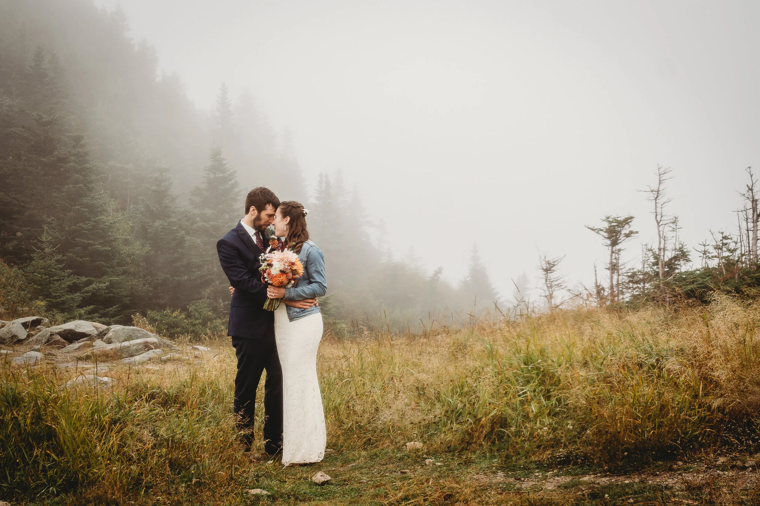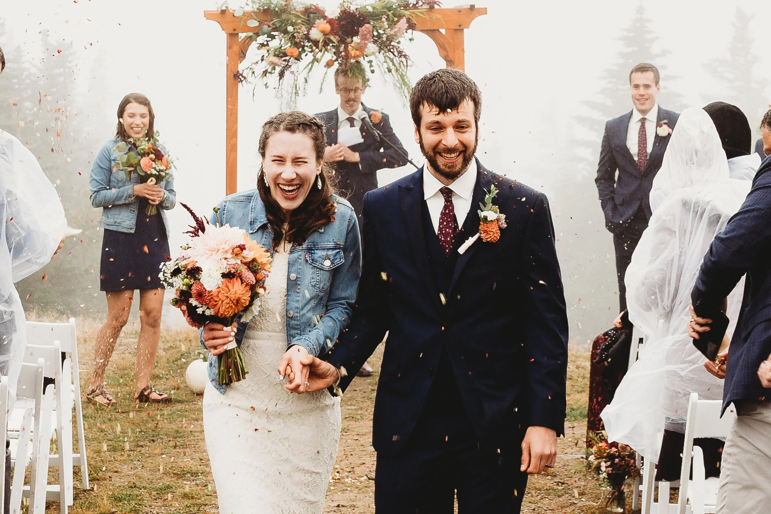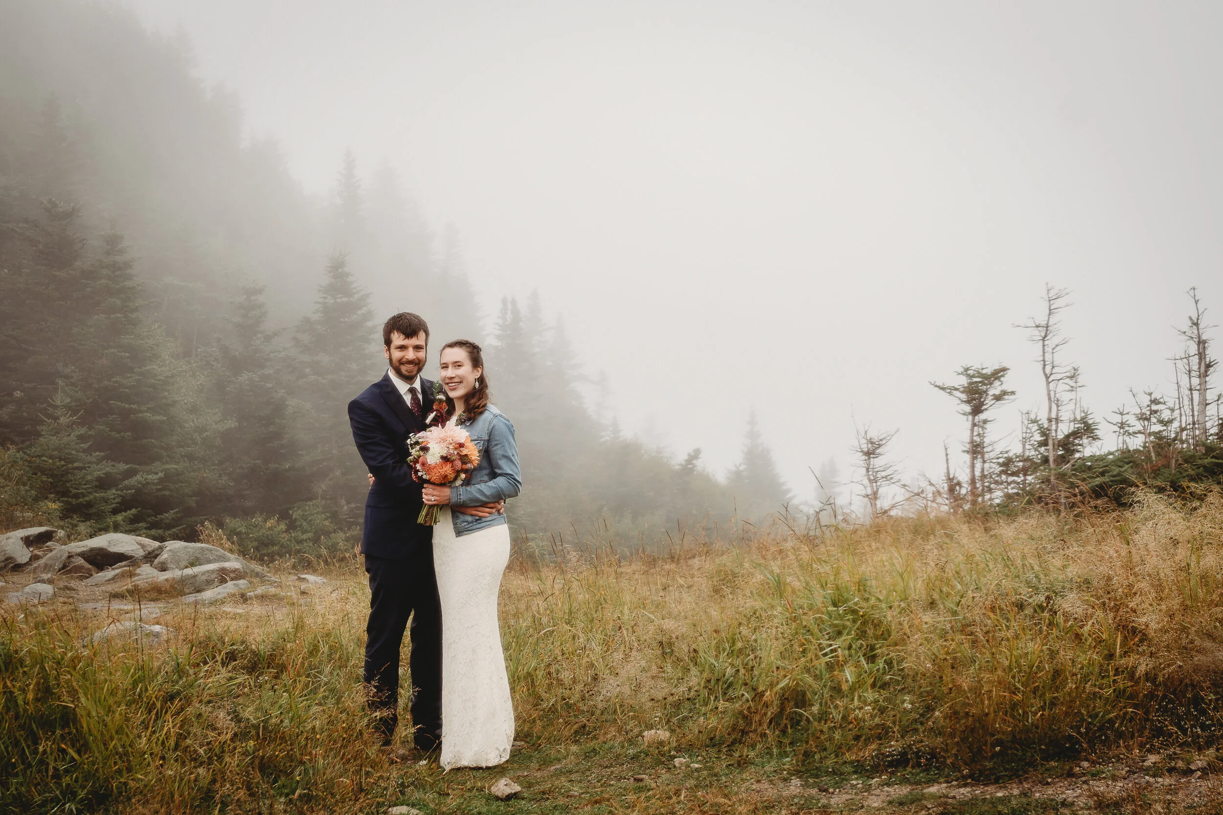 Britta and Brian were married on Saturday September 14, 2019 on the tippity-top of a incredibly foggy, wind-swept Wildcat Mountain in Pinkham Notch, NH which is located in the White Mountain National Forest across from Mount Washington. Despite inclement (and sometimes turbulent!) weather, their ceremony was absolutely epic, and a veritable Ulyssian adventure for all in attendance. Guests journeyed to the top of the mountain via gondolas through heavy winds, donning the readily supplied rain ponchos in anticipation of their ceremony. One had the distinct feeling that we were all in this together, witnessing something unique and memorable, knowing full well that we would all be left better for having experienced it. It was that kind of epicness that I struggle to convey with words, so make sure to check out the photos below! Thanks so much for allowing me to capture these memories for you Britta & Brian!