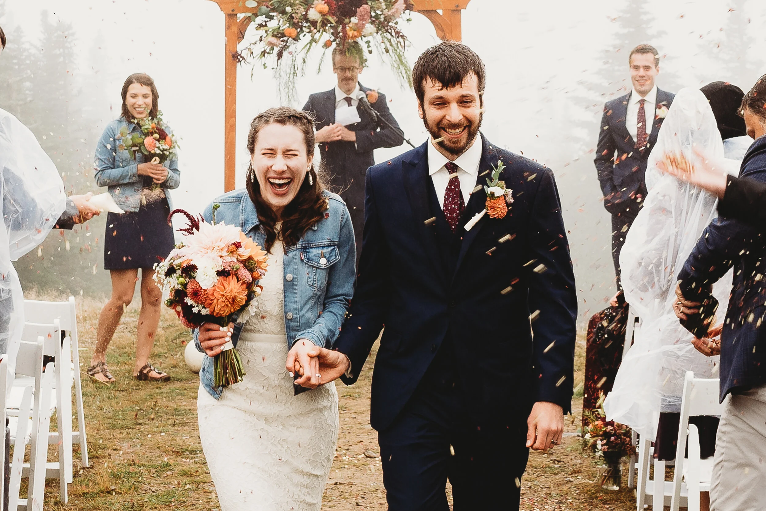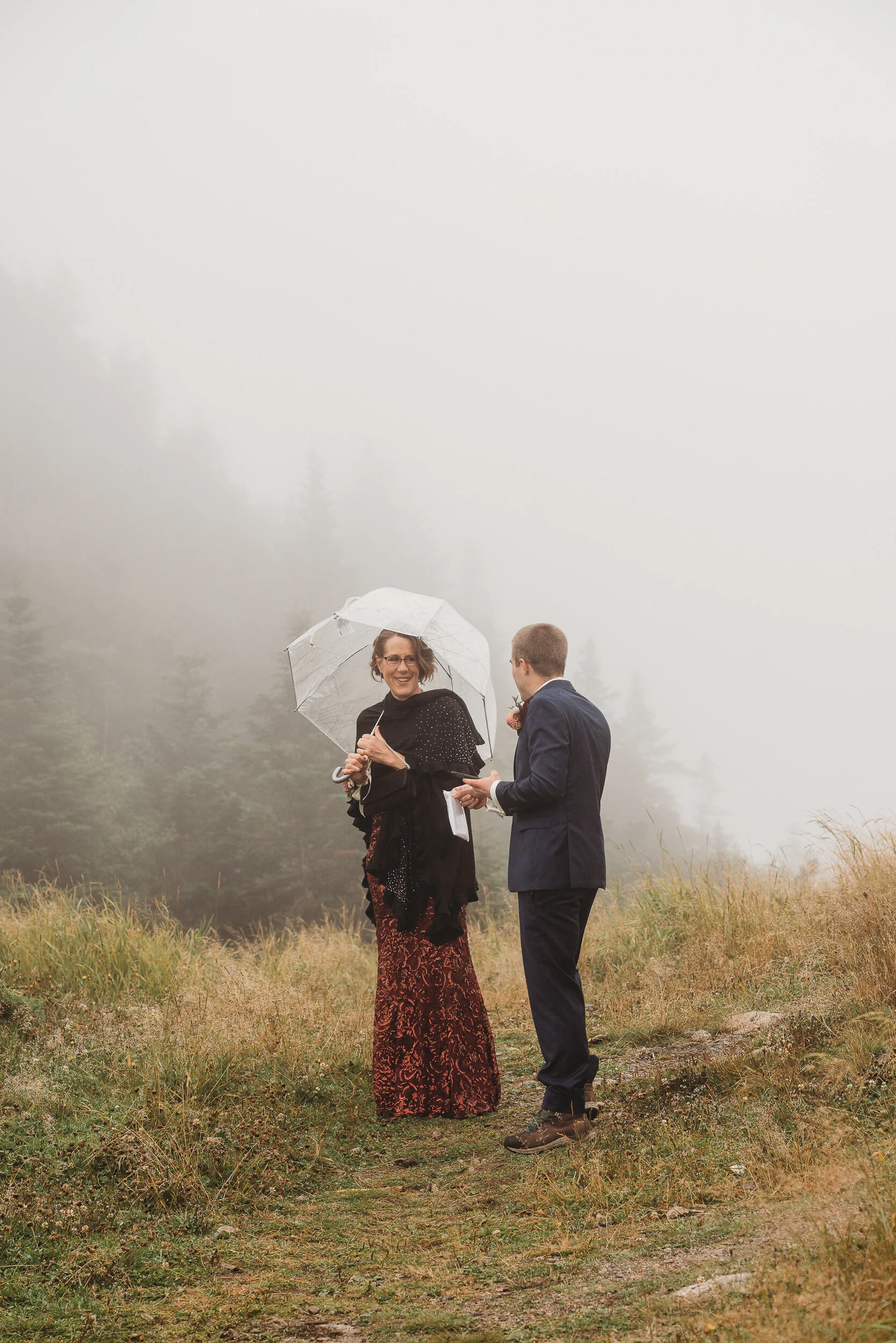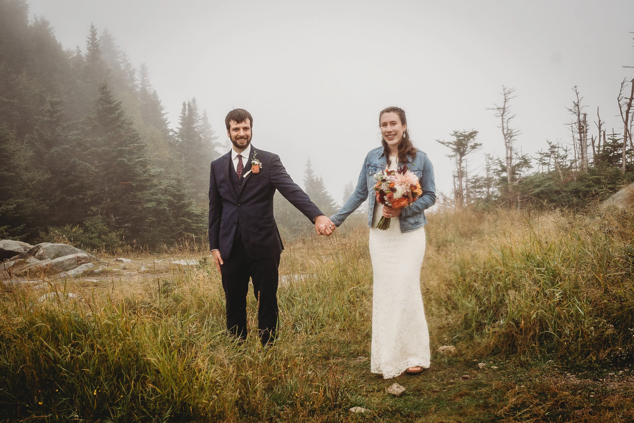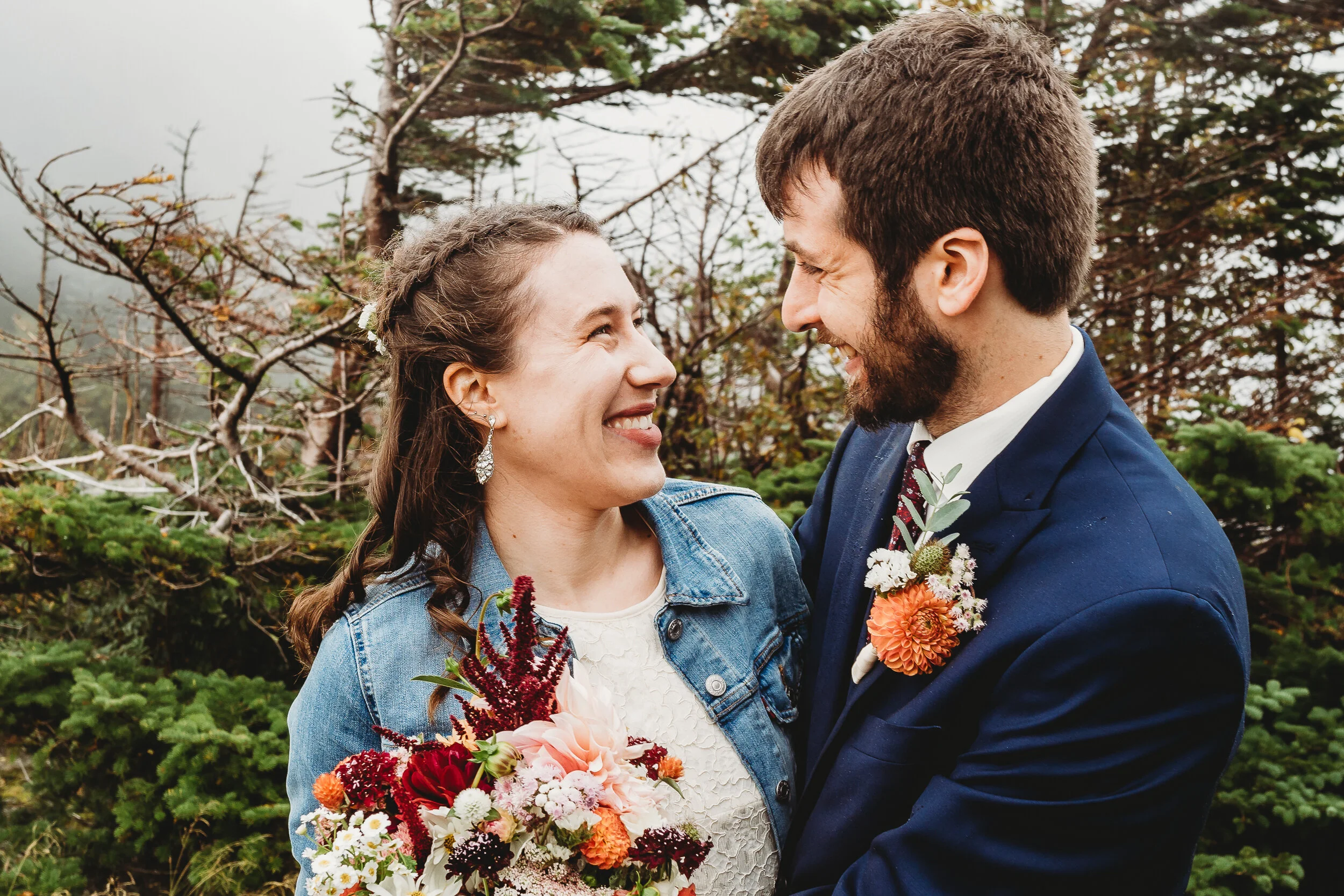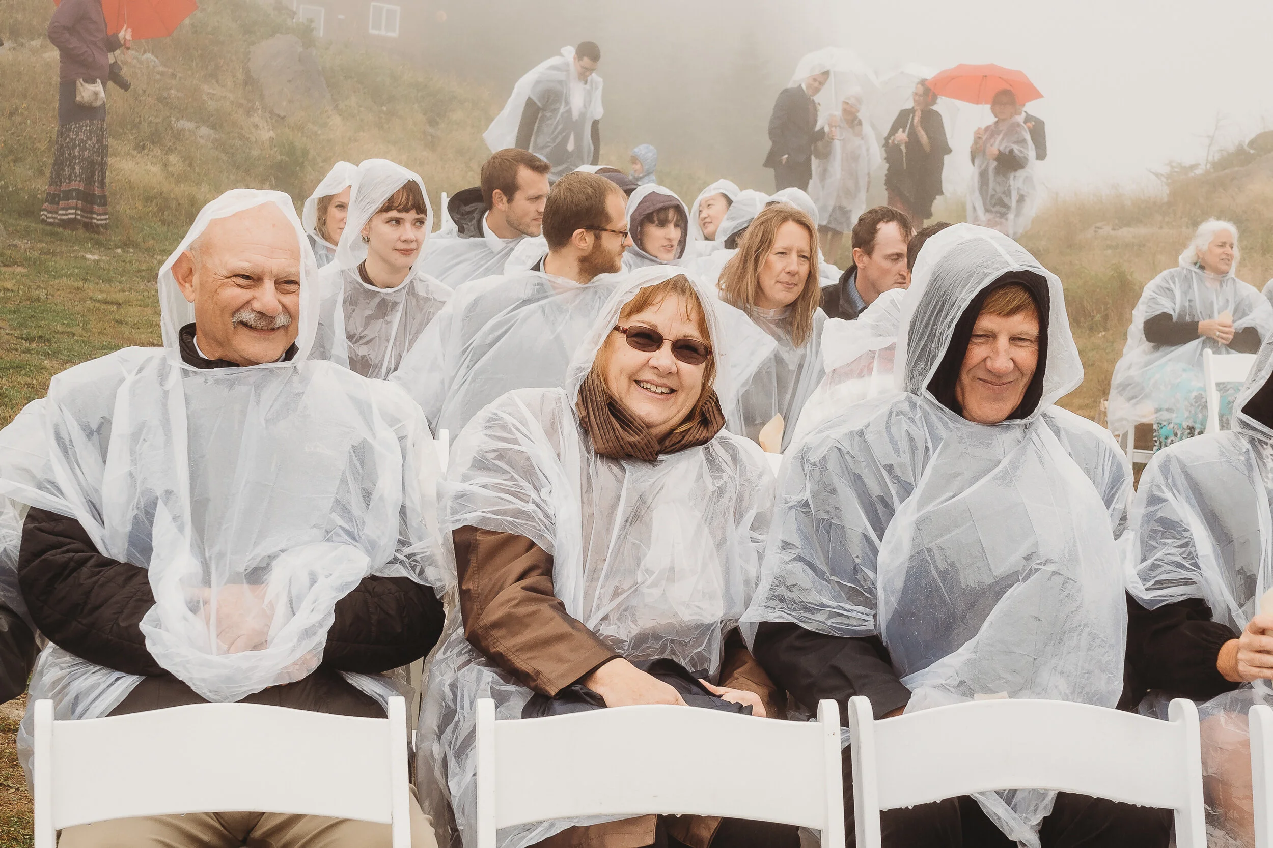 Britta and Brian were married on Saturday September 14, 2019 on the tippity-top of a incredibly foggy, wind-swept Wildcat Mountain in Pinkham Notch, NH which is located in the White Mountain National Forest across from Mount Washington. Despite inclement (and sometimes turbulent!) weather, their ceremony was absolutely epic, and a veritable Ulyssian adventure for all in attendance. Guests journeyed to the top of the mountain via gondolas through heavy winds, donning the readily supplied rain ponchos in anticipation of their ceremony. One had the distinct feeling that we were all in this together, witnessing something unique and memorable, knowing full well that we would all be left better for having experienced it. It was that kind of epicness that I struggle to convey with words, so make sure to check out the photos below! Thanks so much for allowing me to capture these memories for you Britta & Brian!