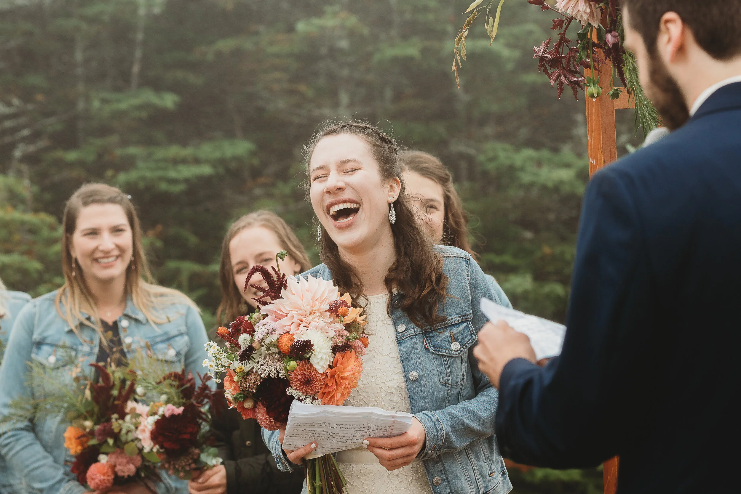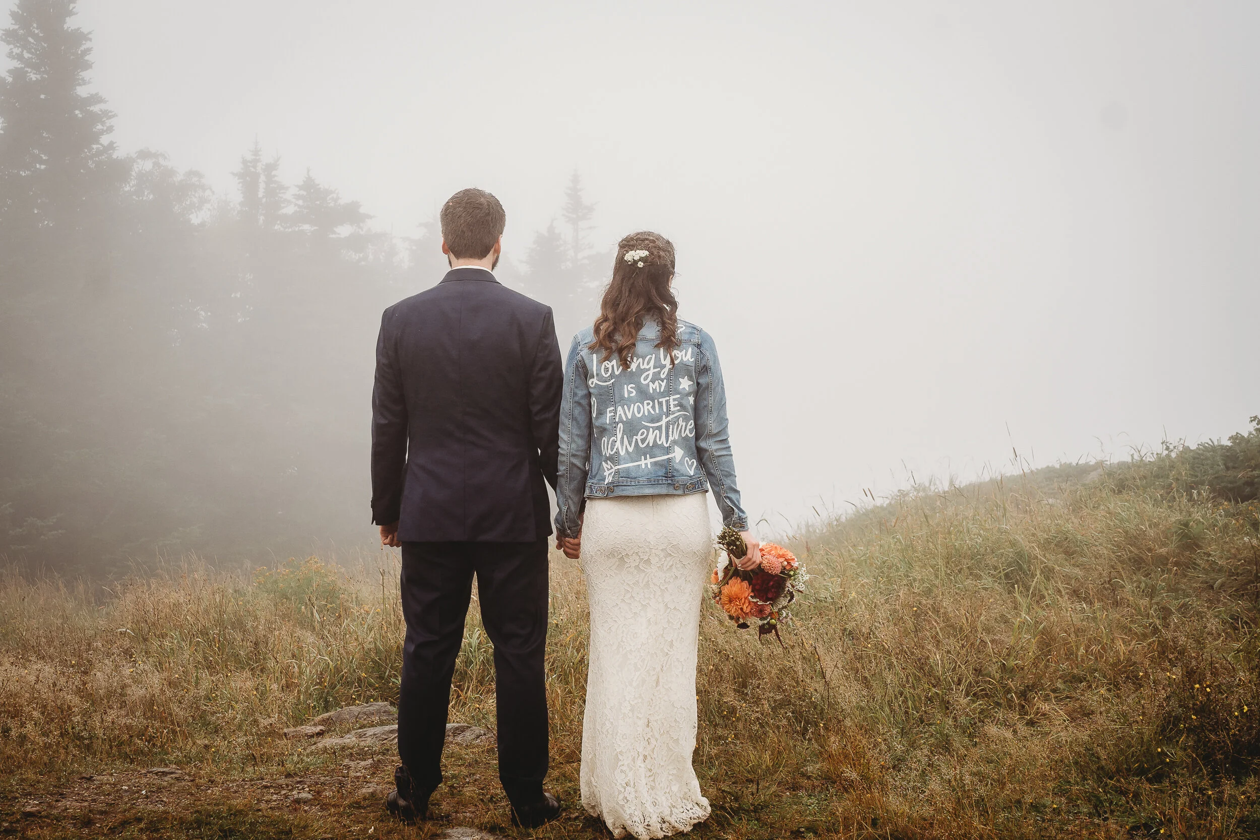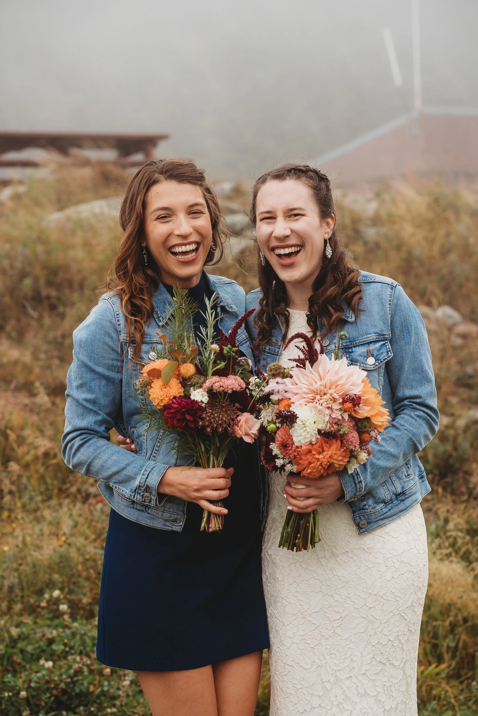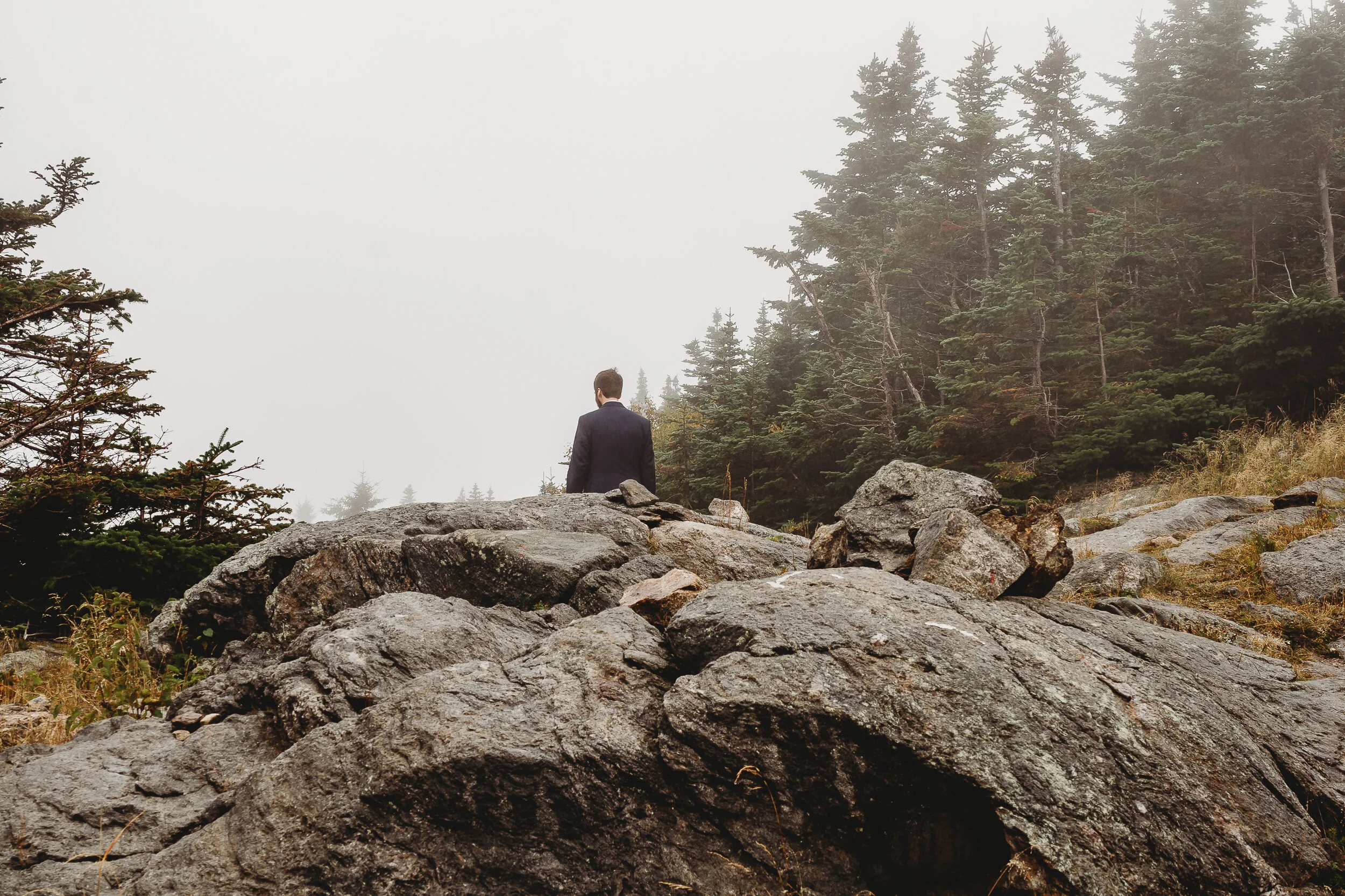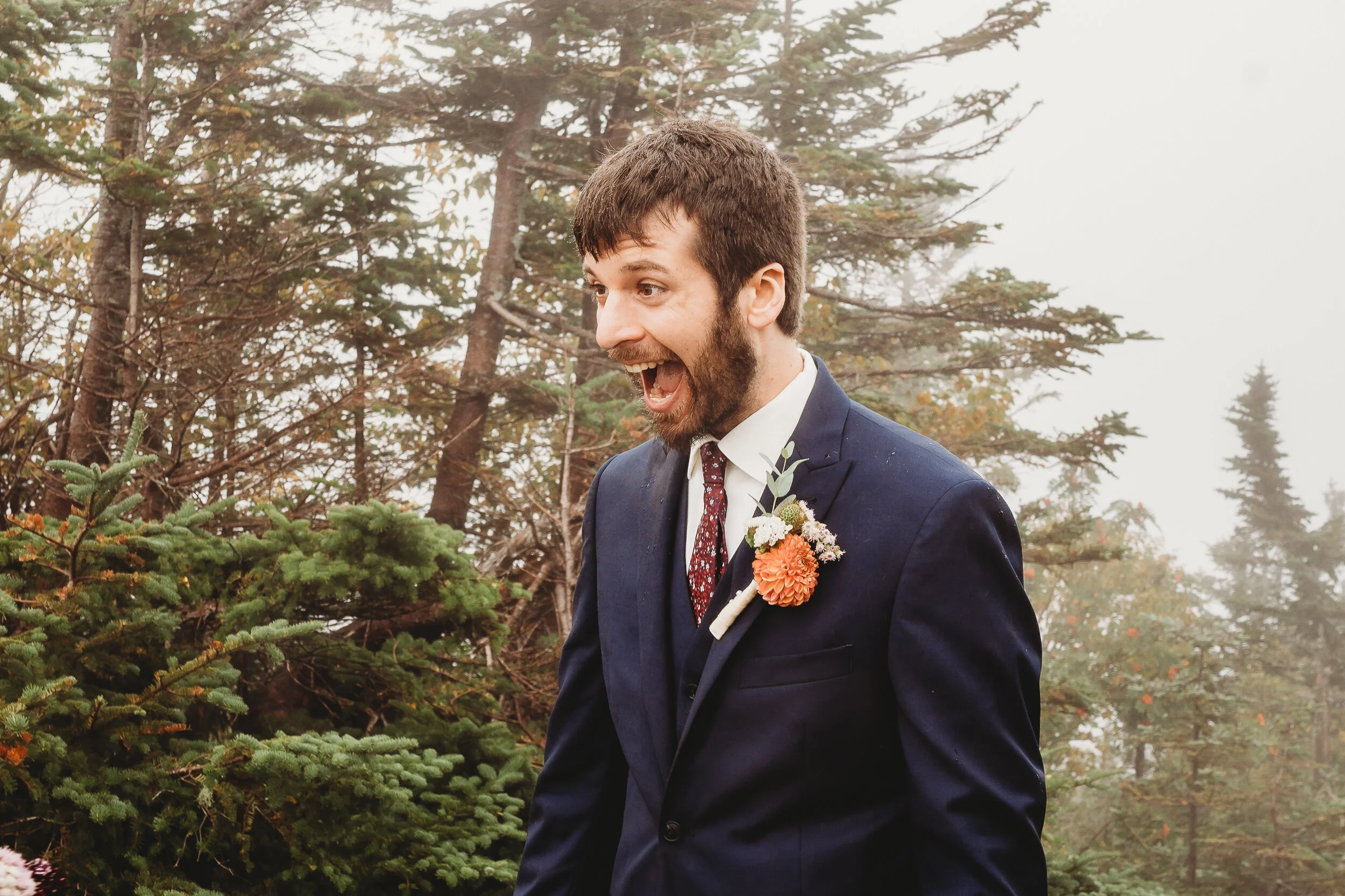 Britta and Brian were married on Saturday September 14, 2019 on the tippity-top of a incredibly foggy, wind-swept Wildcat Mountain in Pinkham Notch, NH which is located in the White Mountain National Forest across from Mount Washington. Despite inclement (and sometimes turbulent!) weather, their ceremony was absolutely epic, and a veritable Ulyssian adventure for all in attendance. Guests journeyed to the top of the mountain via gondolas through heavy winds, donning the readily supplied rain ponchos in anticipation of their ceremony. One had the distinct feeling that we were all in this together, witnessing something unique and memorable, knowing full well that we would all be left better for having experienced it. It was that kind of epicness that I struggle to convey with words, so make sure to check out the photos below! Thanks so much for allowing me to capture these memories for you Britta & Brian!