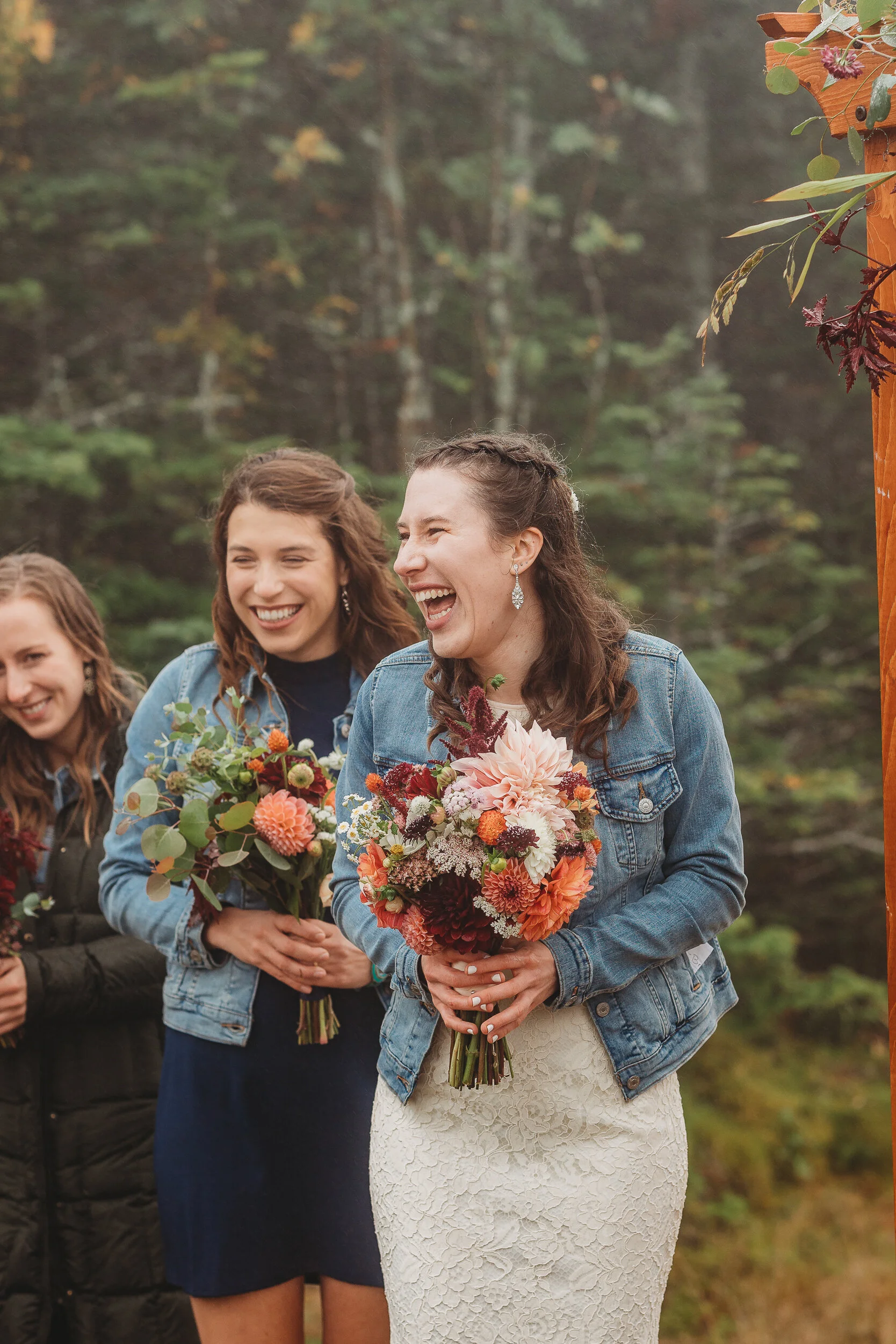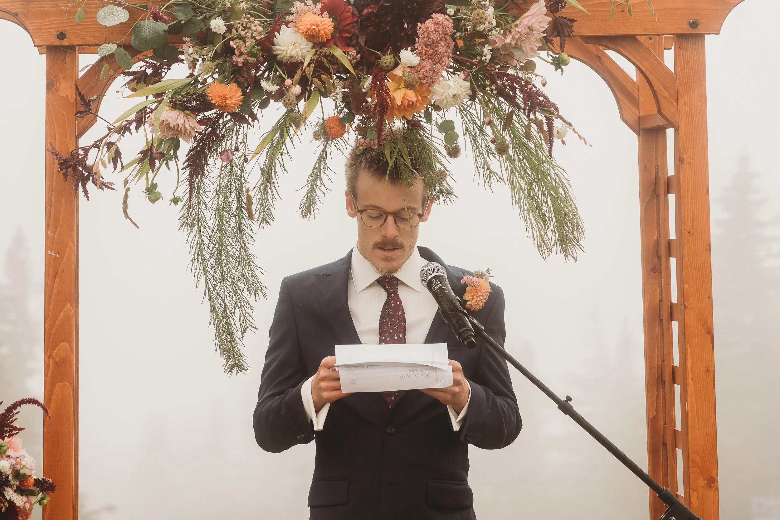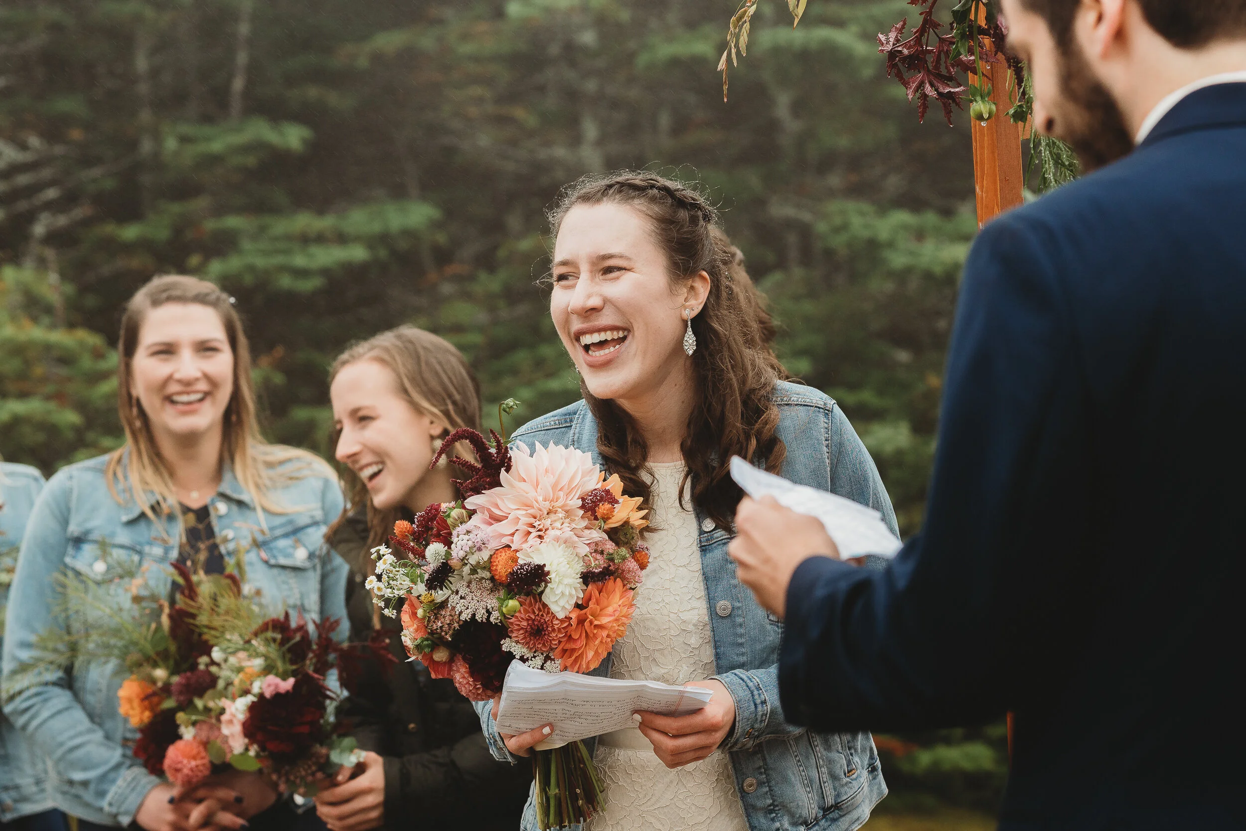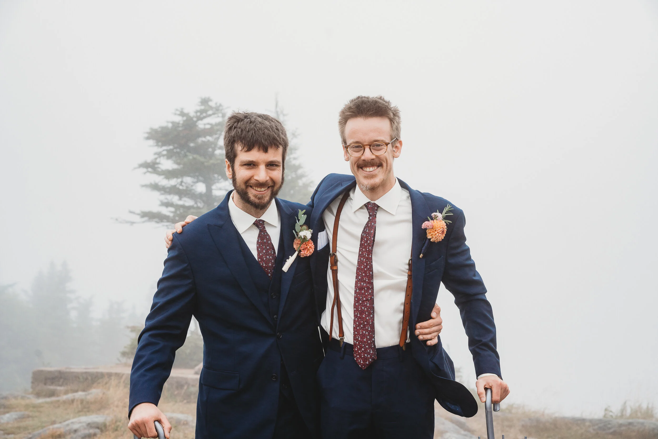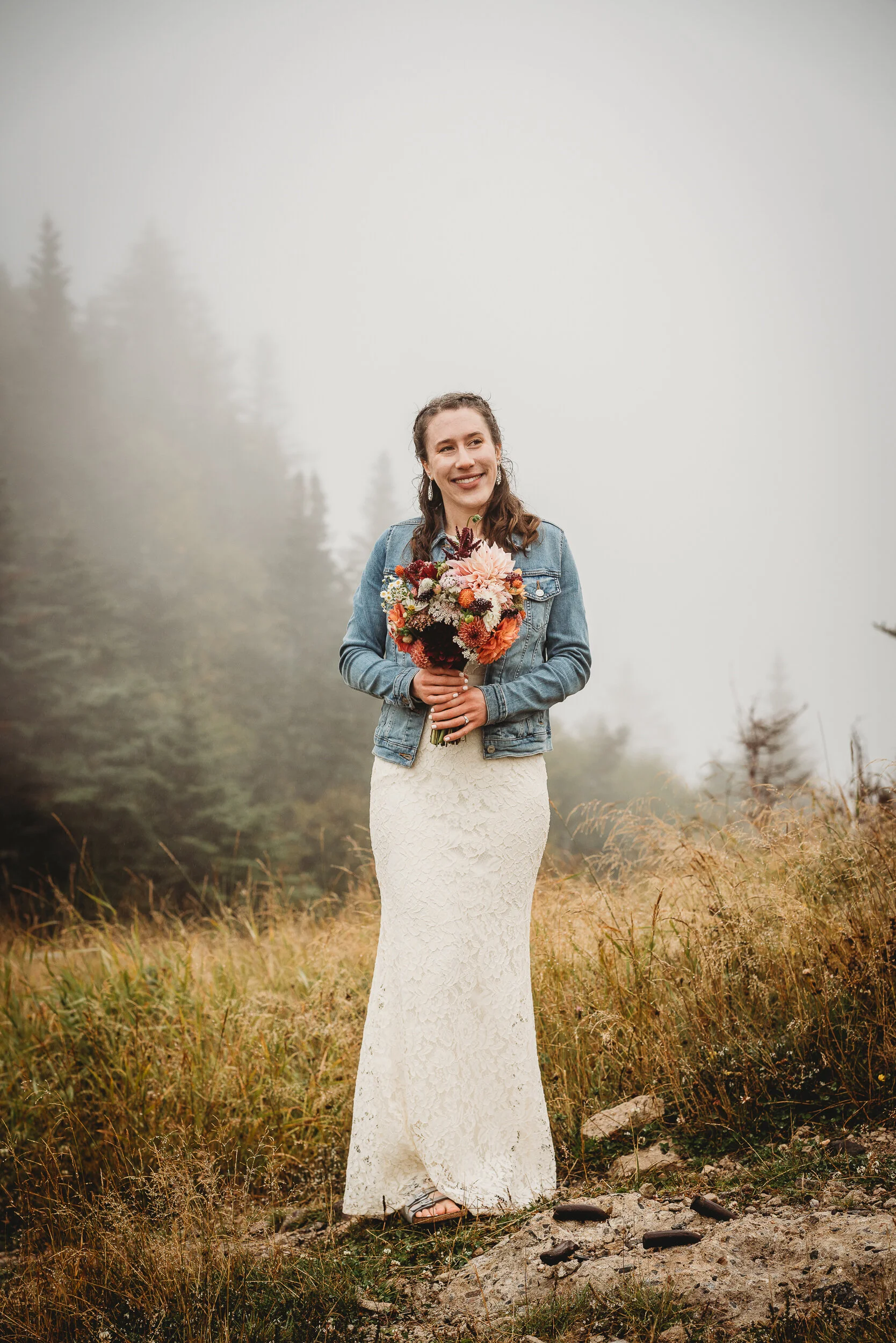 Britta and Brian were married on Saturday September 14, 2019 on the tippity-top of a incredibly foggy, wind-swept Wildcat Mountain in Pinkham Notch, NH which is located in the White Mountain National Forest across from Mount Washington. Despite inclement (and sometimes turbulent!) weather, their ceremony was absolutely epic, and a veritable Ulyssian adventure for all in attendance. Guests journeyed to the top of the mountain via gondolas through heavy winds, donning the readily supplied rain ponchos in anticipation of their ceremony. One had the distinct feeling that we were all in this together, witnessing something unique and memorable, knowing full well that we would all be left better for having experienced it. It was that kind of epicness that I struggle to convey with words, so make sure to check out the photos below! Thanks so much for allowing me to capture these memories for you Britta & Brian!