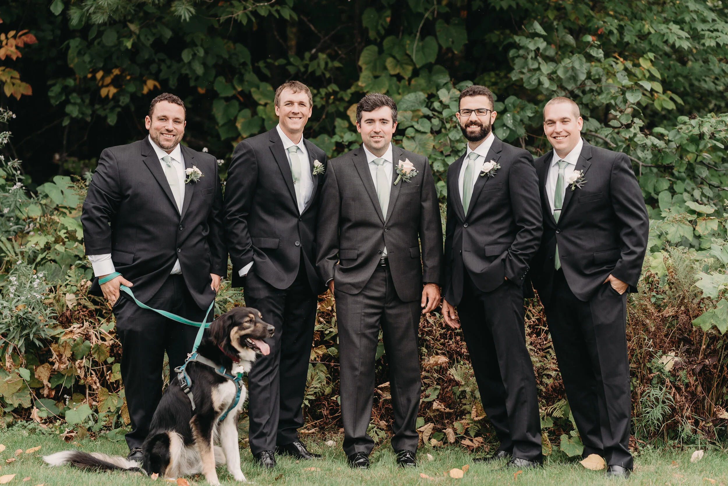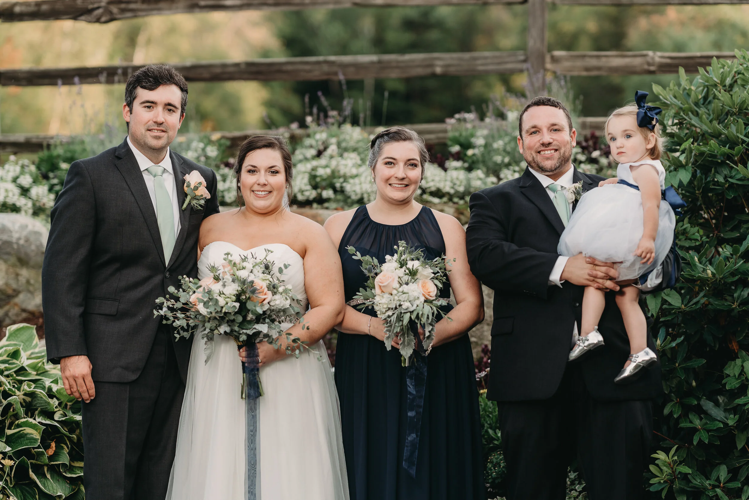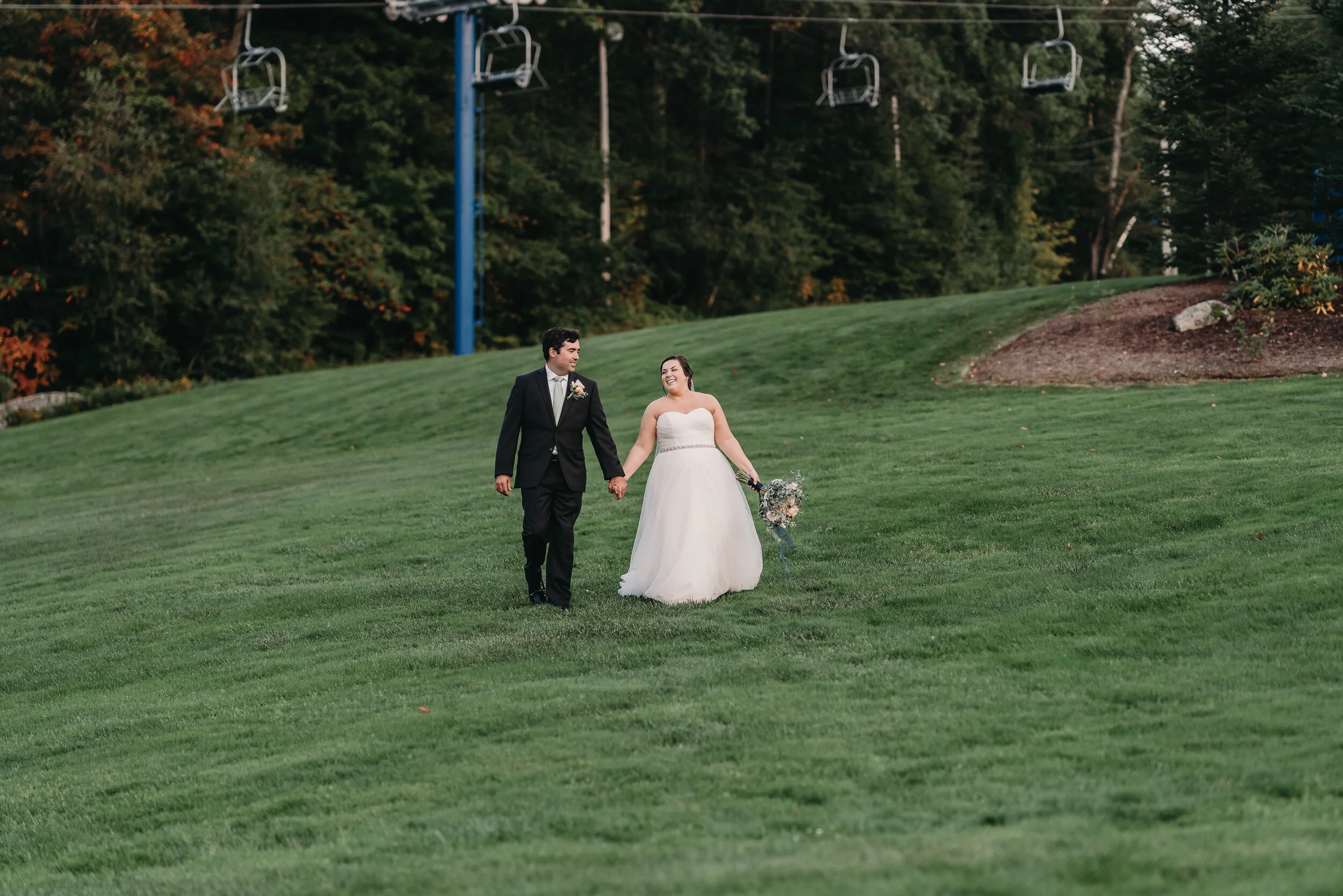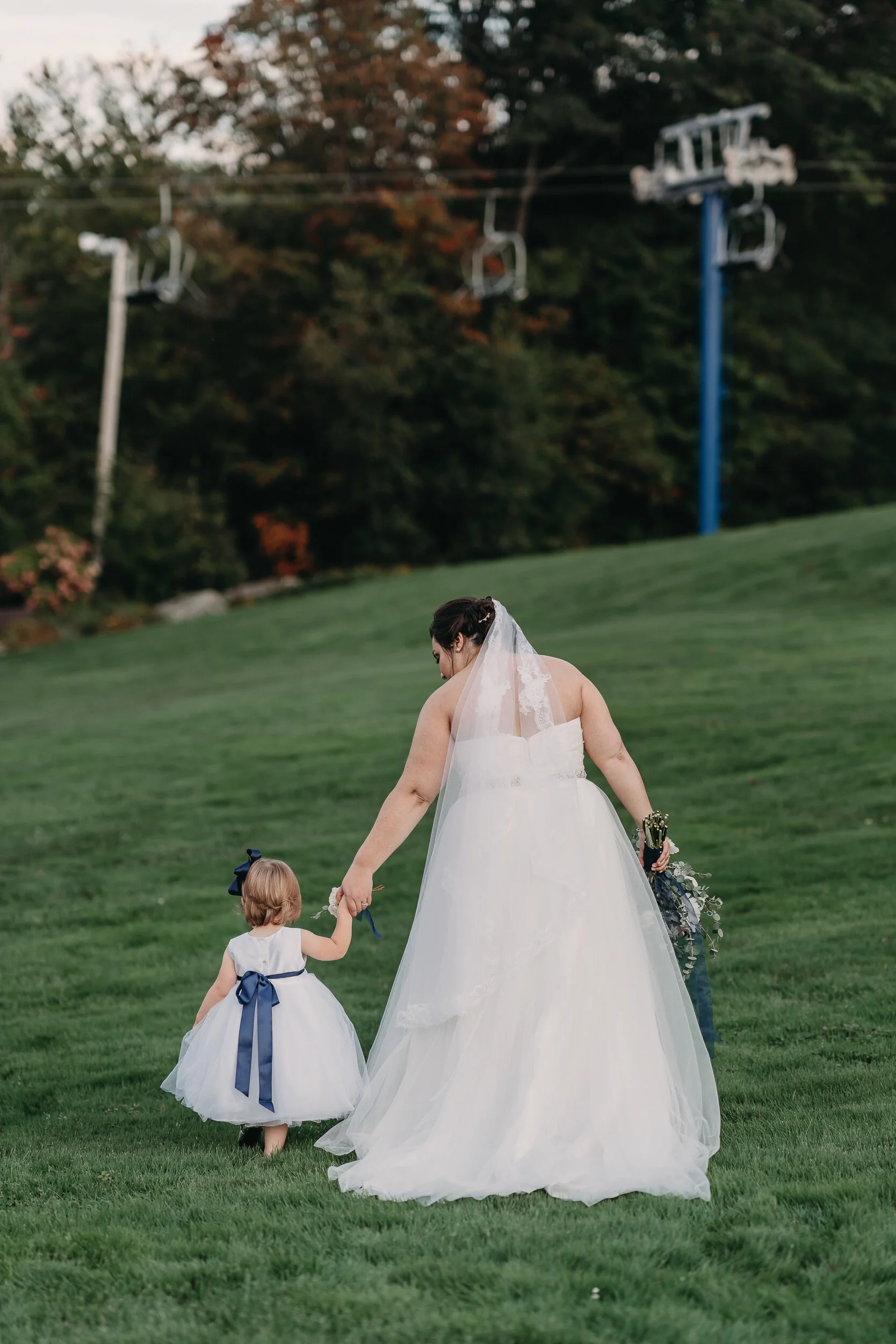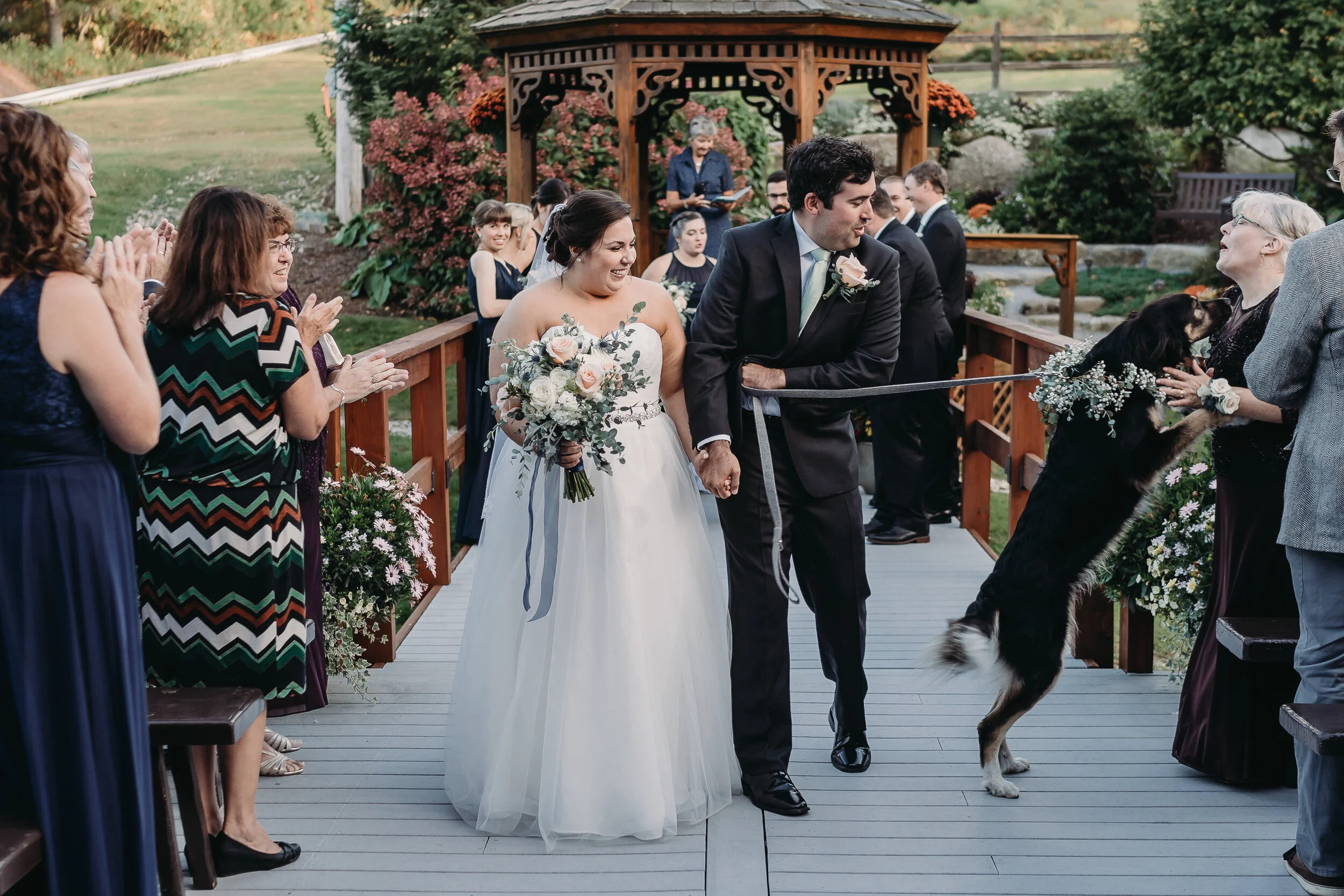 Fast forward a few years to the Summer of 2018 when I met Katherine & Matt while shooting the wedding of their good friends, Katie and Craig at Waterville Valley. I was so happy when they reached out asking me to shoot their engagement session and their fall wedding on Saturday September 28, 2019 at Pat’s Peak in beautiful Henniker, NH. Their wedding was marked by peak fall foliage, crisp autumn air, and an abundance of green with the ski mountain looming in the background. Katherine and Matt had a really fun wedding party comprised of family and friends, and included their dog Luna (who served as “Flower Dog”!), and Katherine’s 21 month-old niece Isabelle, as Flower Girl.