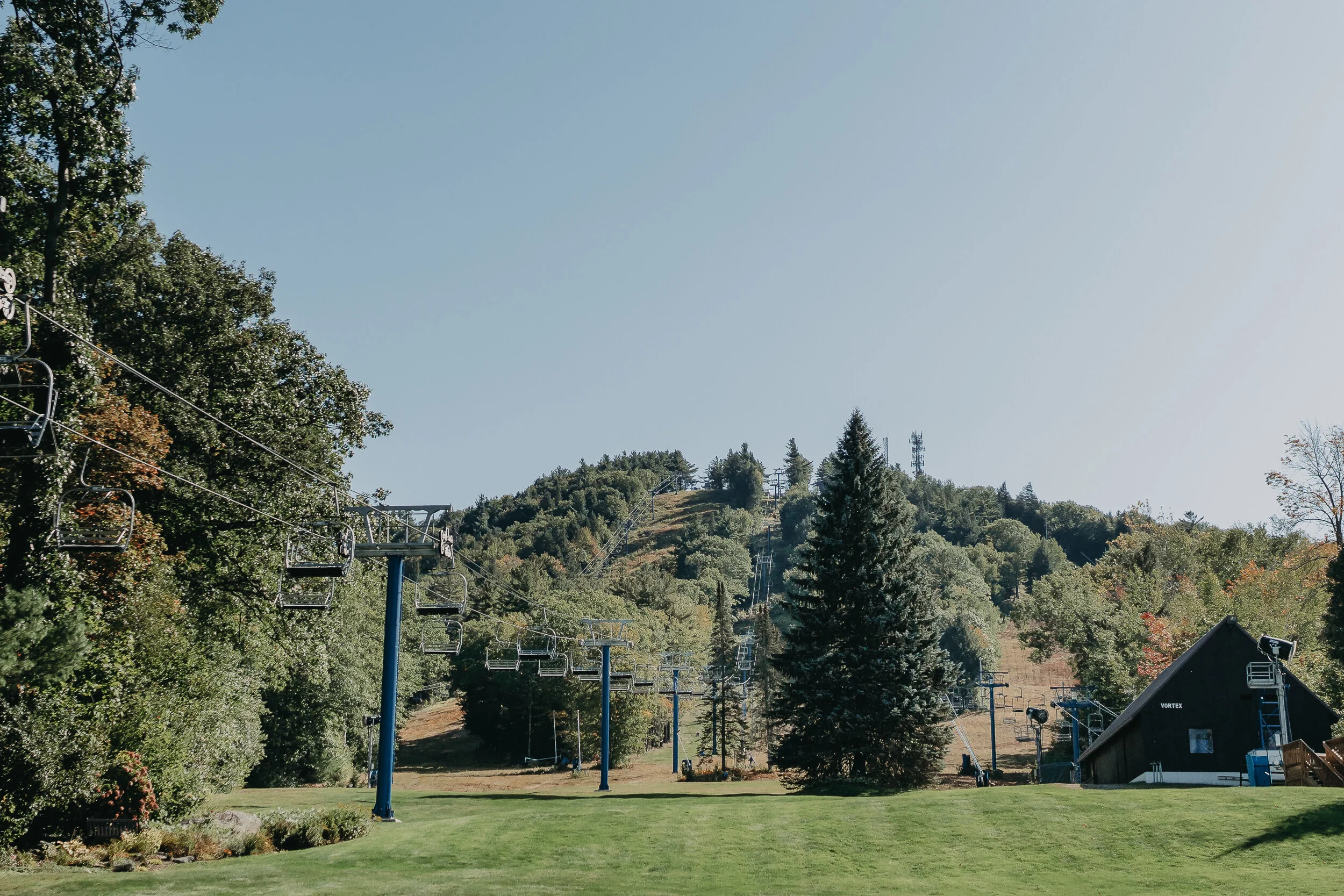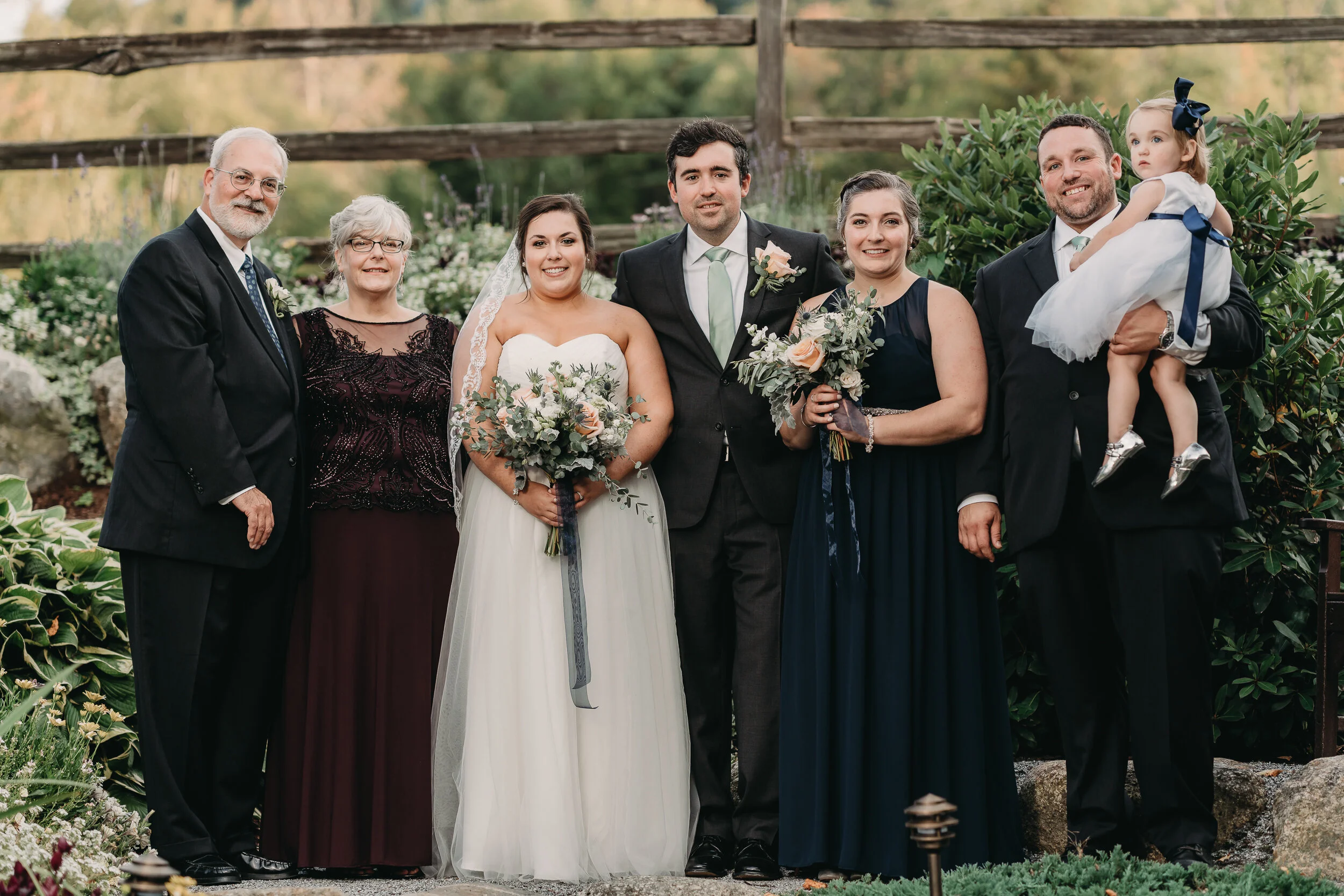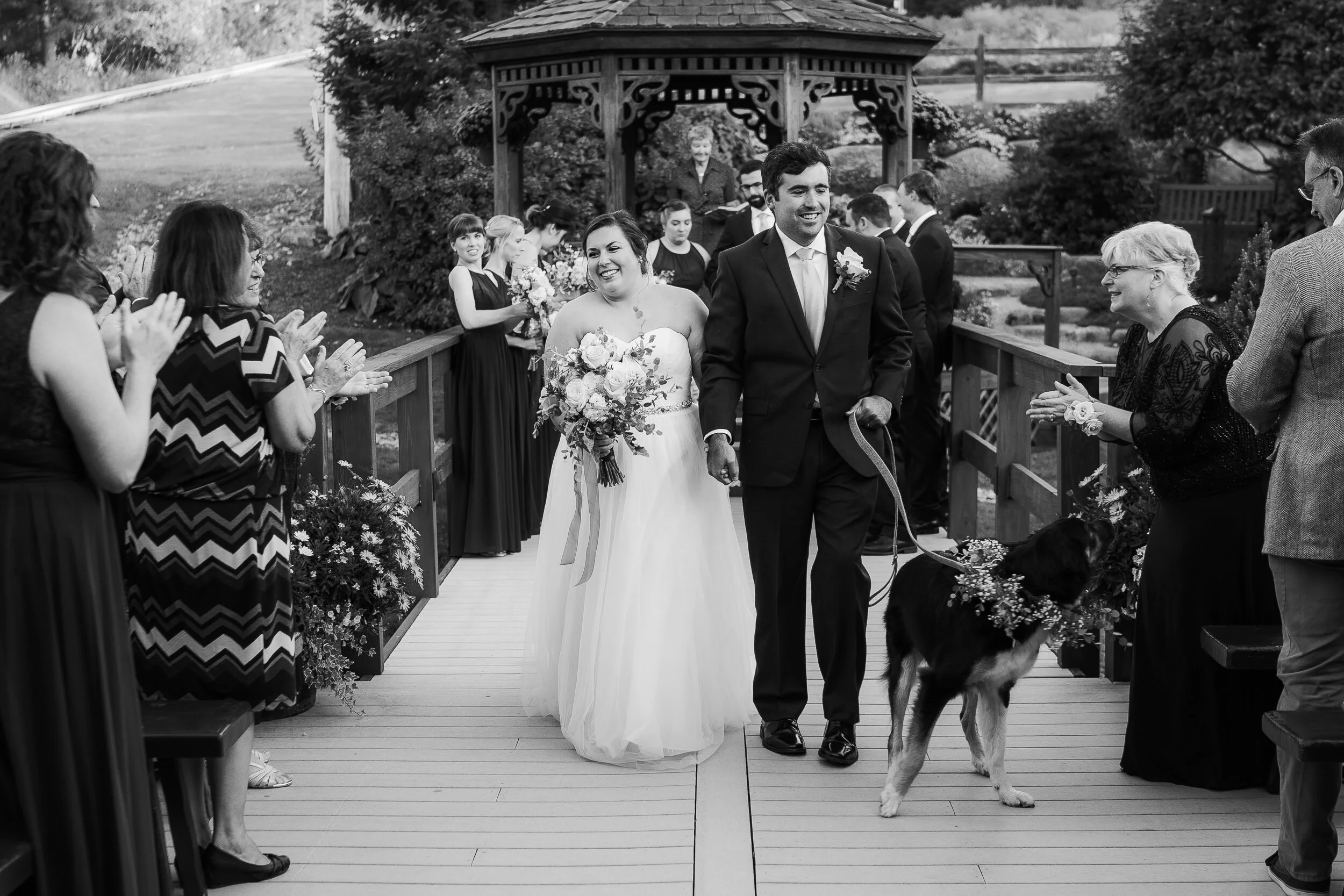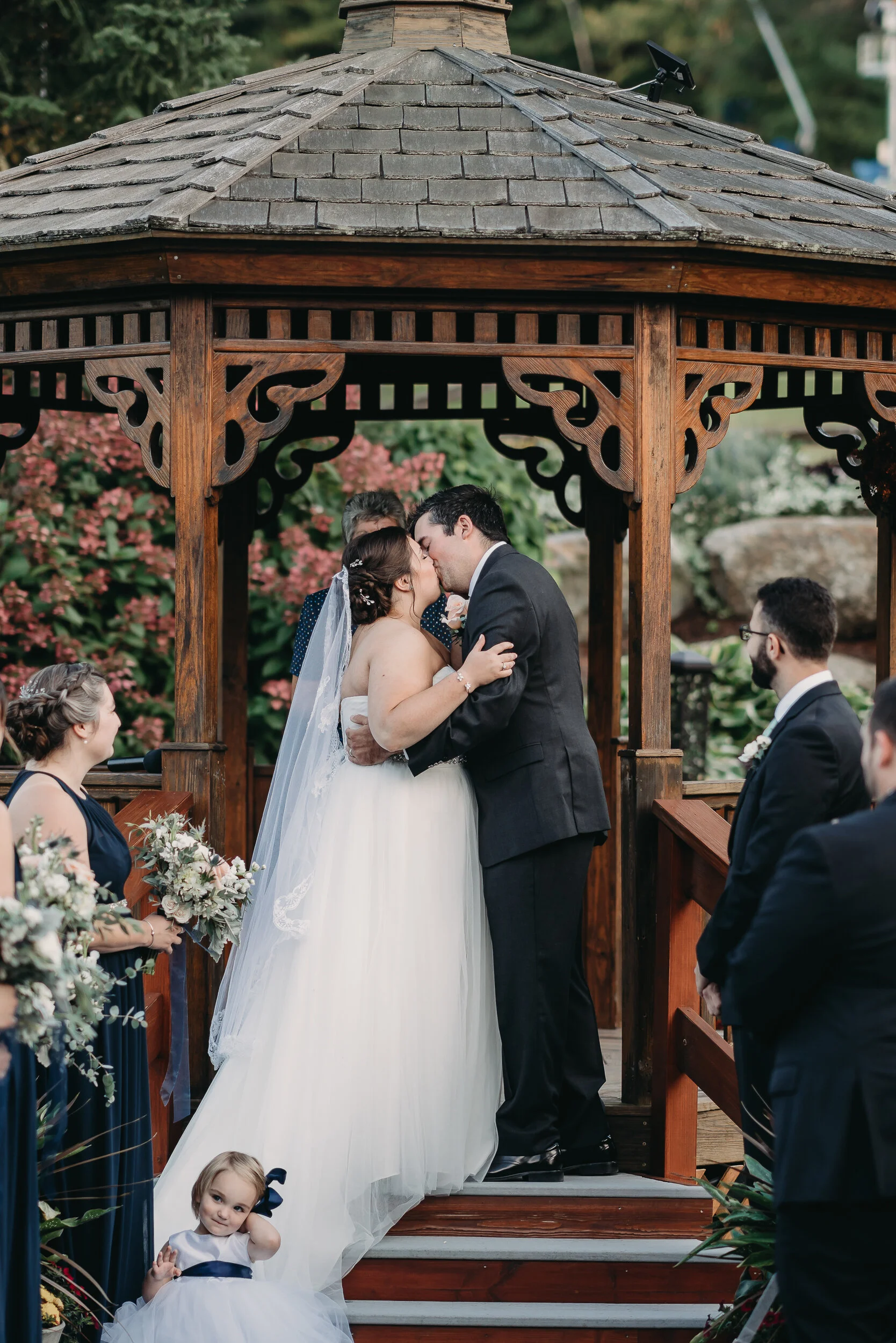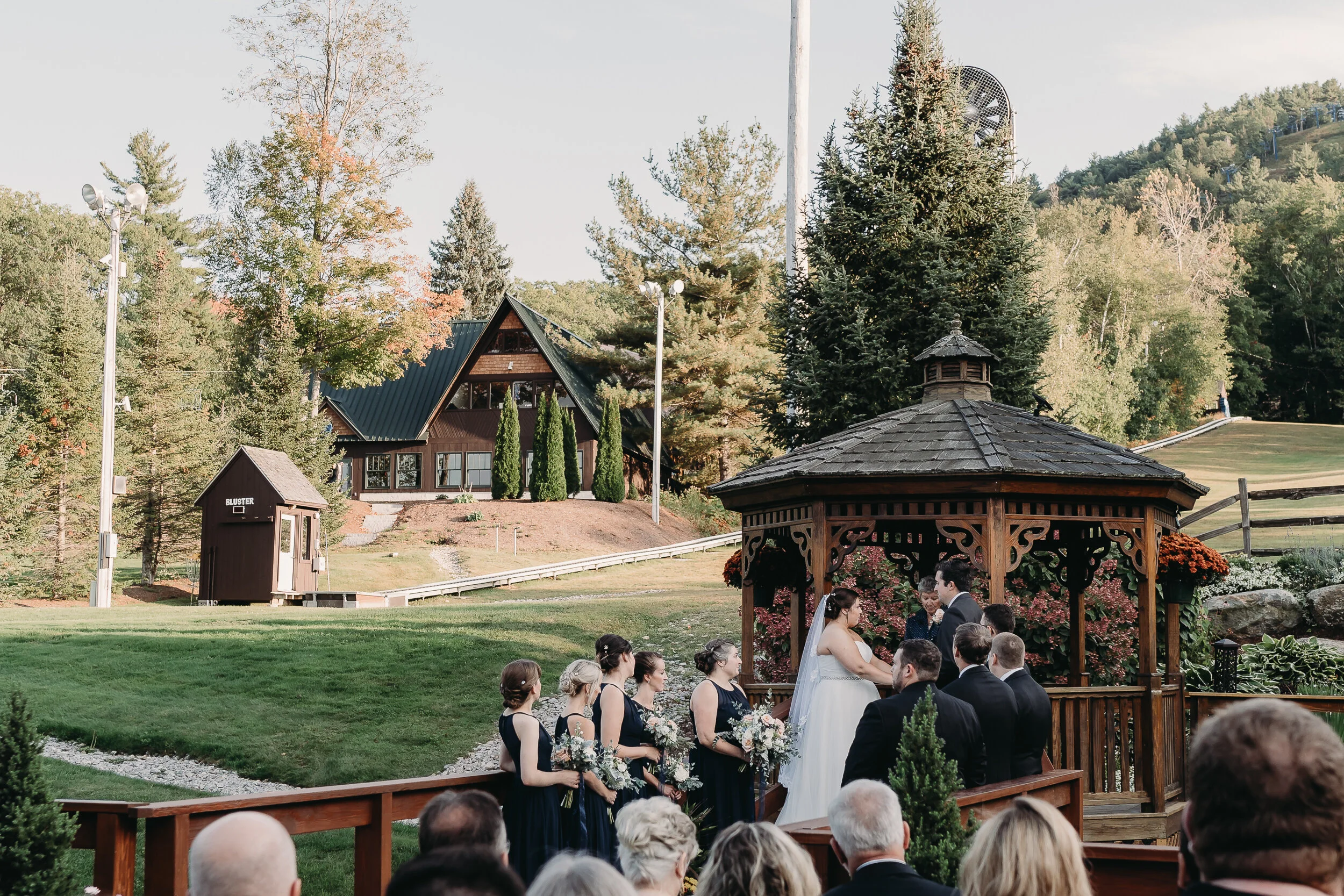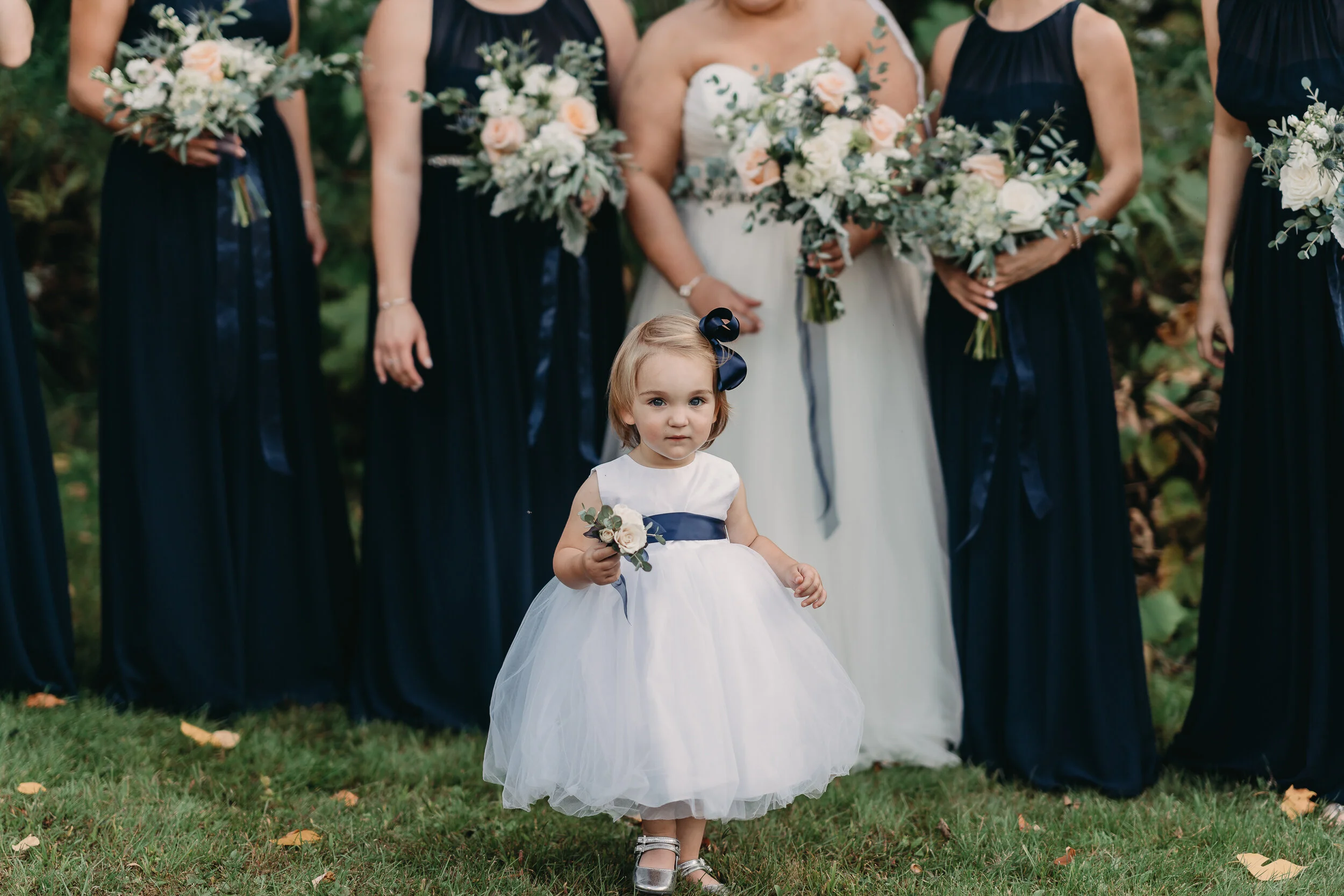 Fast forward a few years to the Summer of 2018 when I met Katherine & Matt while shooting the wedding of their good friends, Katie and Craig at Waterville Valley. I was so happy when they reached out asking me to shoot their engagement session and their fall wedding on Saturday September 28, 2019 at Pat’s Peak in beautiful Henniker, NH. Their wedding was marked by peak fall foliage, crisp autumn air, and an abundance of green with the ski mountain looming in the background. Katherine and Matt had a really fun wedding party comprised of family and friends, and included their dog Luna (who served as “Flower Dog”!), and Katherine’s 21 month-old niece Isabelle, as Flower Girl.