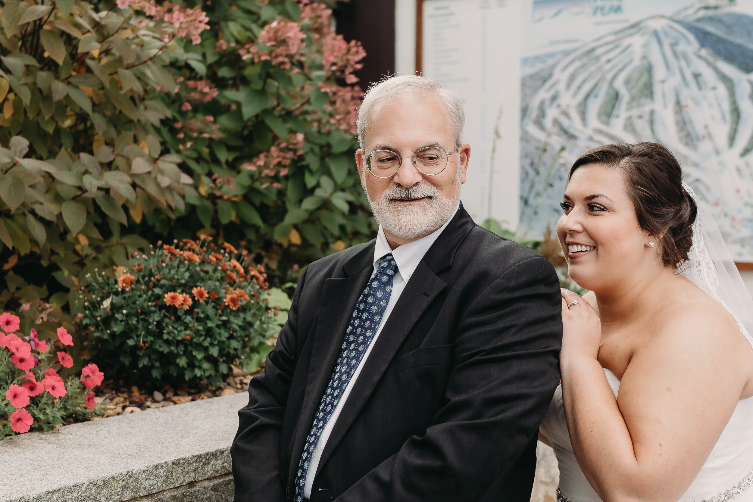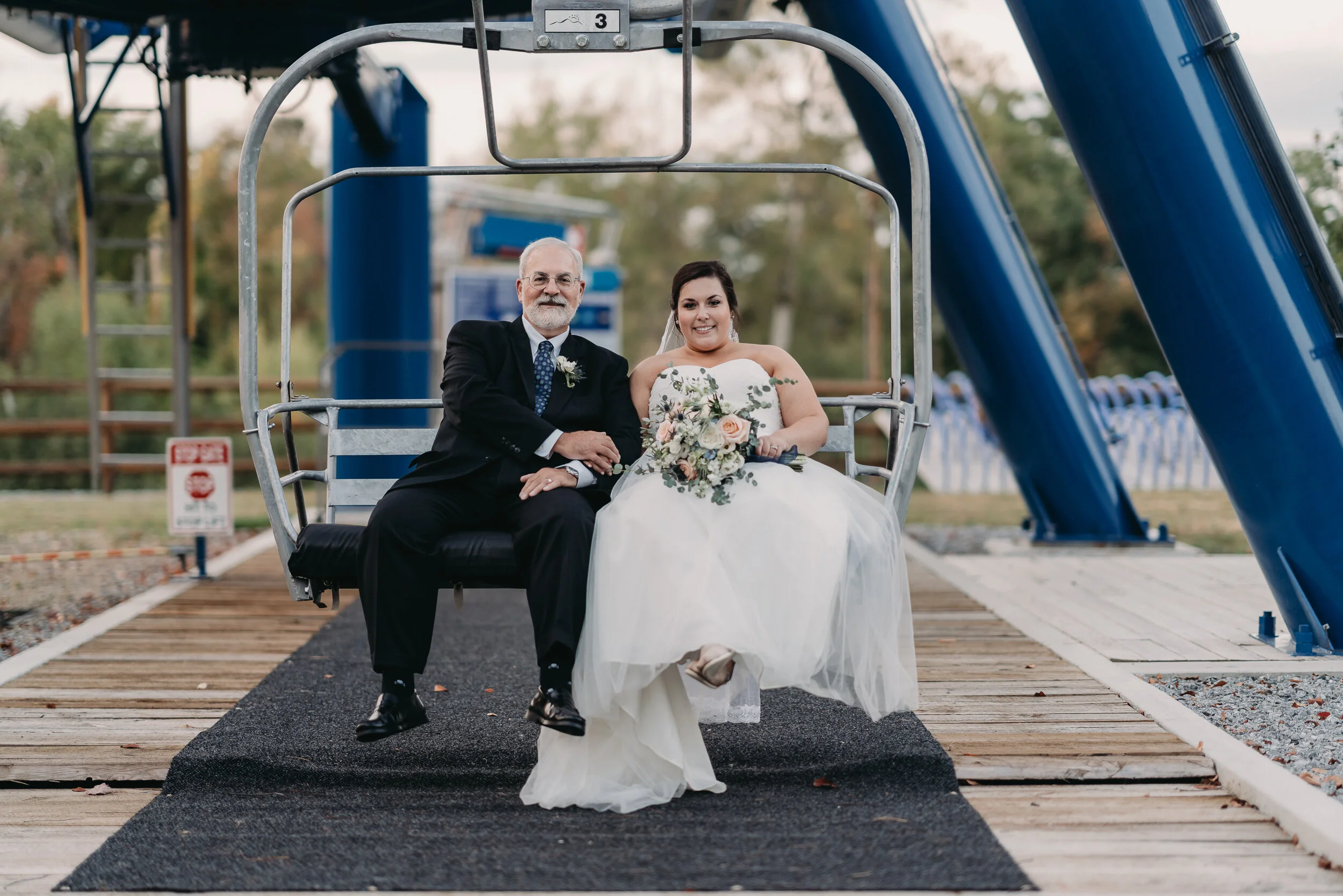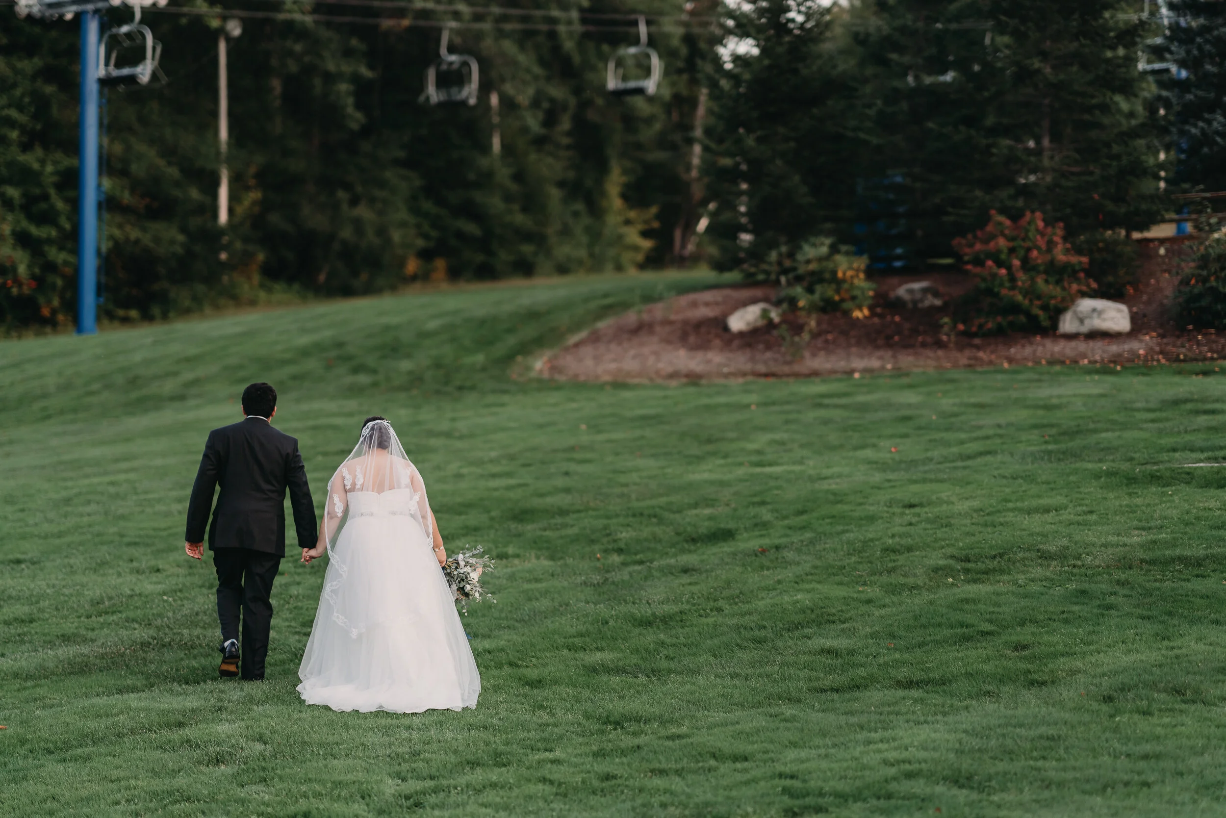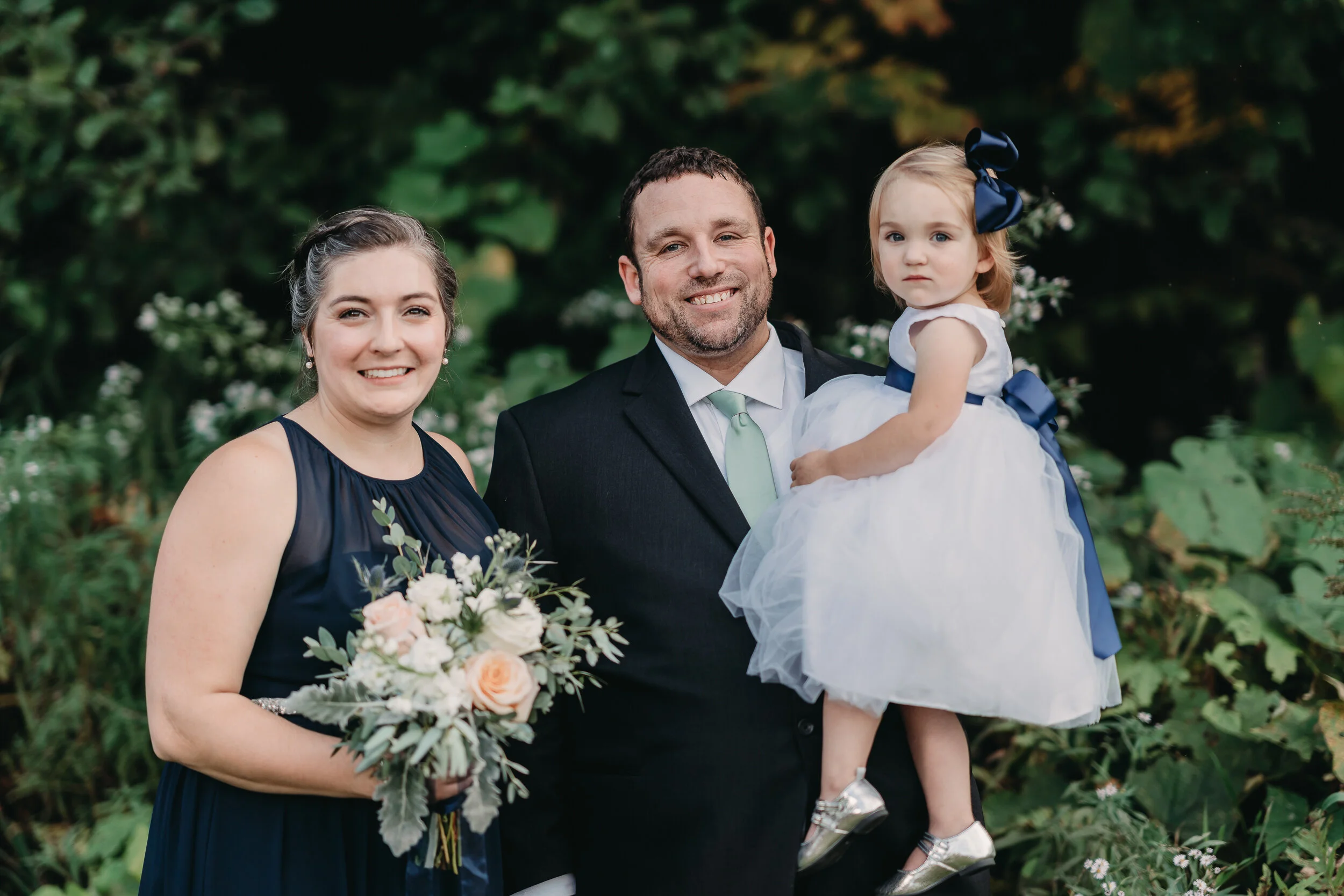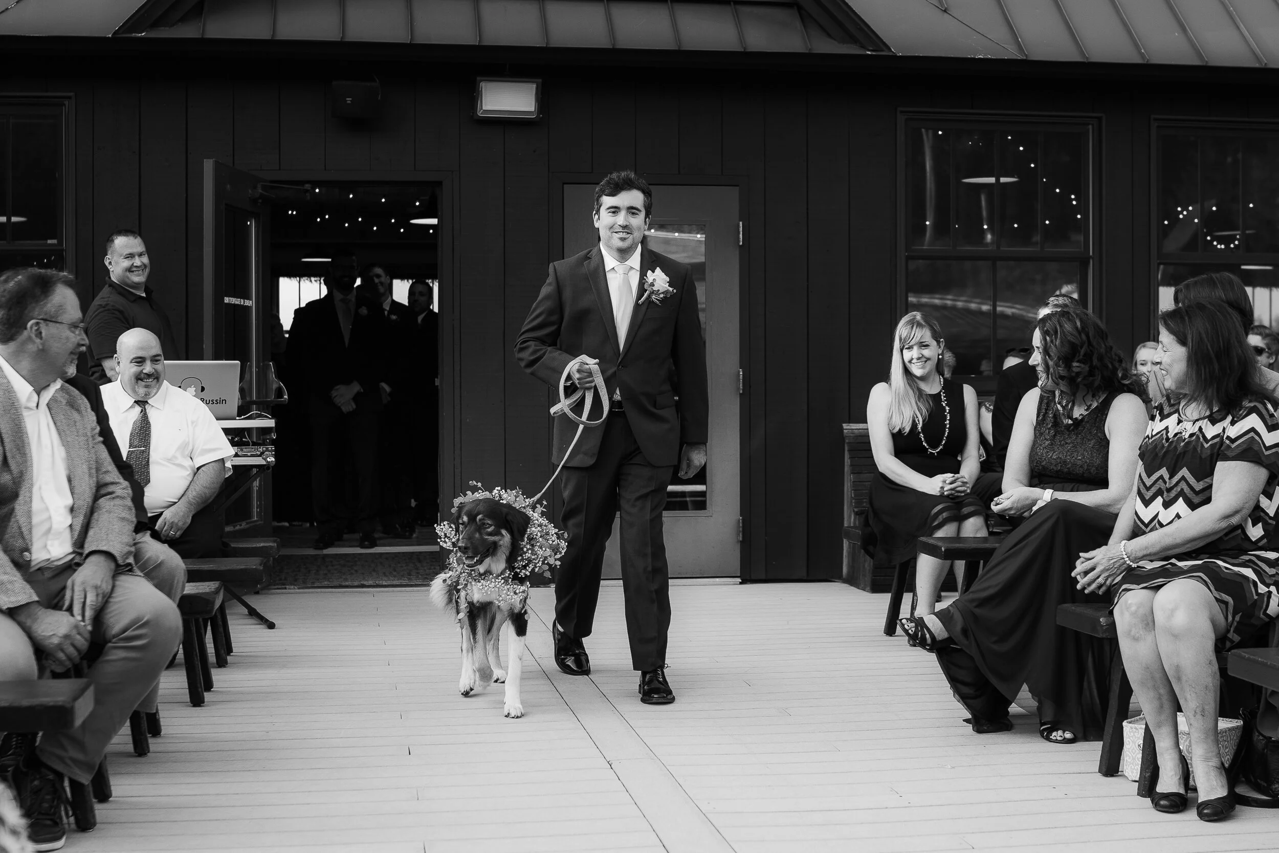 Fast forward a few years to the Summer of 2018 when I met Katherine & Matt while shooting the wedding of their good friends, Katie and Craig at Waterville Valley. I was so happy when they reached out asking me to shoot their engagement session and their fall wedding on Saturday September 28, 2019 at Pat’s Peak in beautiful Henniker, NH. Their wedding was marked by peak fall foliage, crisp autumn air, and an abundance of green with the ski mountain looming in the background. Katherine and Matt had a really fun wedding party comprised of family and friends, and included their dog Luna (who served as “Flower Dog”!), and Katherine’s 21 month-old niece Isabelle, as Flower Girl.