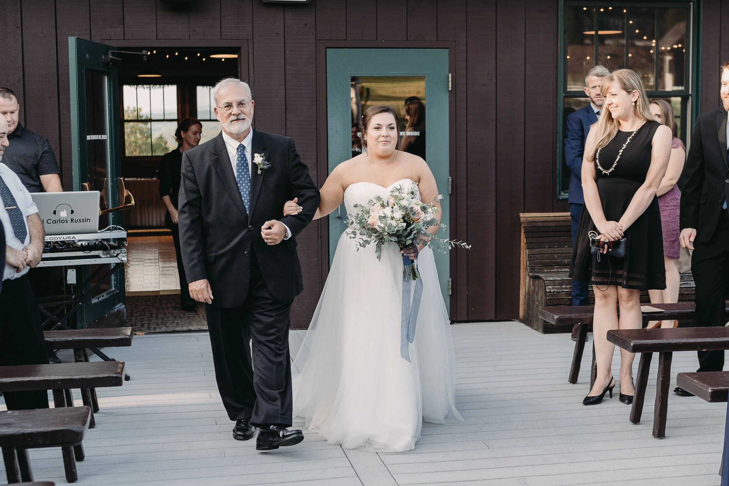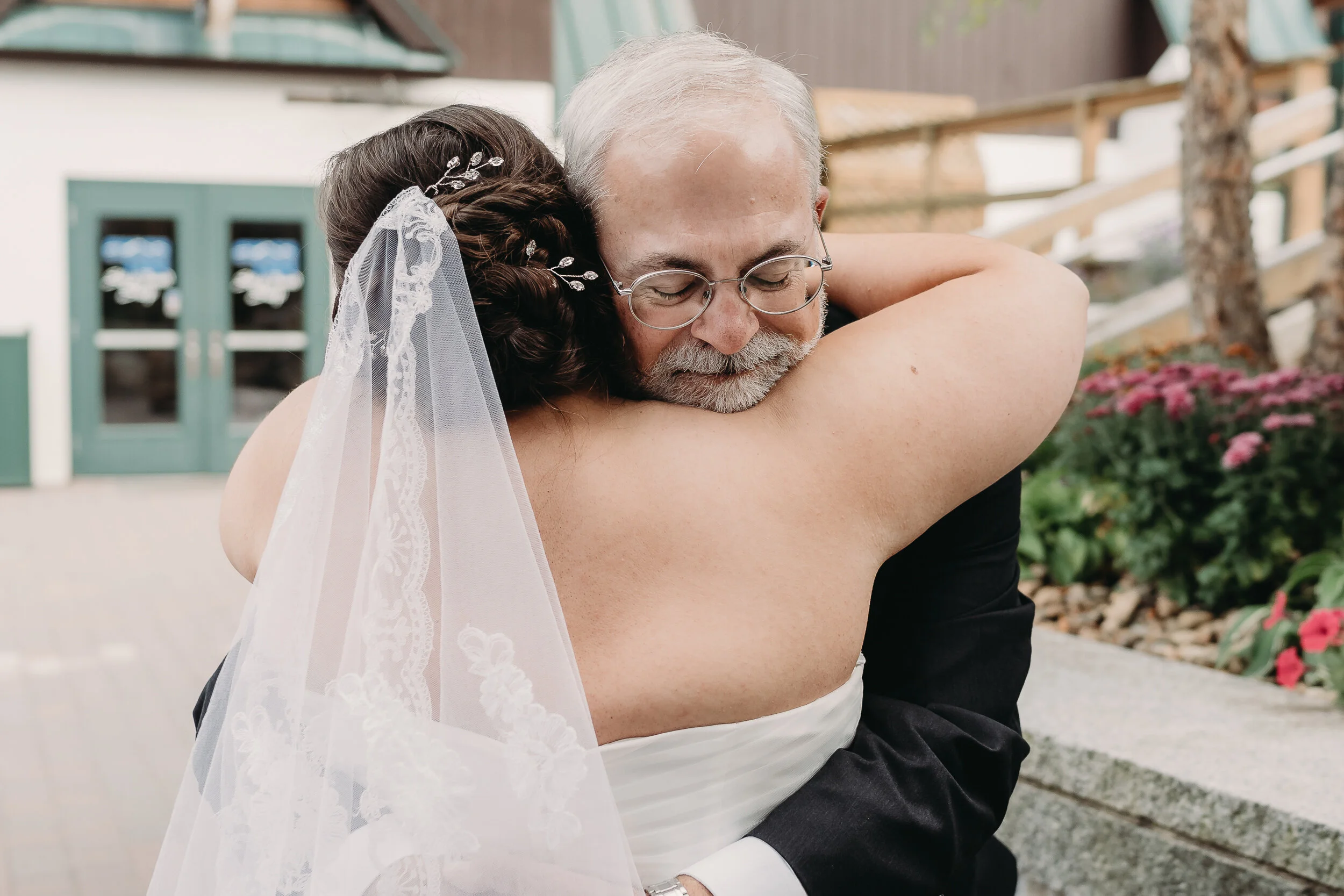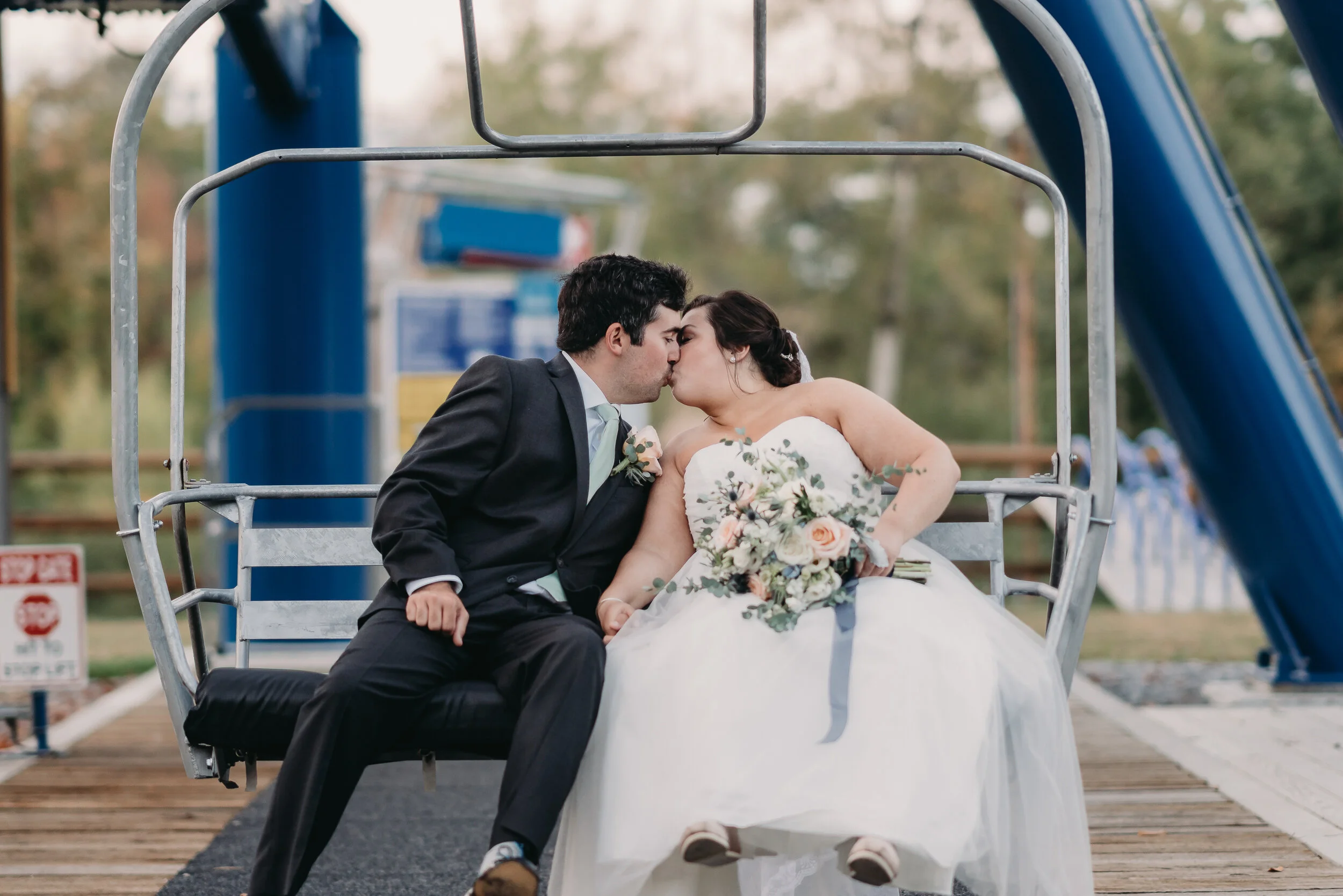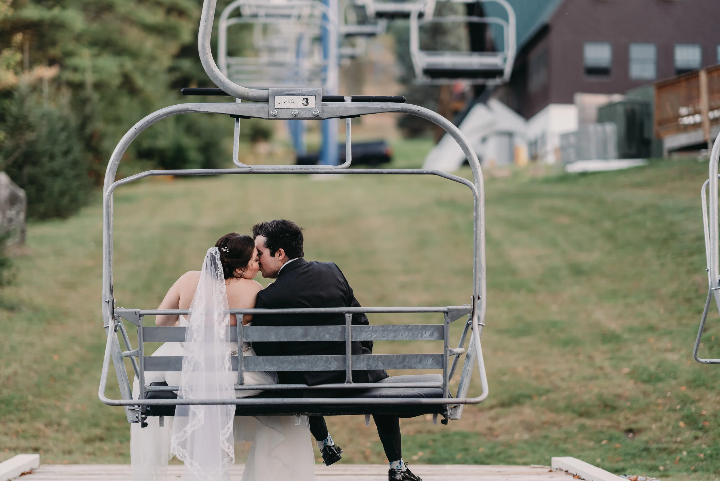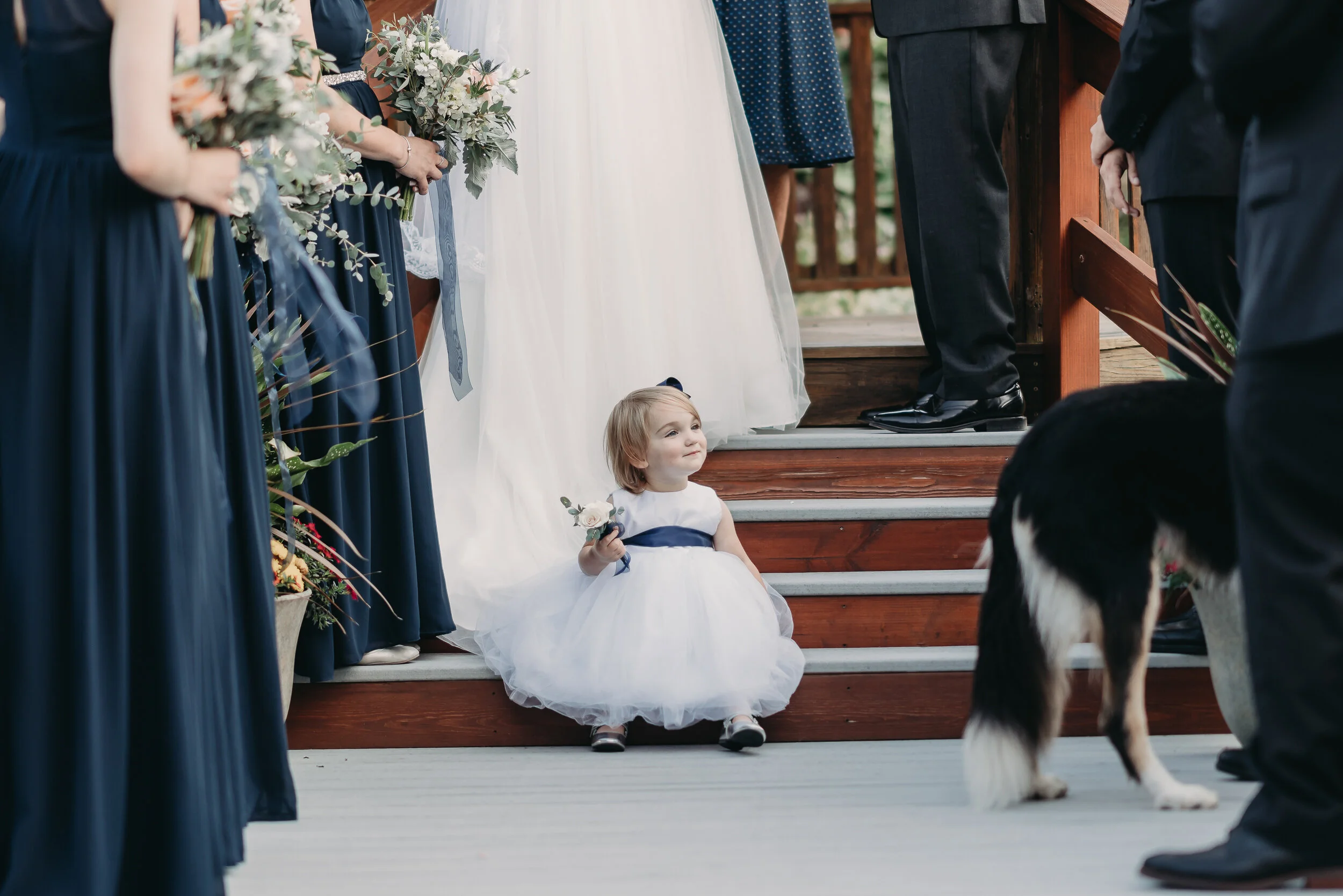 Fast forward a few years to the Summer of 2018 when I met Katherine & Matt while shooting the wedding of their good friends, Katie and Craig at Waterville Valley. I was so happy when they reached out asking me to shoot their engagement session and their fall wedding on Saturday September 28, 2019 at Pat’s Peak in beautiful Henniker, NH. Their wedding was marked by peak fall foliage, crisp autumn air, and an abundance of green with the ski mountain looming in the background. Katherine and Matt had a really fun wedding party comprised of family and friends, and included their dog Luna (who served as “Flower Dog”!), and Katherine’s 21 month-old niece Isabelle, as Flower Girl.