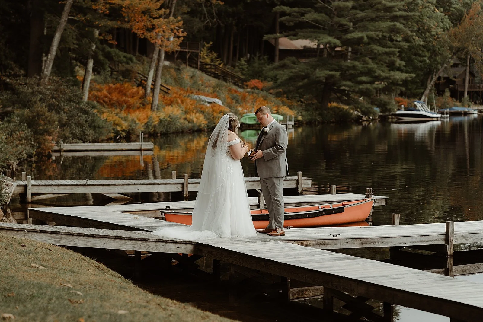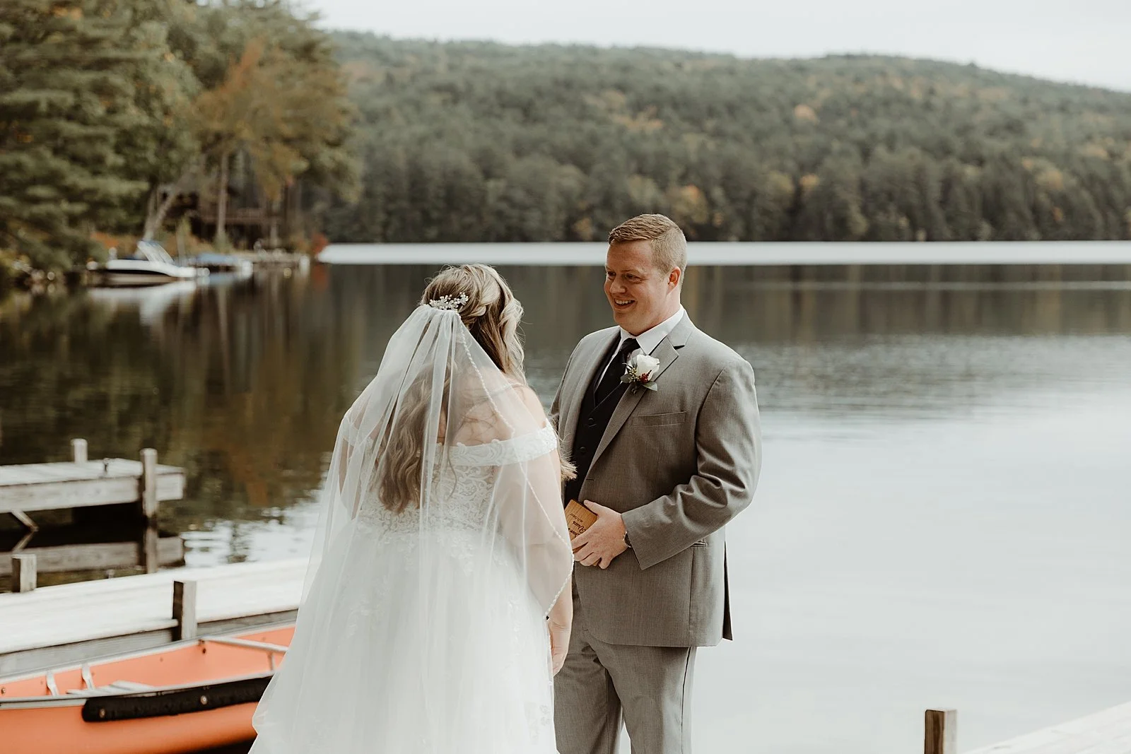 Kaitlyn and Dave shared a beautiful wedding celebration at the Lake Shore Village Resort in Weare, New Hampshire. I was so honored that they chose me to capture their special day! The two met on Match.com and had their first date at The Foundry in Manchester. The rest is history. Fast forward a few years and Dave popped the question to Kaitlyn on a trip to Portland, Maine at Two Lights State Park. They love going out to the range together, baking, and watching movies. Their favorite part of the wedding day was their private first look on the docks by the water, which was so heartwarming. They also shared a private last dance and got to reminisce on the wonderful day they had together. Congratulations Kaitlyn and Dave!