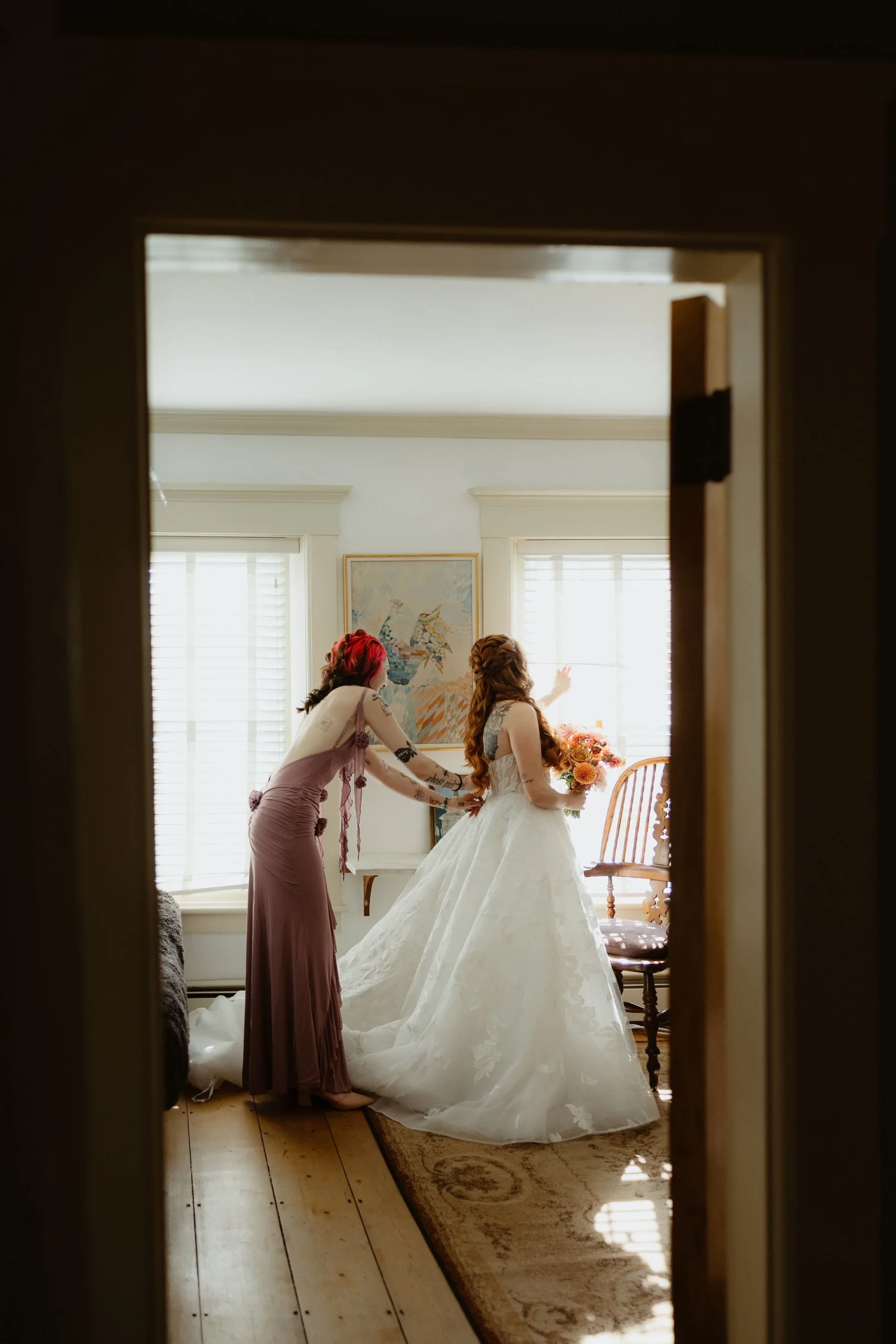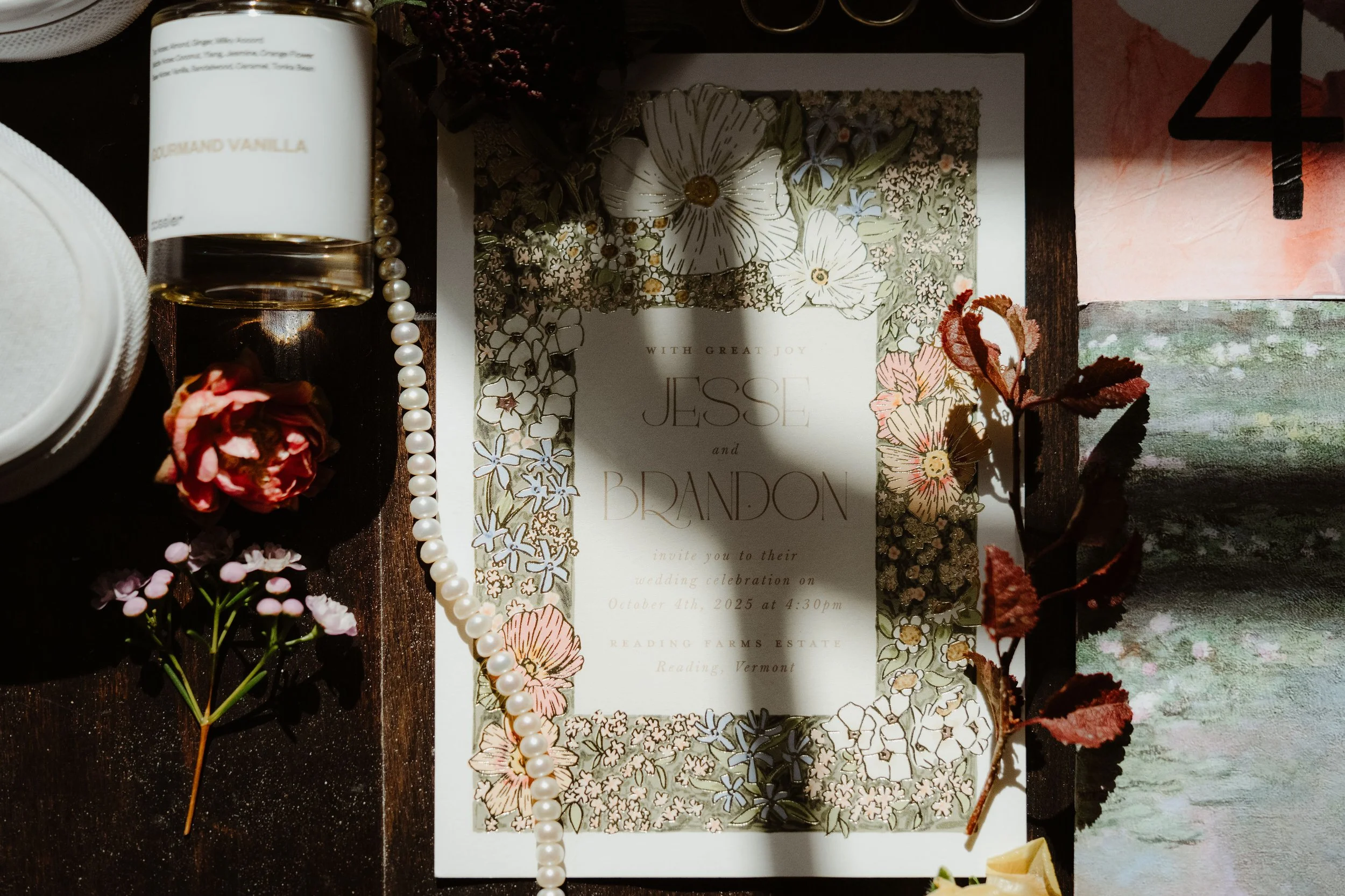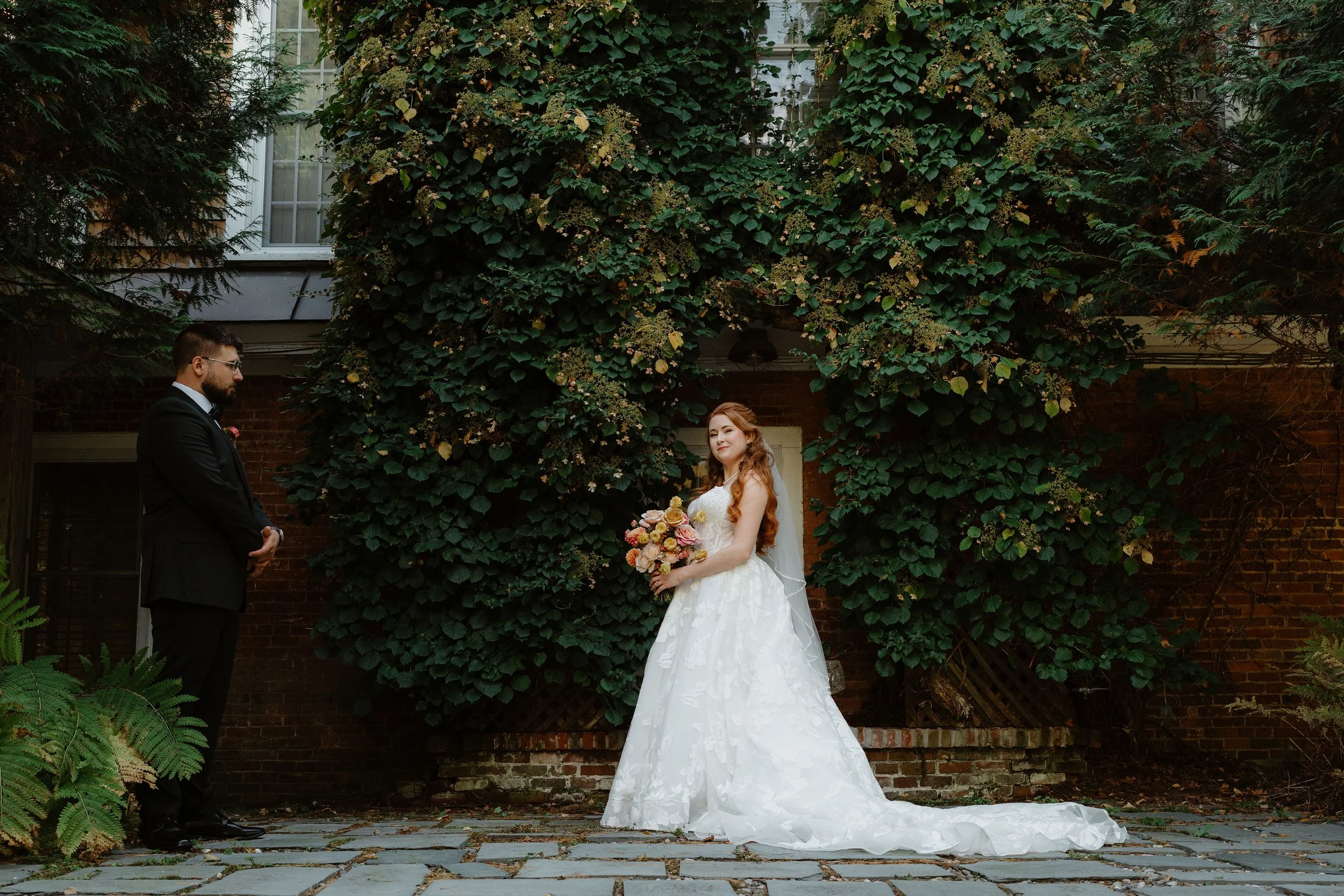 The two got married at Reading Farms Estate in Reading, VT. The venue was so unique, it felt like I stepped into another country. Jesse and Brandon chose Reading Farms Estate because of the atmosphere. “Art plays a huge role in our lives and the inside of the house felt like a gallery and the outside felt like we were in a painting. It was so peaceful.”