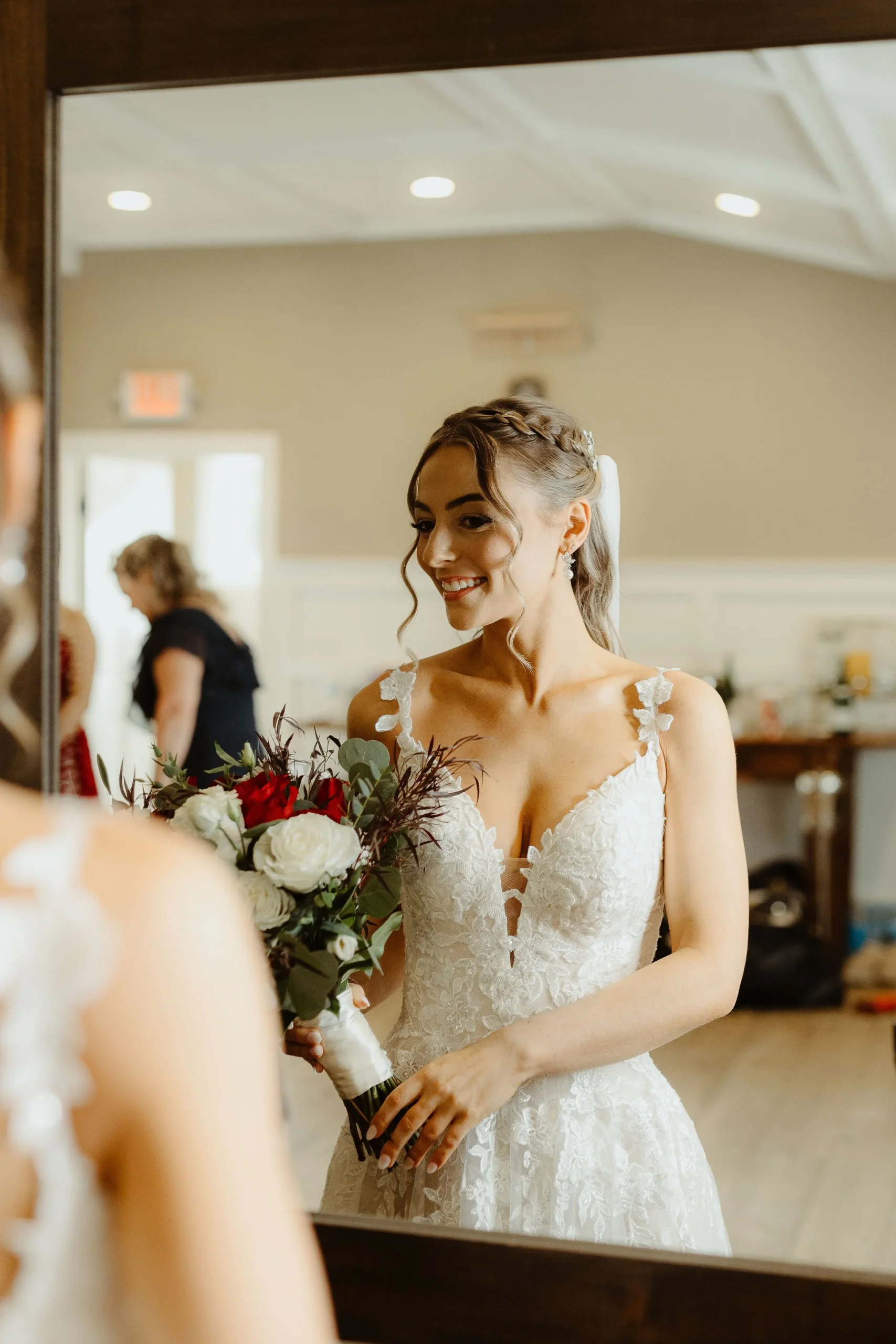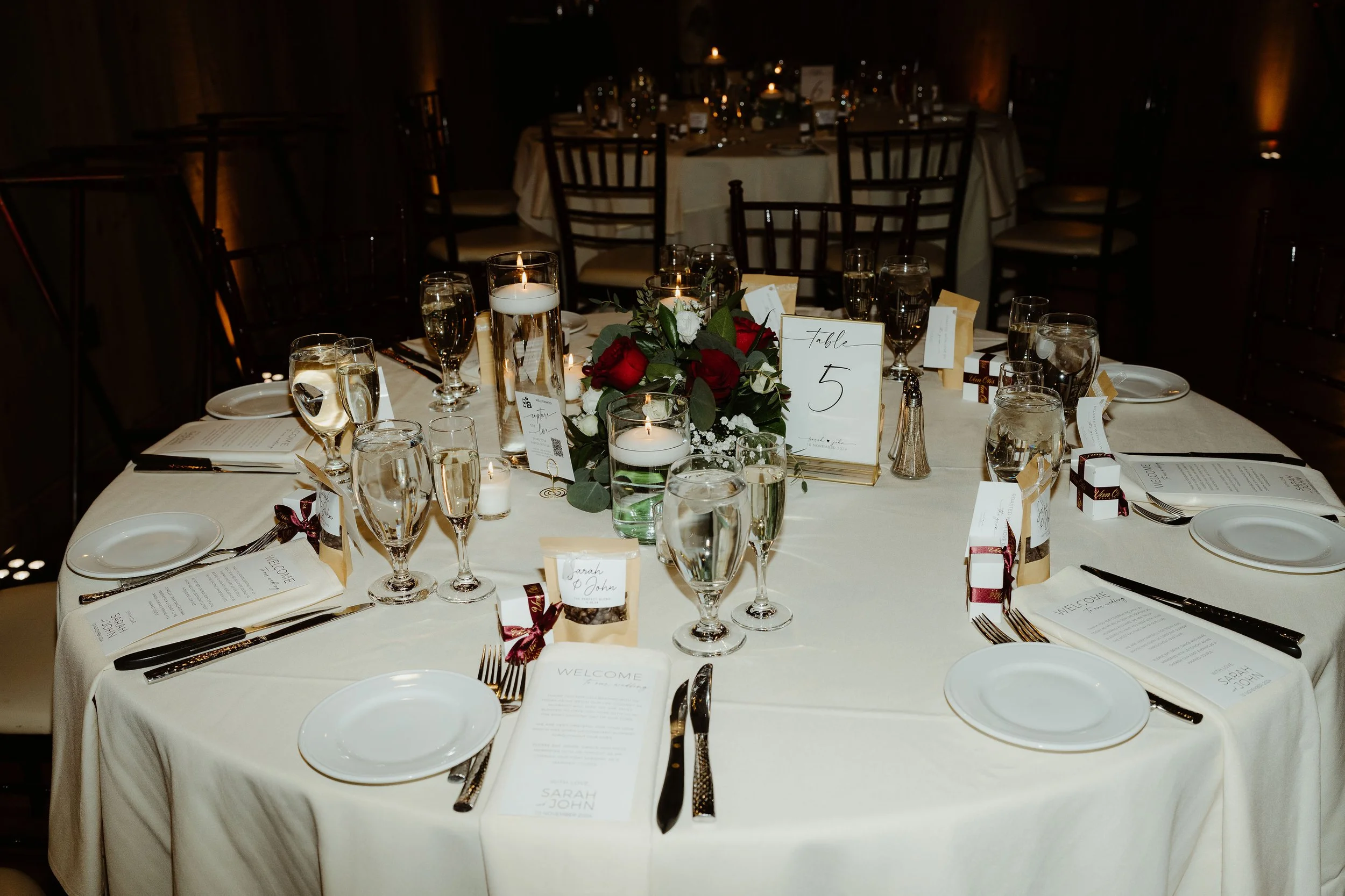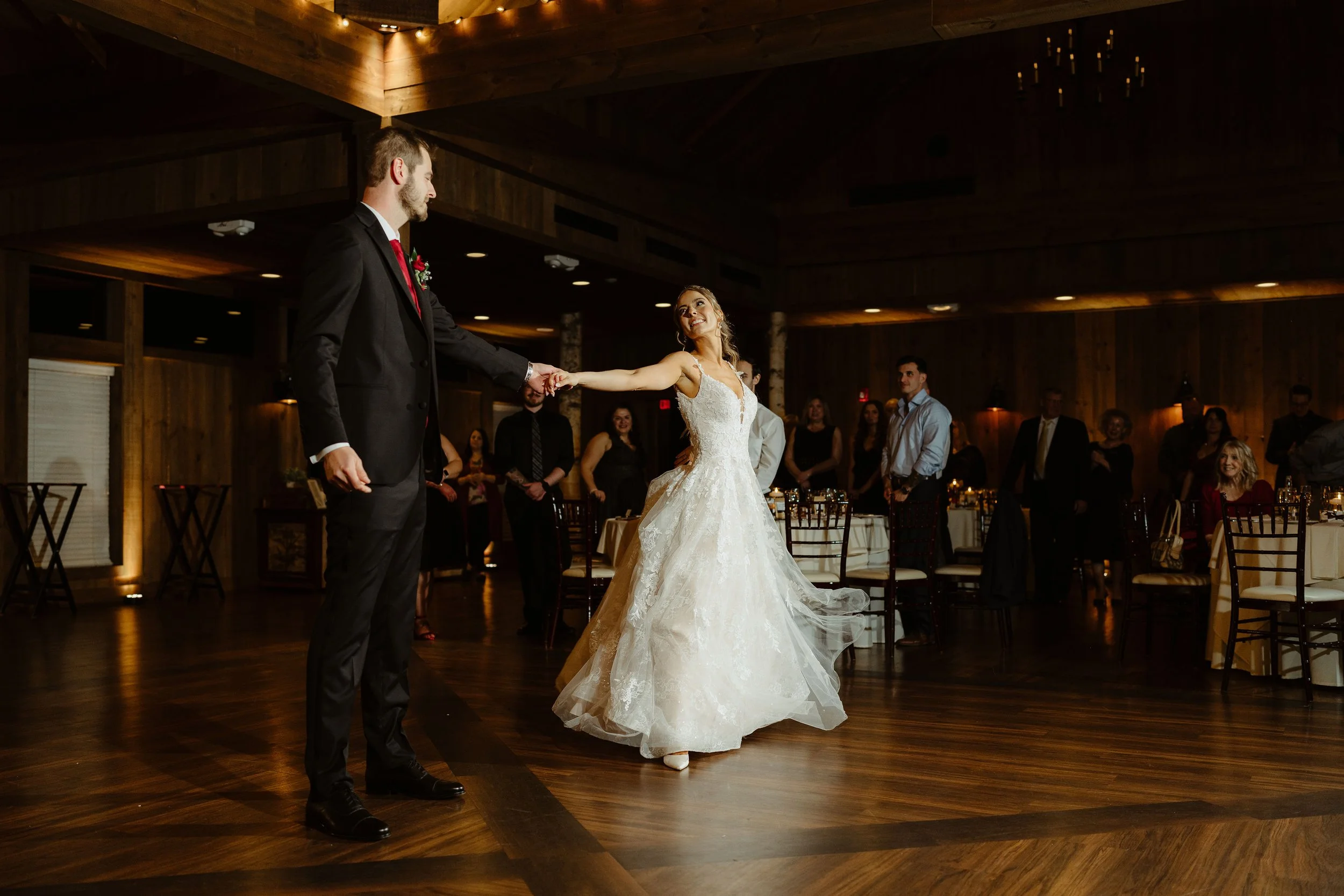 The two met in high school when John was a junior and Sarah was a sophomore, but they didn’t actually start dating until right before John graduated. You could totally feel the immense love the two have for each other! When asked what their favorite memory of their wedding day was, they both agreed the first look was the best part. “We also loved doing our first dance. We spent a lot of time rehearsing, and we had so much fun dancing together.”
