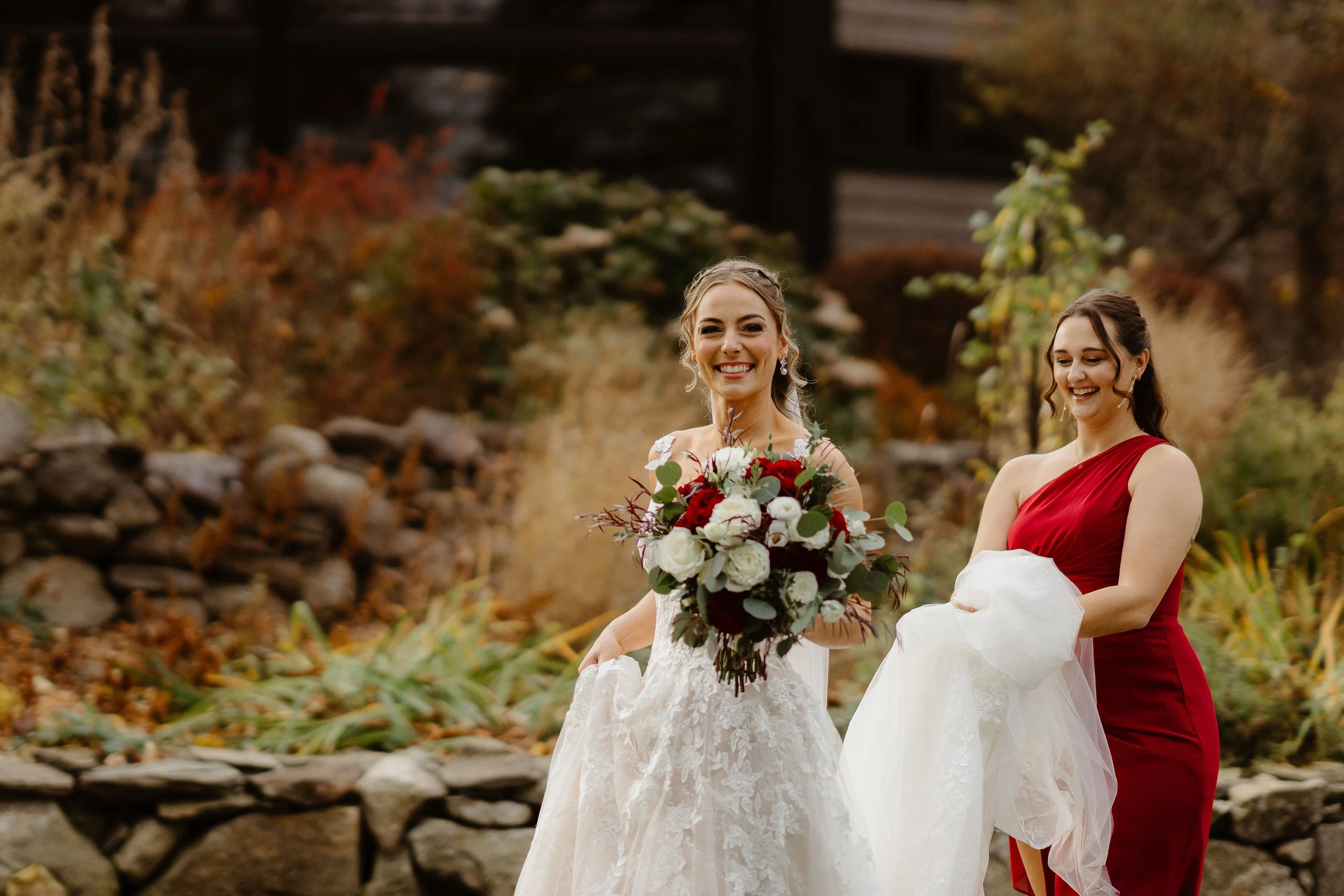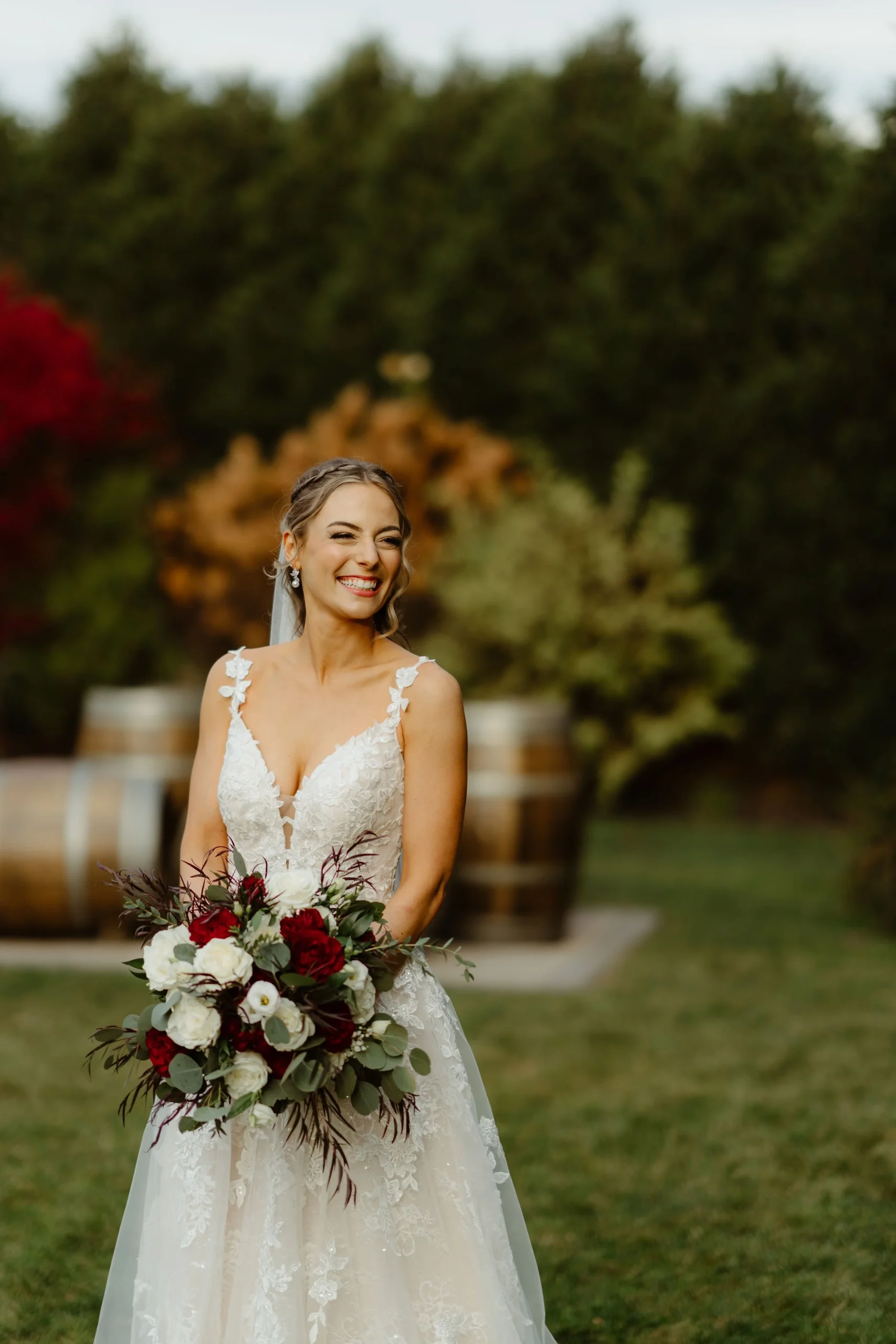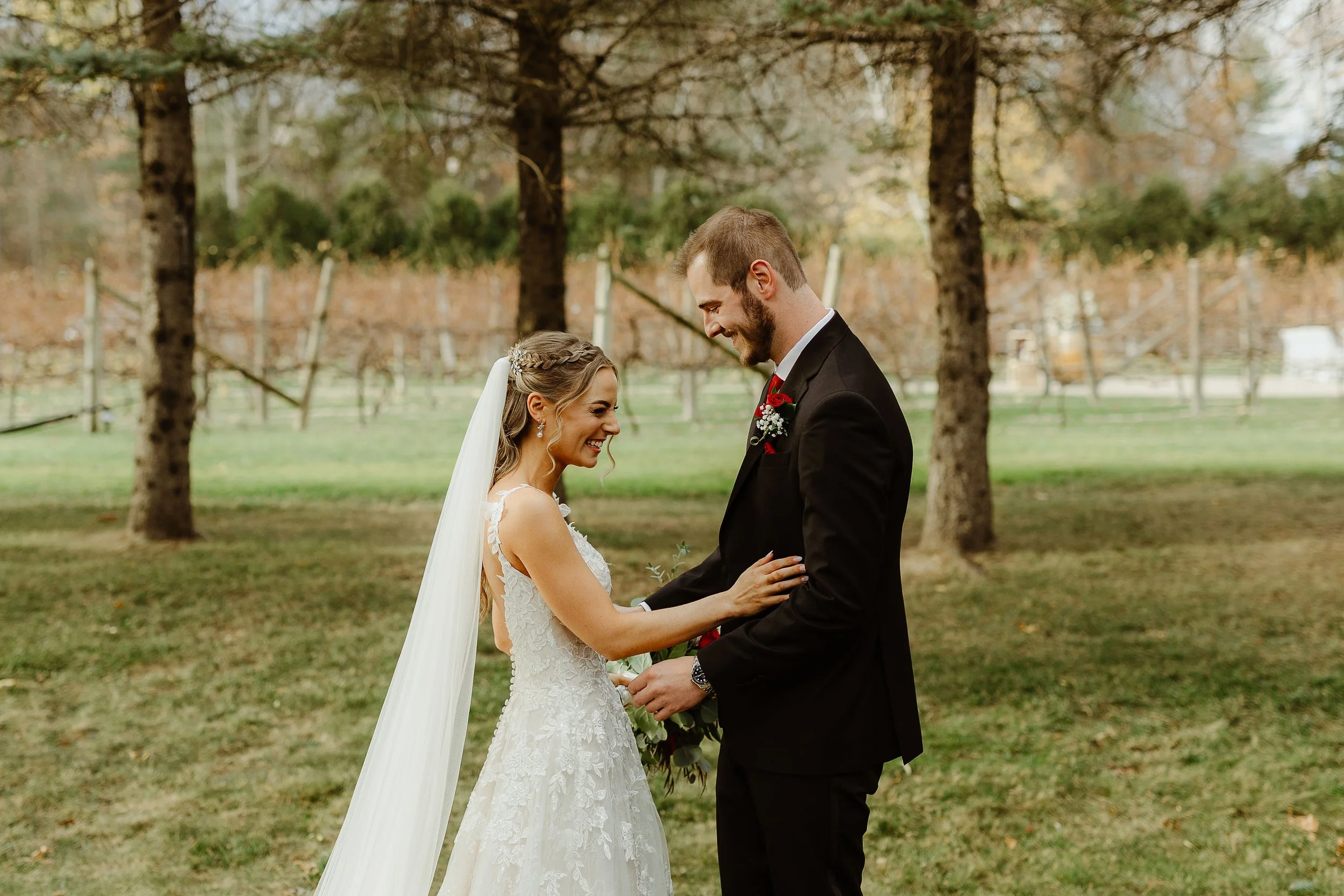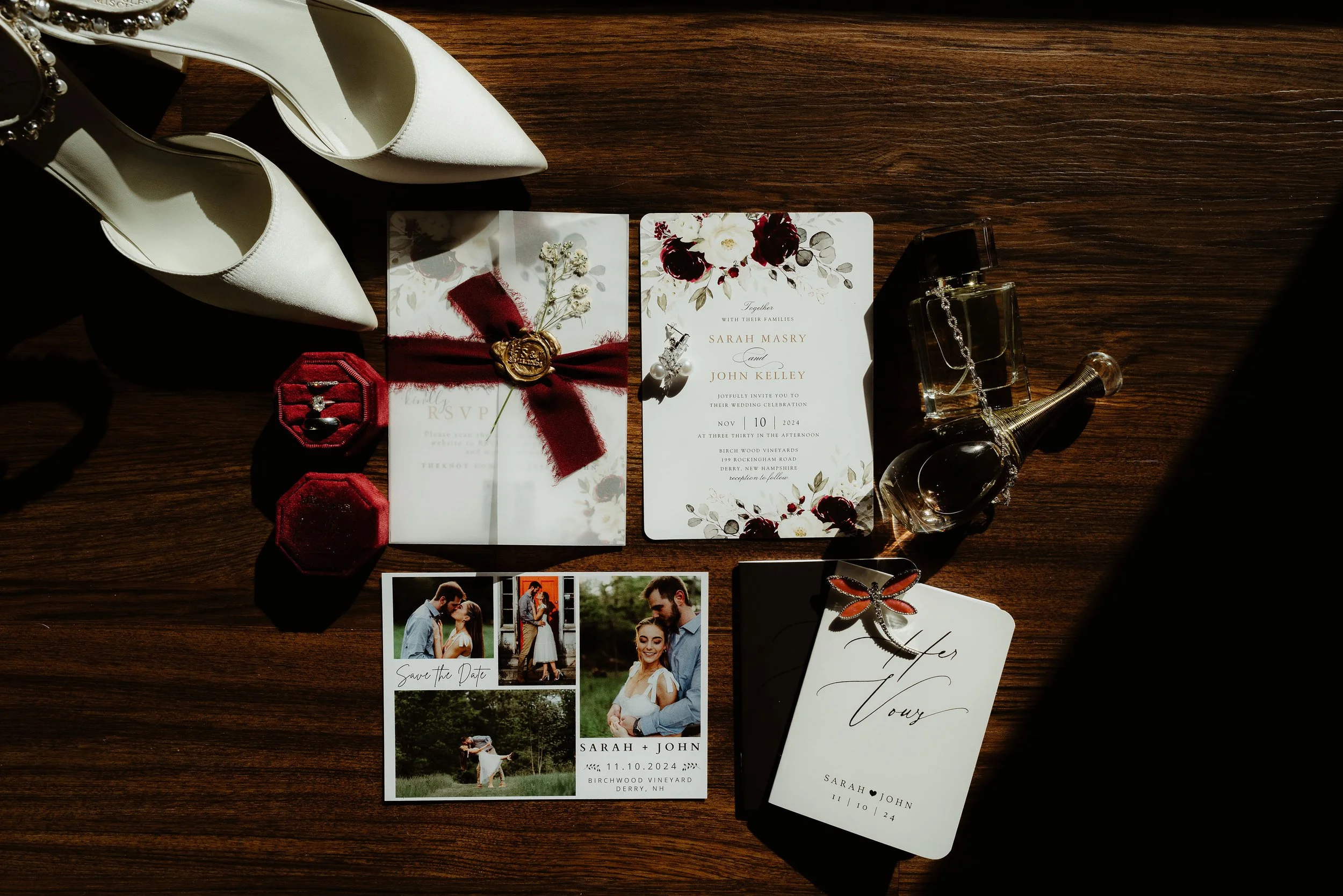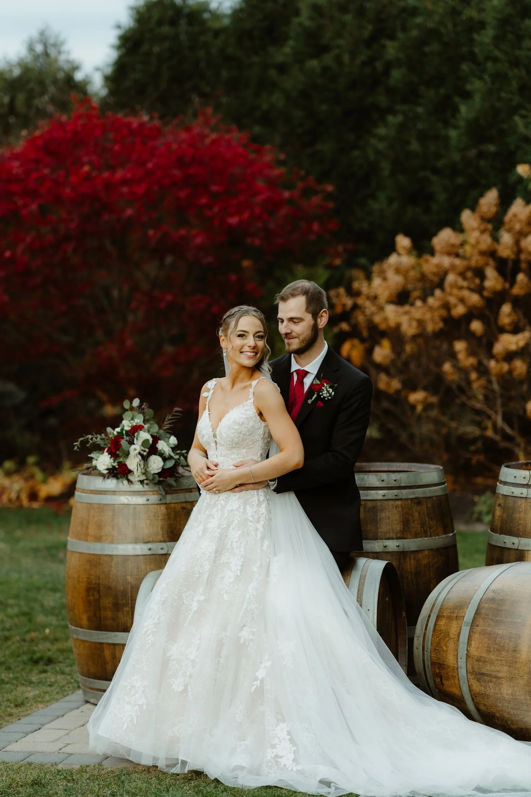 Sarah and John said yes to forever on a beautiful sunny afternoon in November. The couple got married at Birch Wood Vineyards in Derry, NH – which coincidentally was where Sarah’s parents got married (under a different name of course). A total full circle moment, how cool is that!