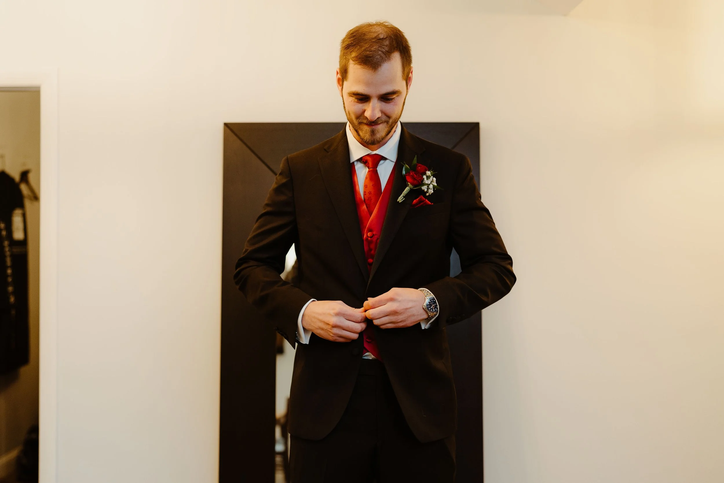 Groom’s Suit: Men’s Warehouse, Vera Wang
